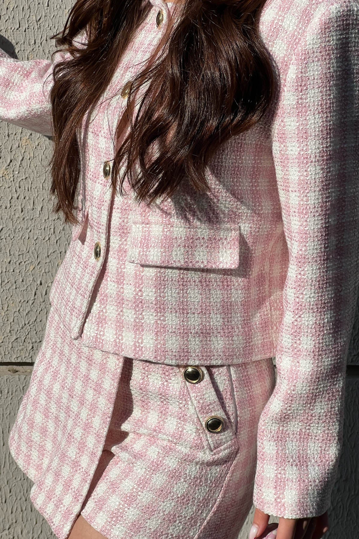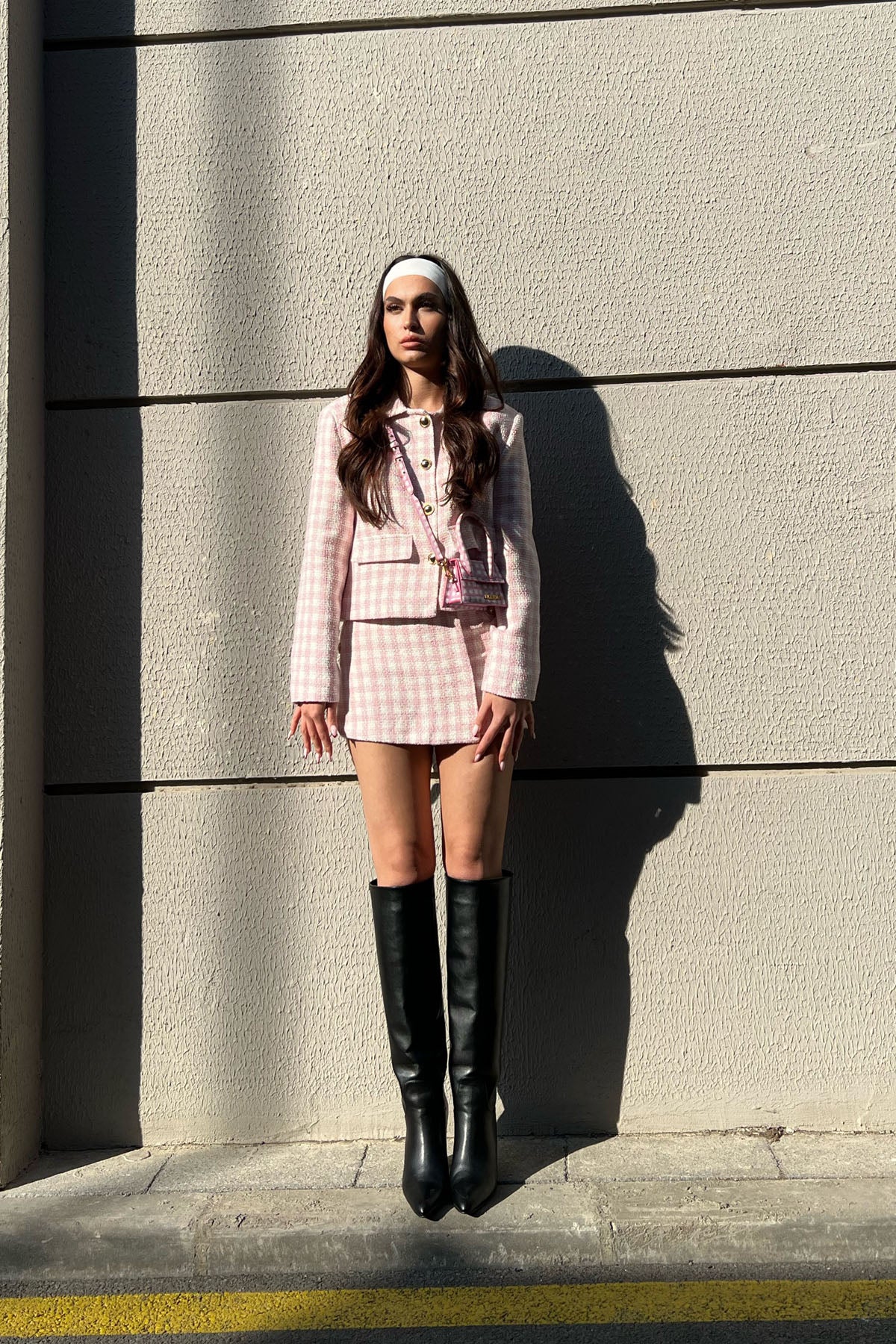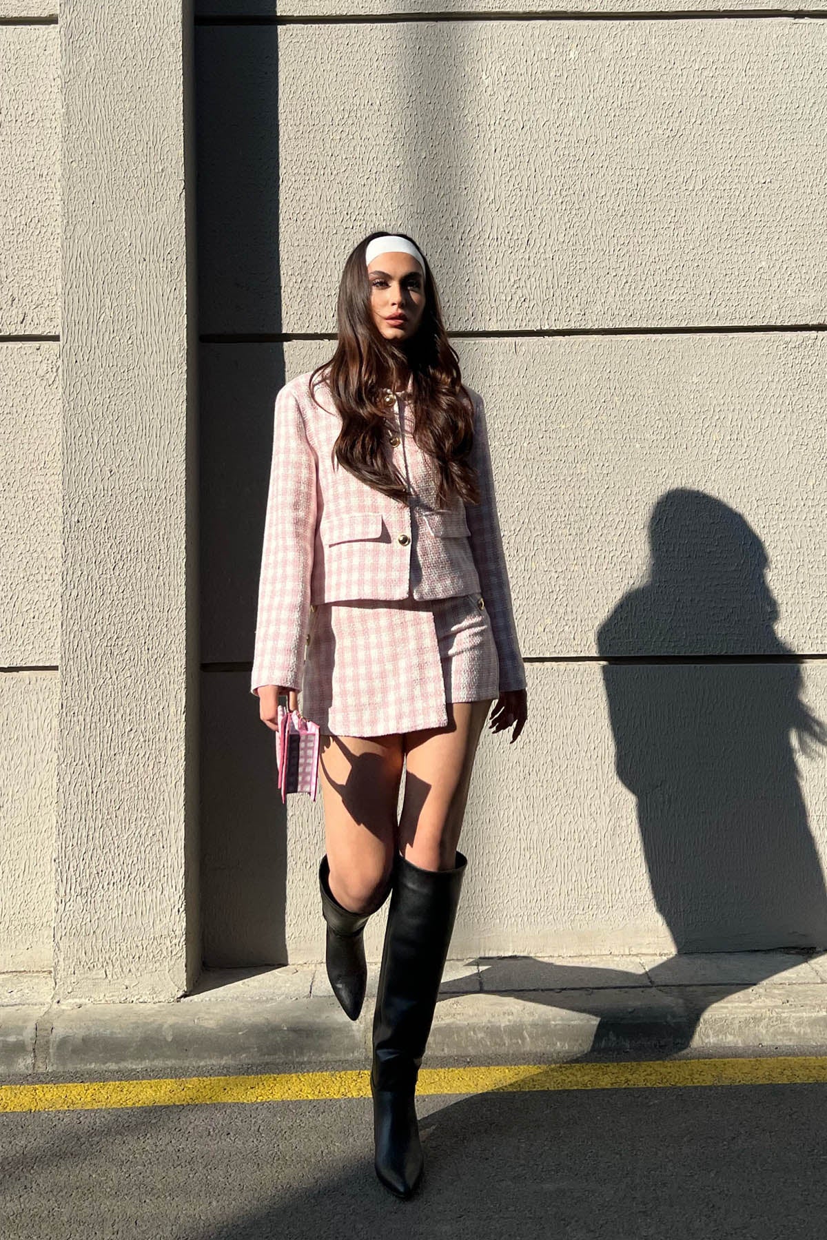 Pembe Düğme Detaylı Tüvit Şort Etek SY-1577-Pembe