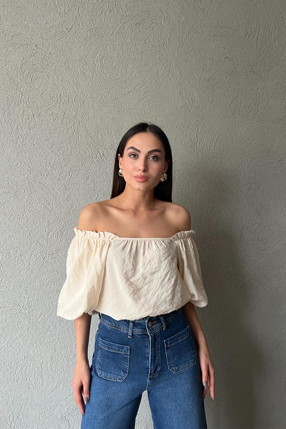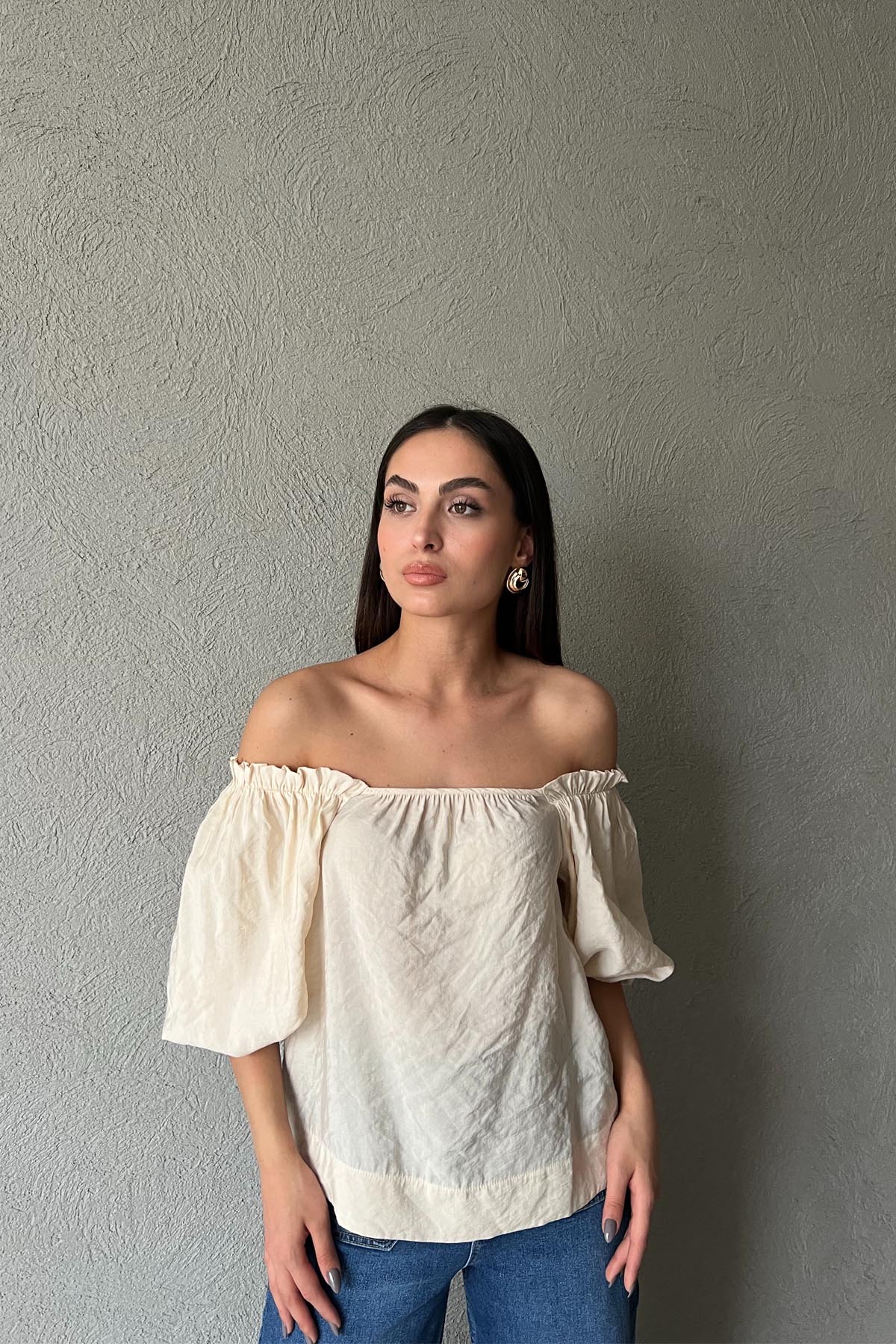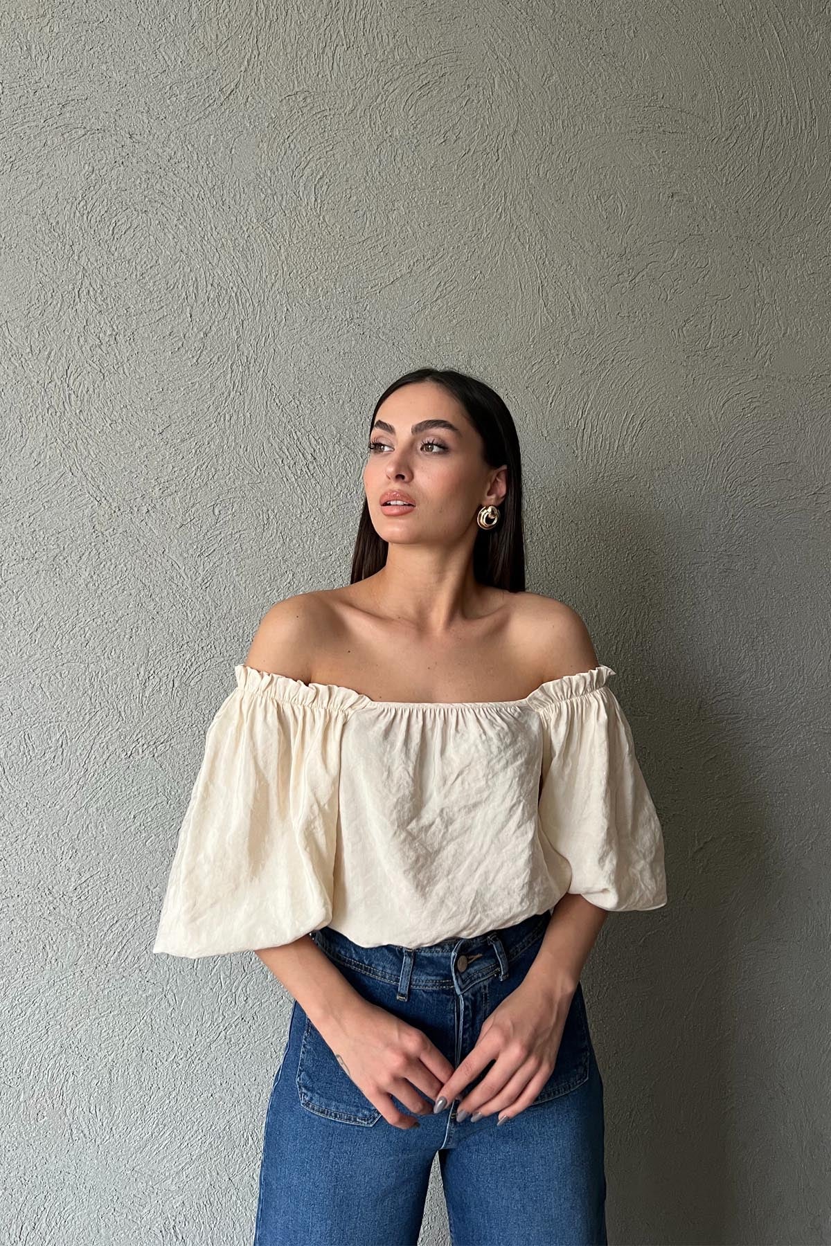 Bej Balon Kol Bluz SY-1792-Bej