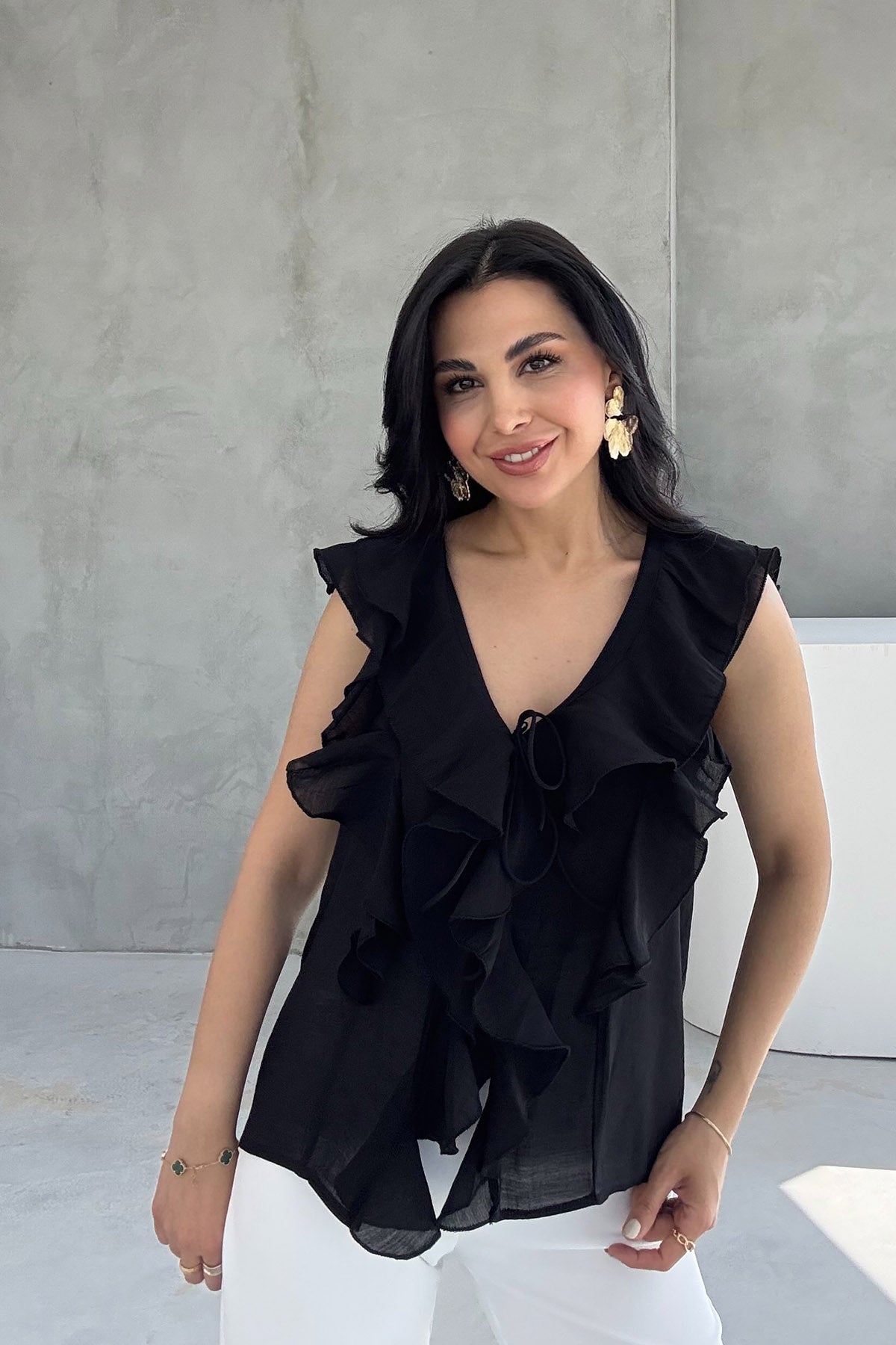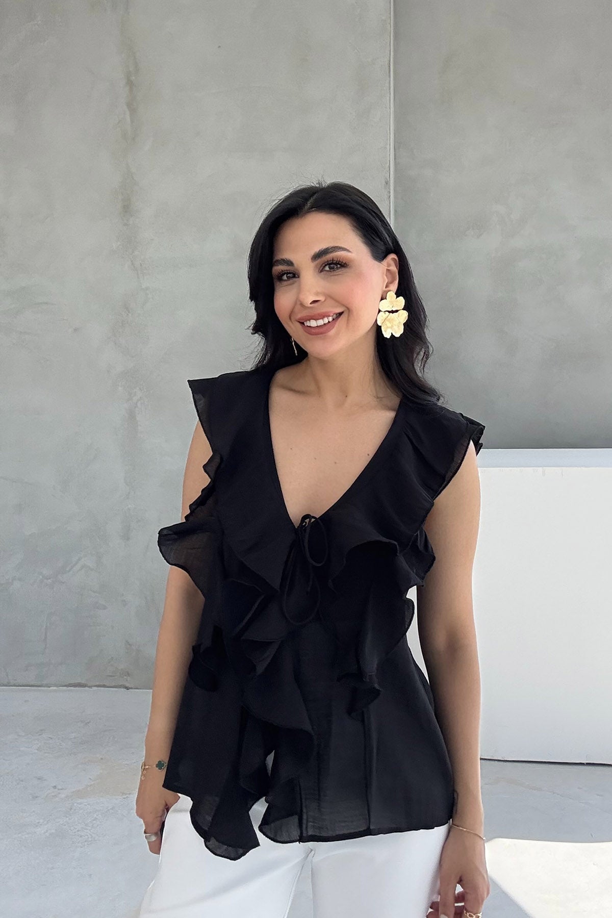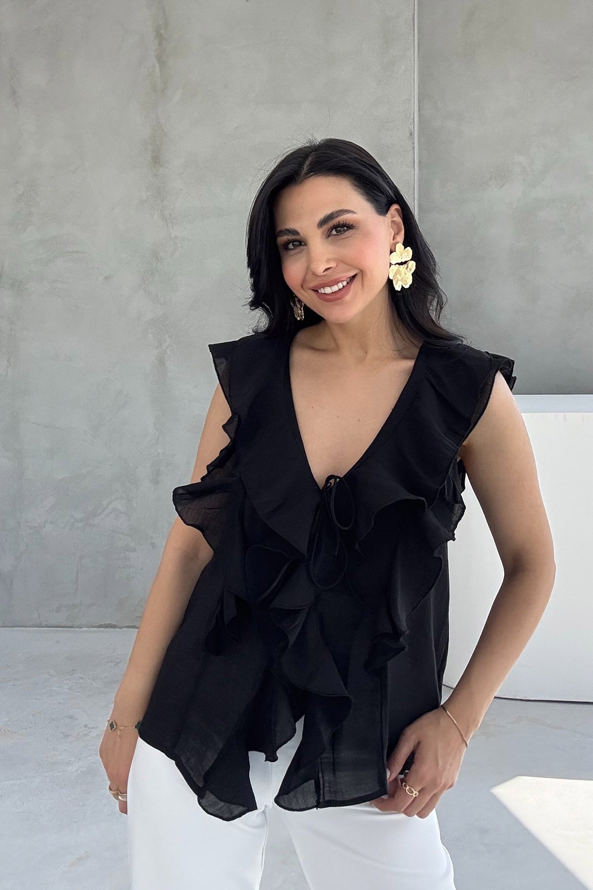 Siyah Fırfırlı Bağlama Detaylı Bluz SY-3165-Siyah