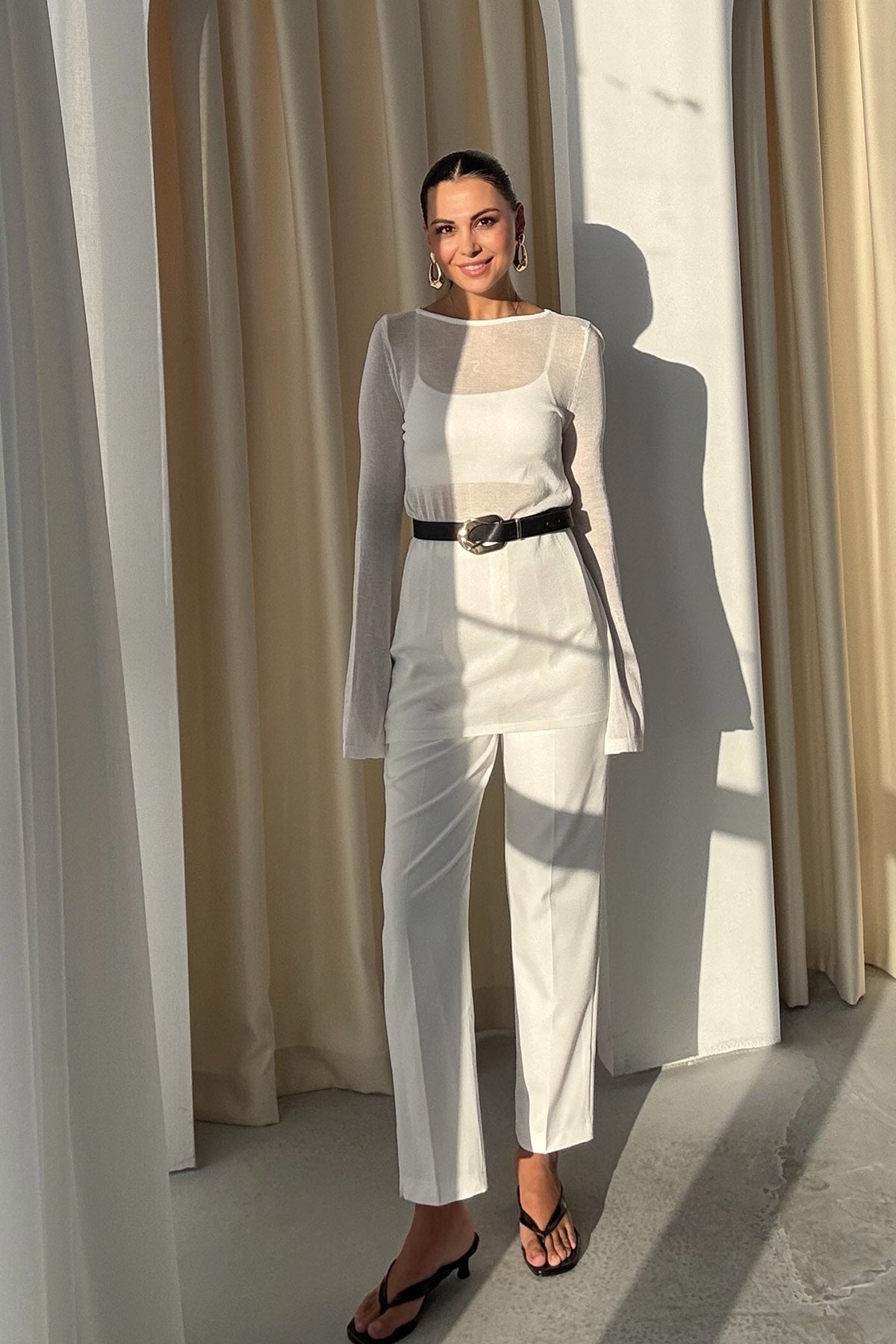 Beyaz Transparan İspanyol kol Tunik Body SY-3089-Beyaz