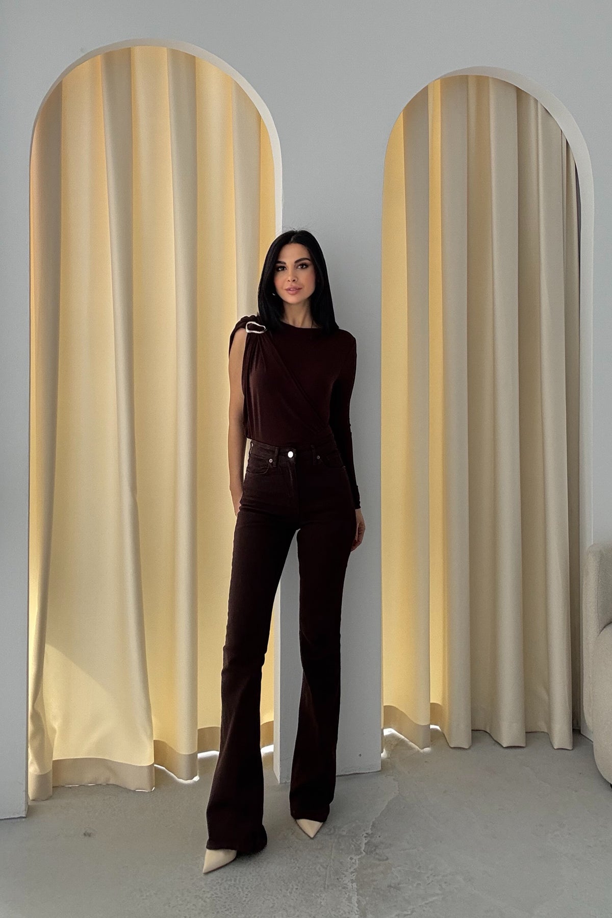 Ürün Detayları:Kahve Akıcı Broşlu Body