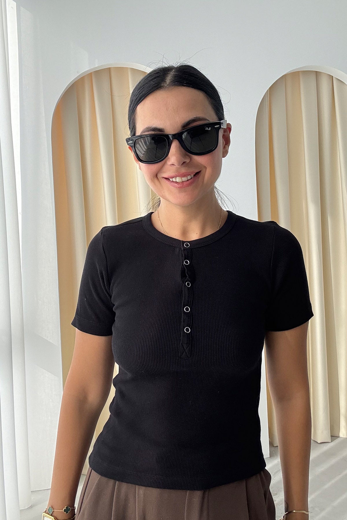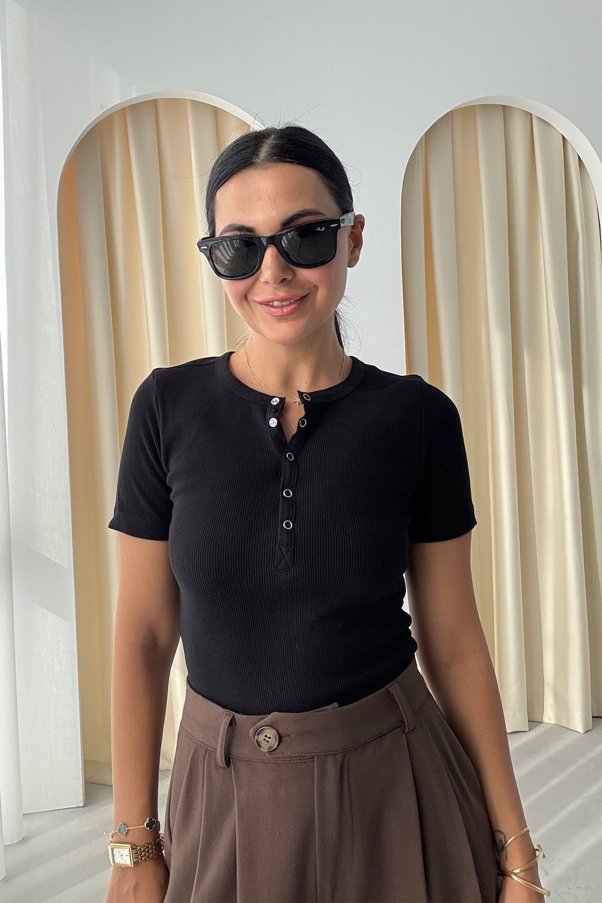 Siyah Kısa Kollu Çıtçıtlı Body SY-2966-Siyah