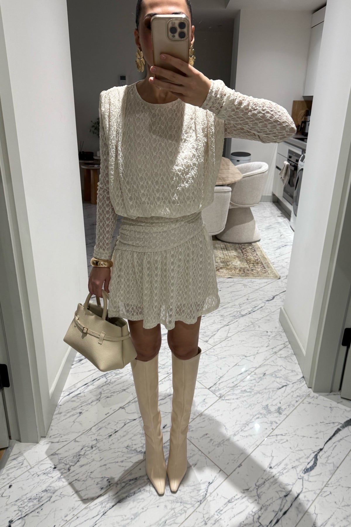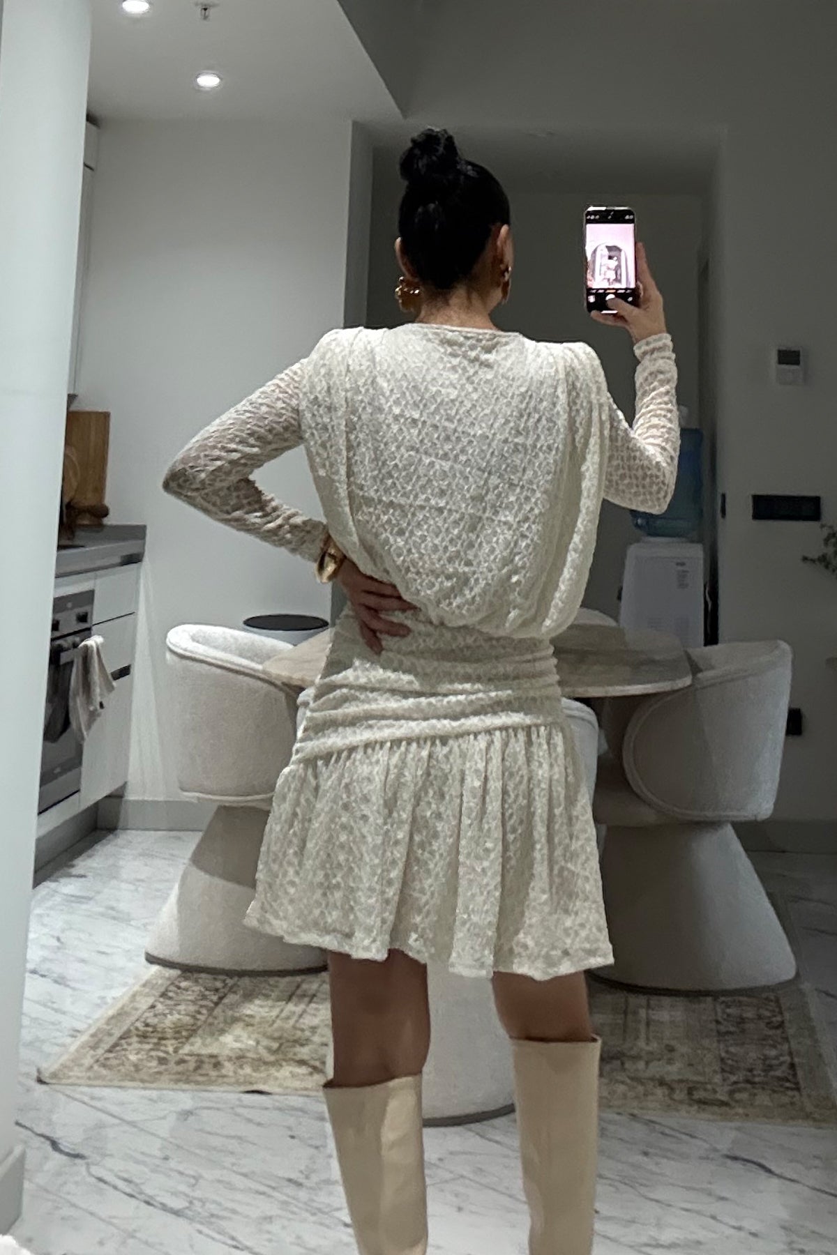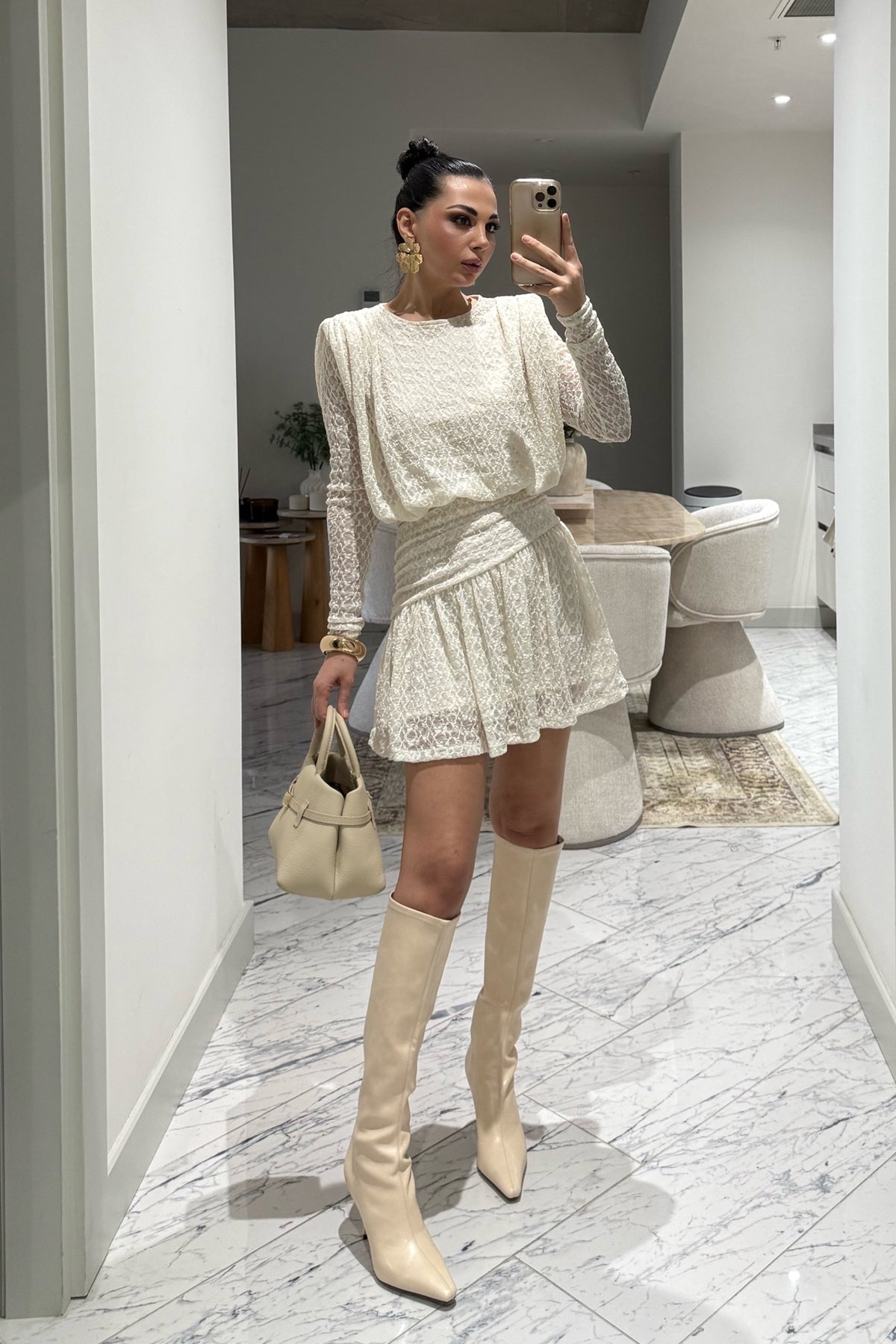 Ekru Güpürli Midi Tasarım Elbise SY-3489-Ekru