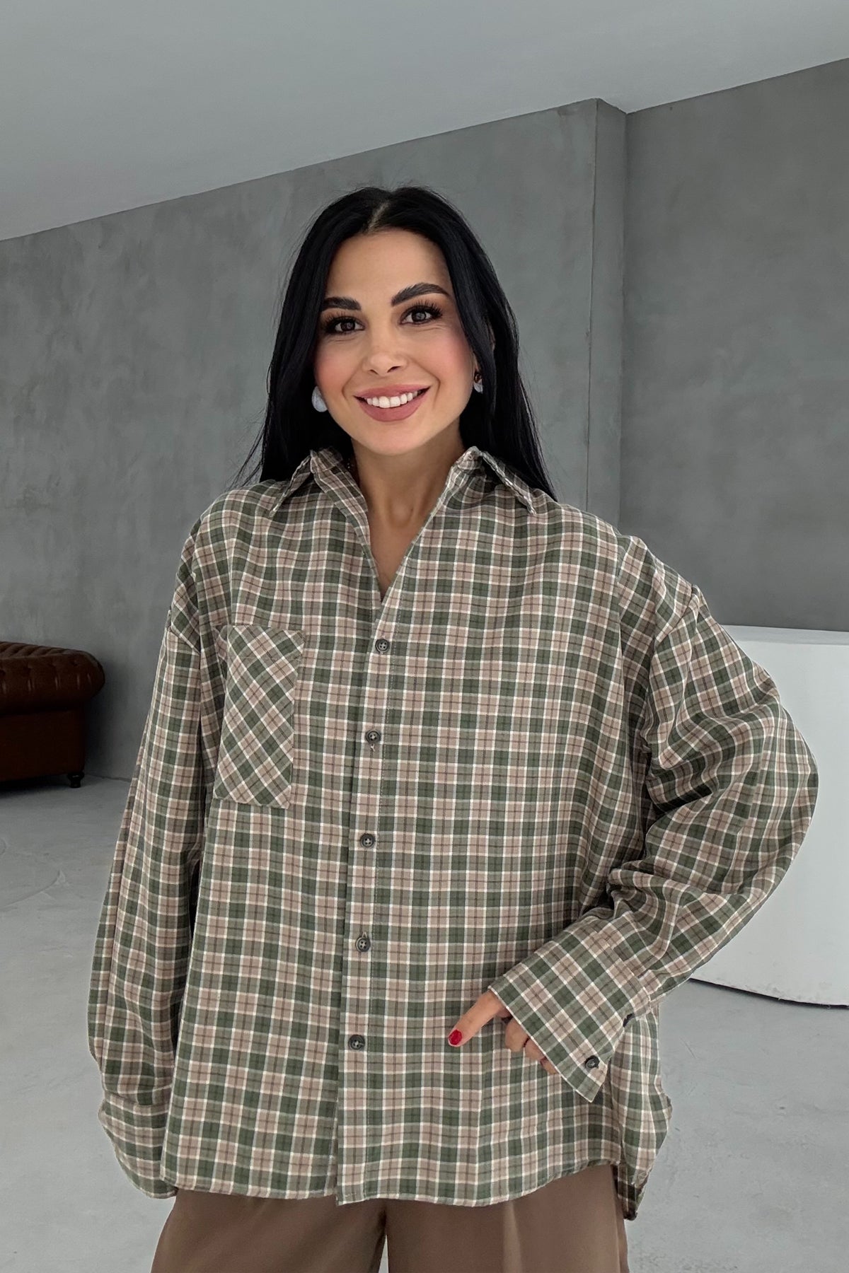 Kadın Yeşil Ekoseli Uzun Kollu Gömlek SY-3437-Yeşil