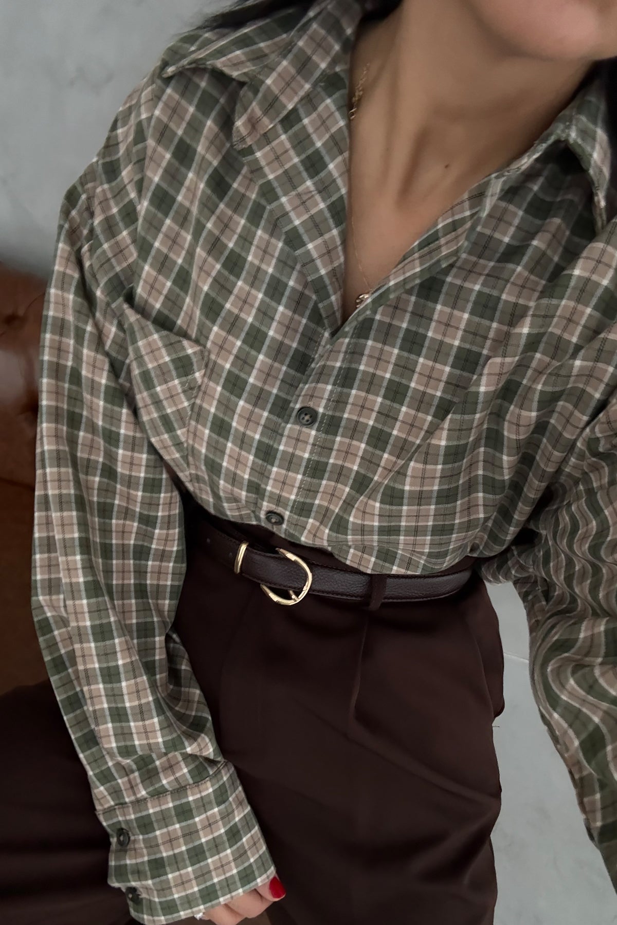 Ürün Detayları: Kadın Yeşil Ekoseli Uzun Kollu Gömlek