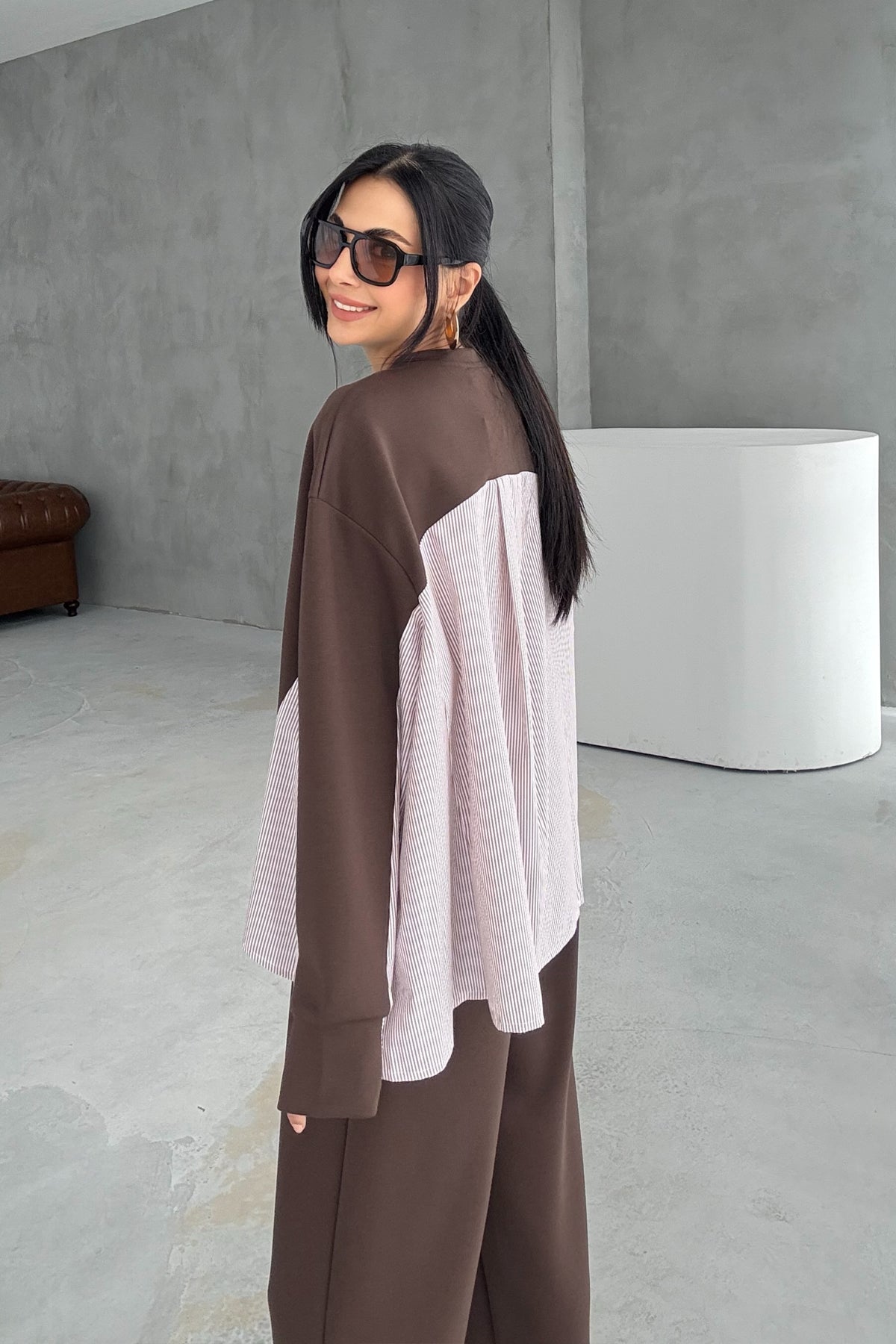 Ürün Detayları ; Kahve Garnili Şalvarlı Modal Takım