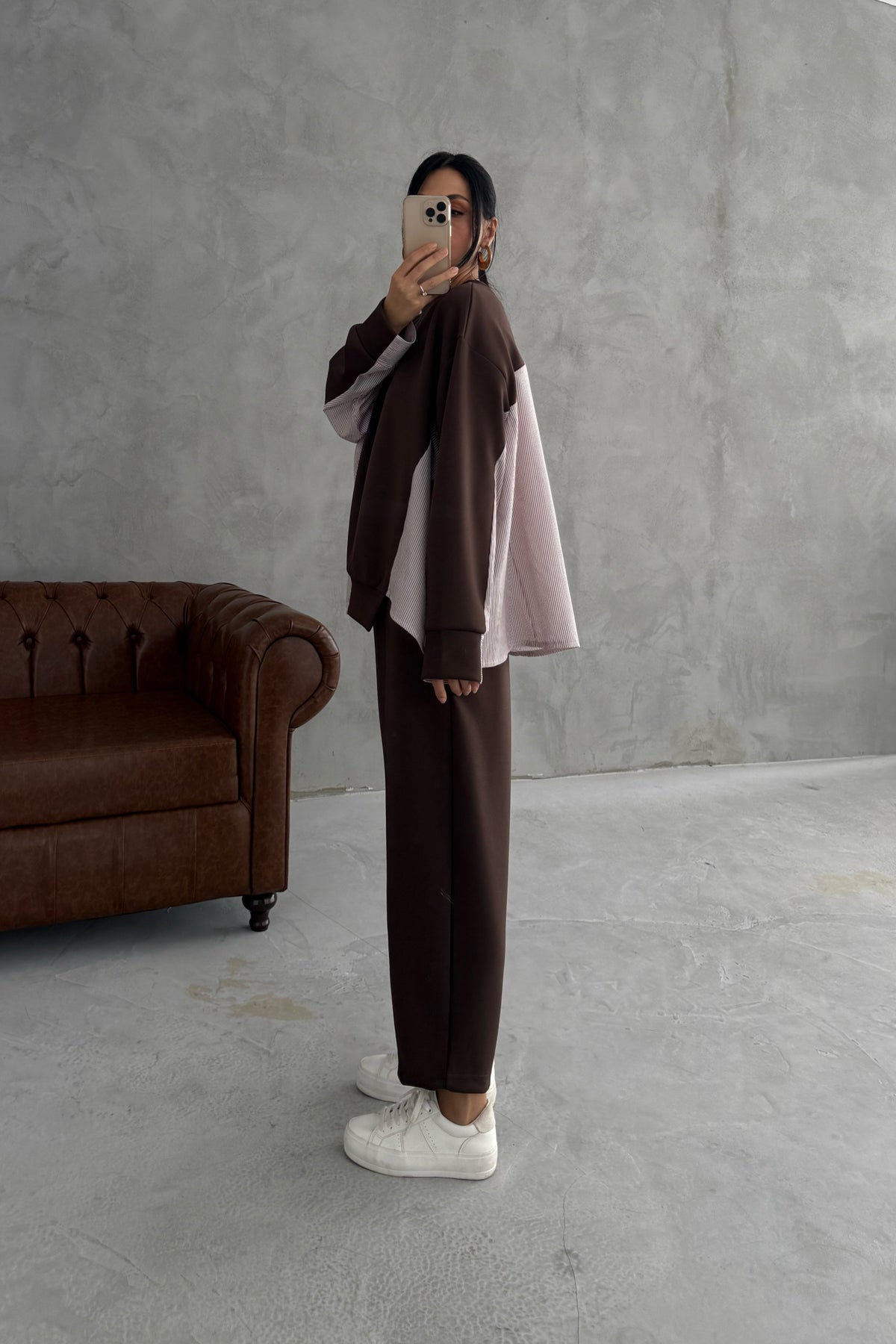Kahve Garnili Şalvarlı Modal Takım SY-3385-Kahve