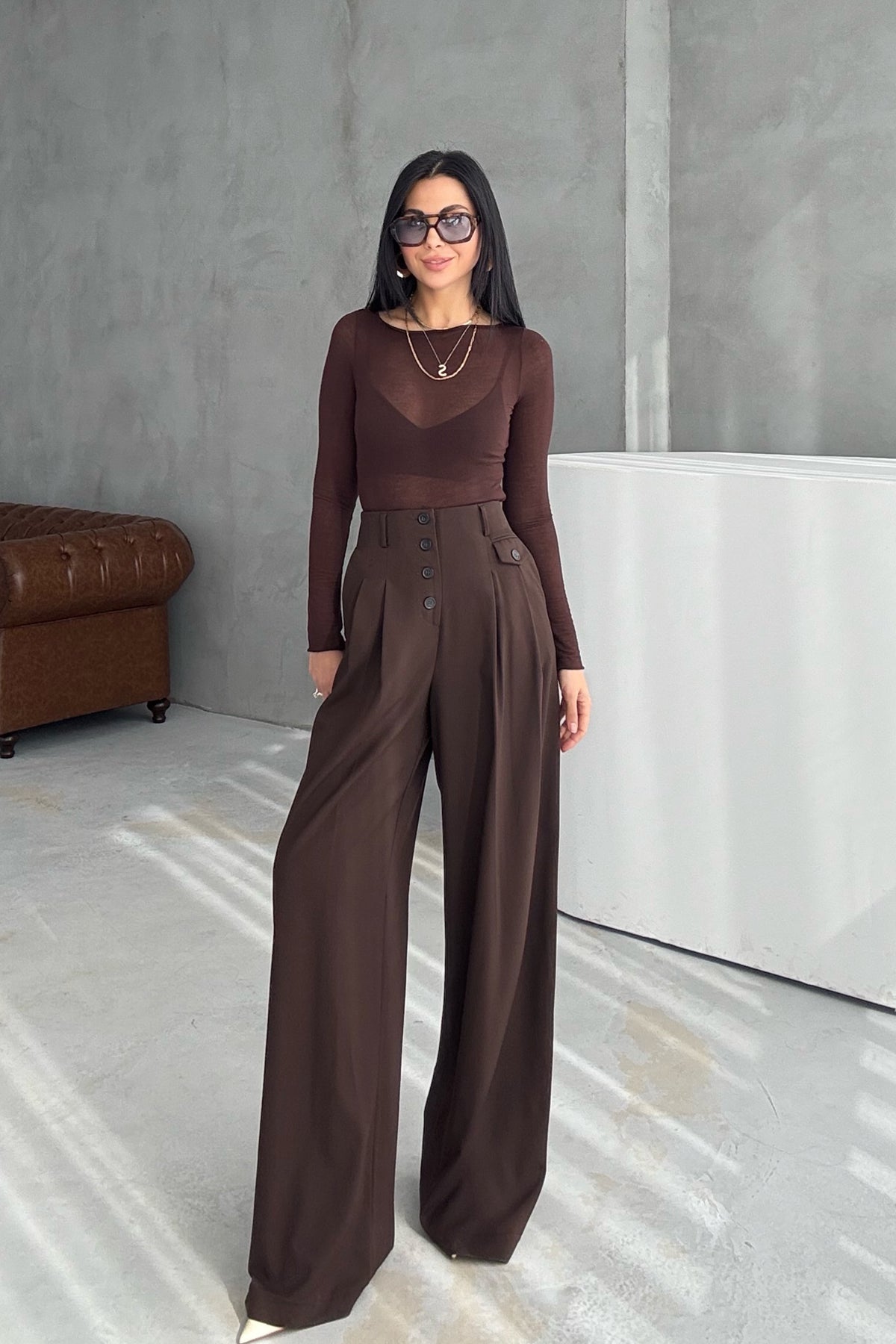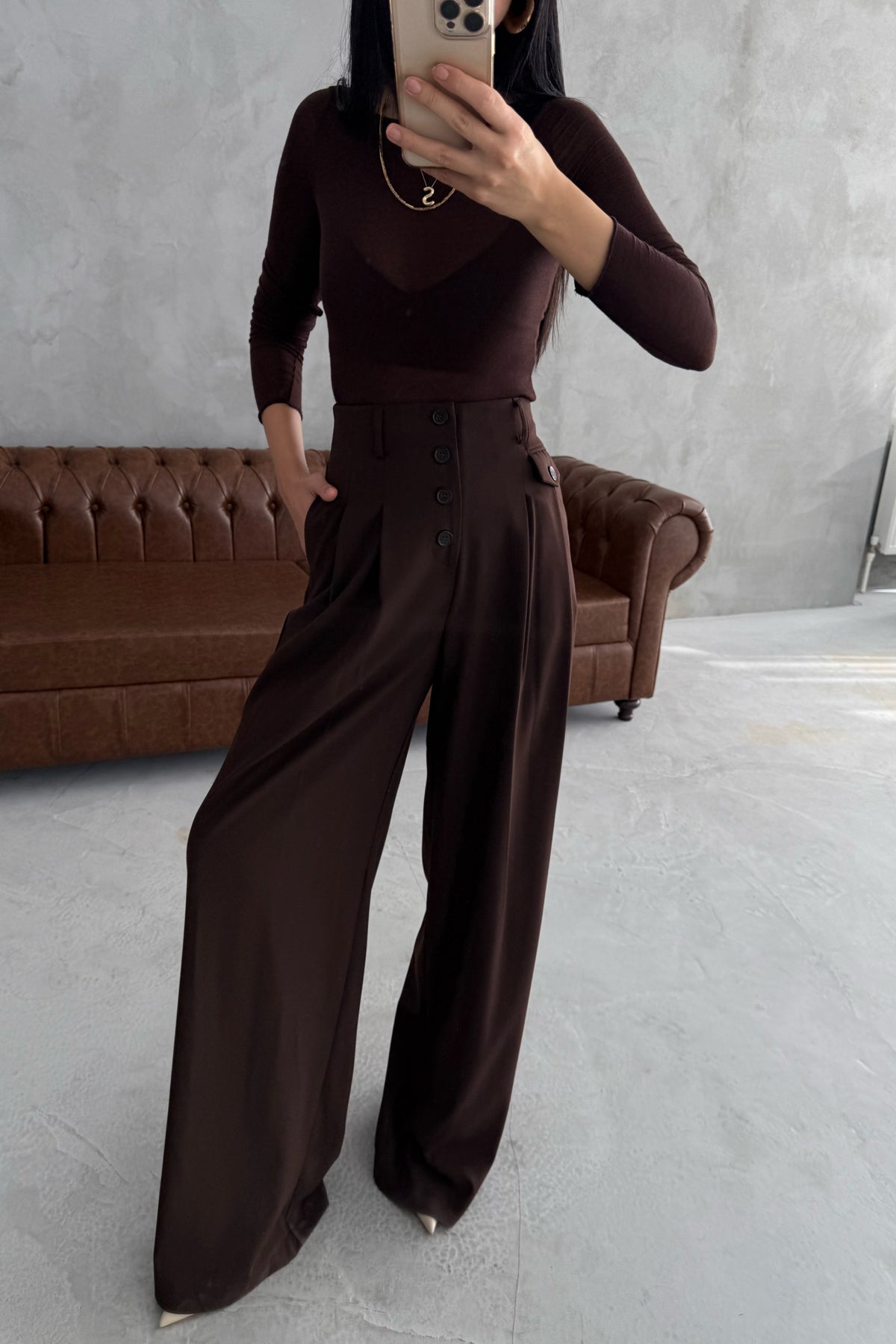 Ürün Detayları:Kahverengi Düğme Detaylı Maskülen Pantolon