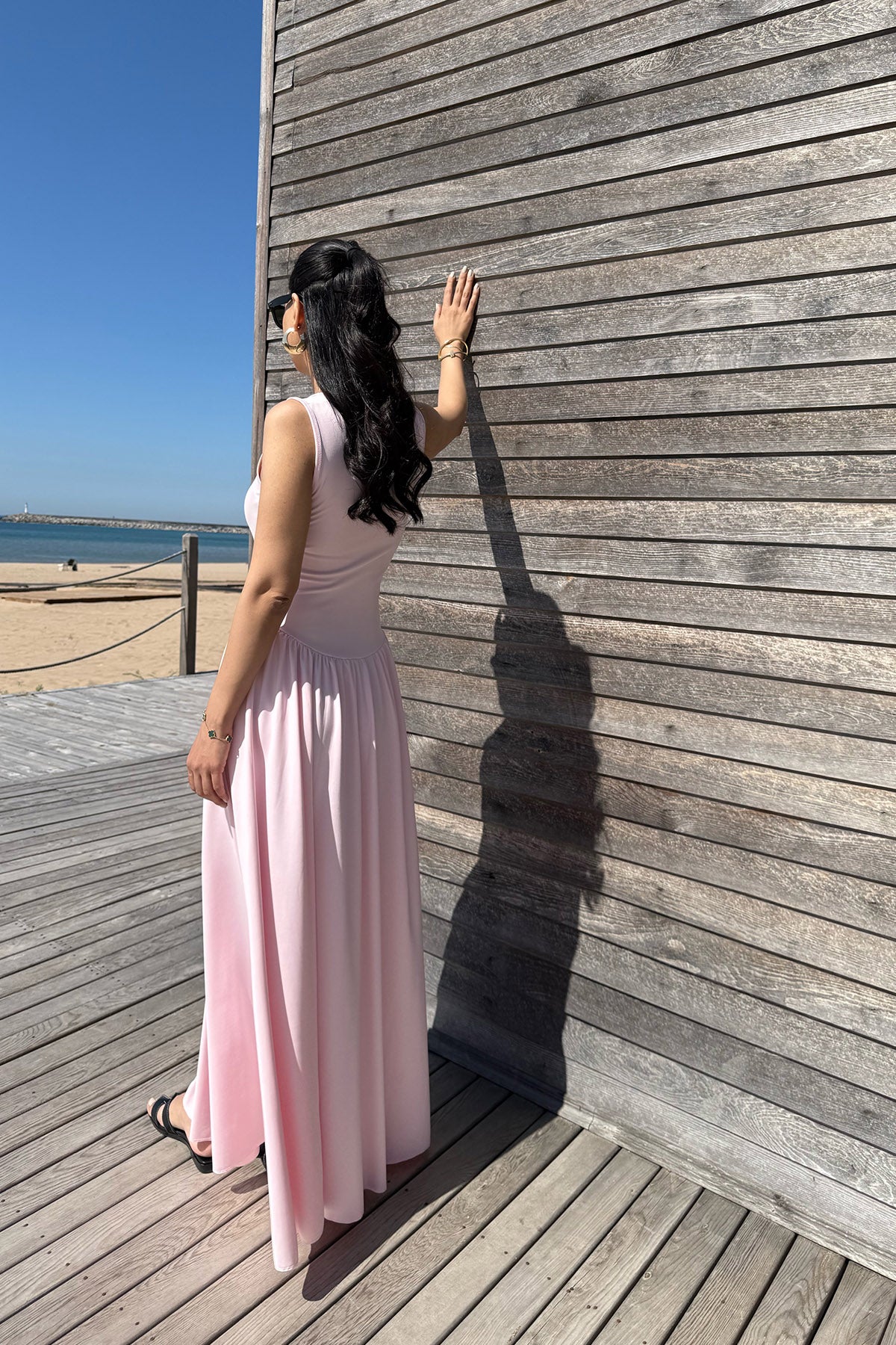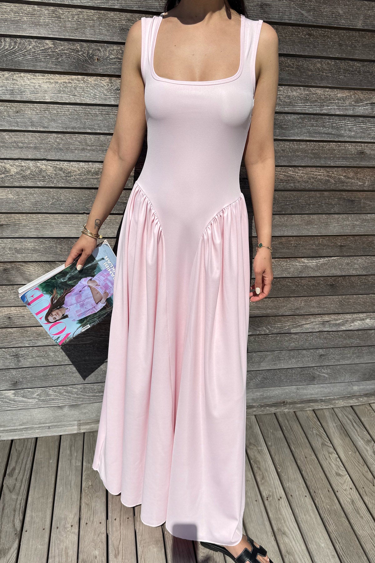 Ürün Detayları ; Kalın Askılı Kare Yaka Pembe Elbise
