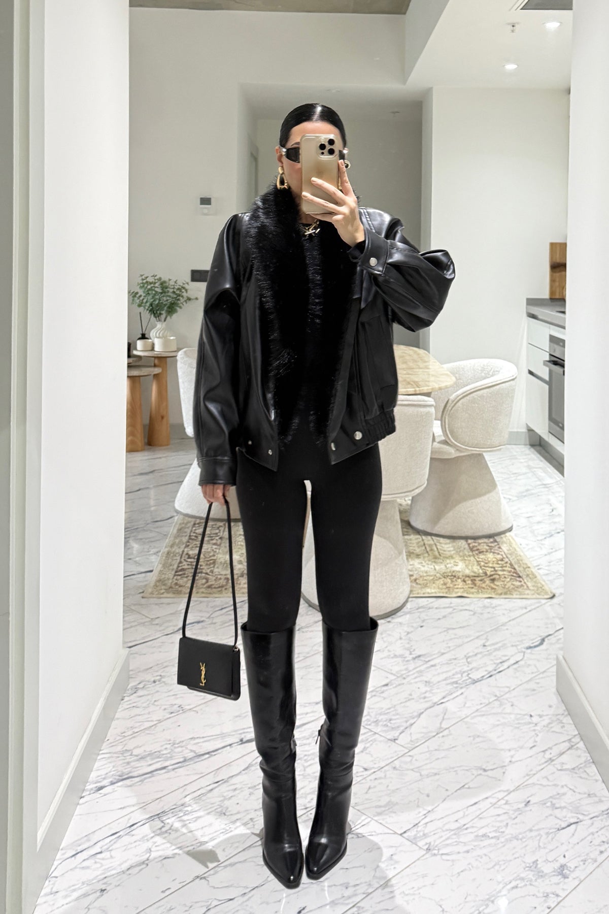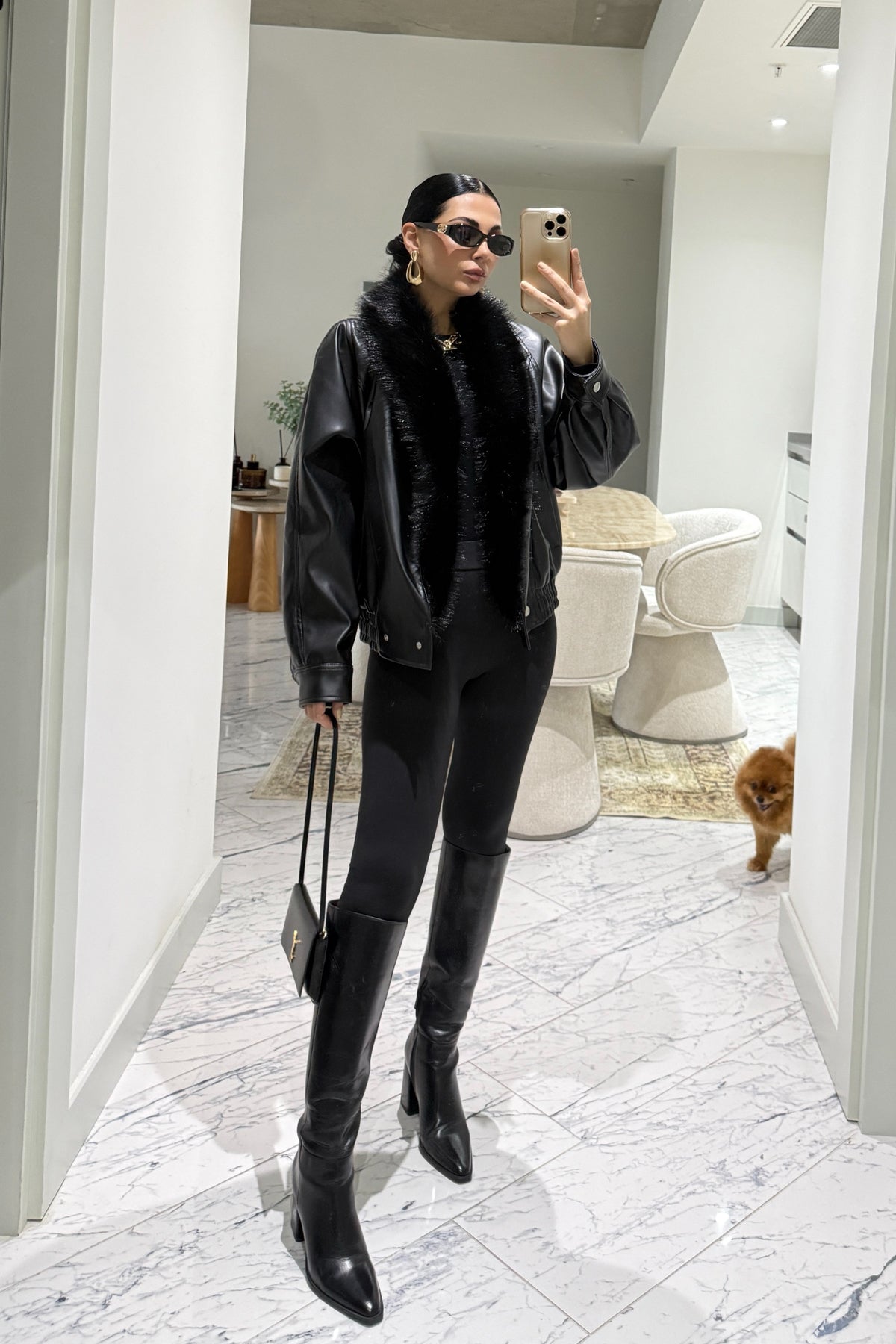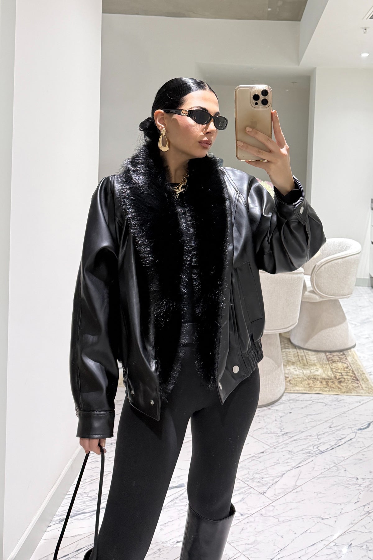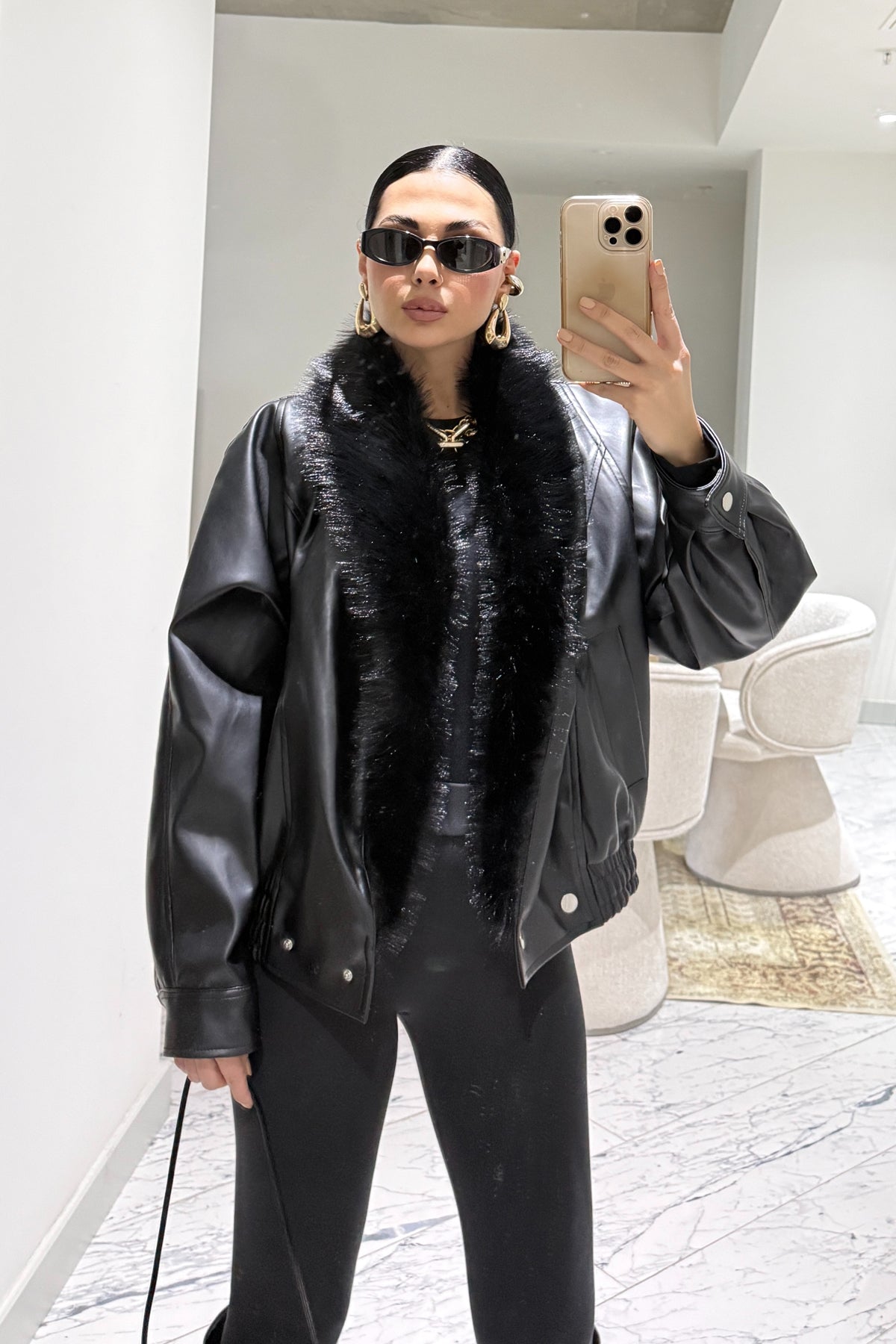 Ürün Detayları :Suni deri kürk yakalı ceket