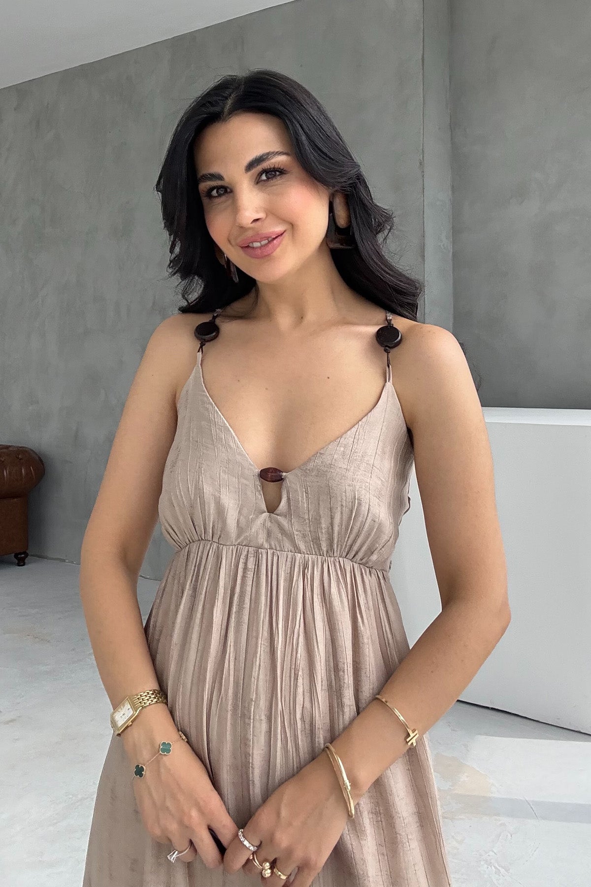 Ürün Detayları ; Sezonun en sevilen Elbiseleri Seda Yalçın Atelier'de sizleri bekliyor. Vizon Boncuk Detaylı Askılı Elbise kombinlerinizin vazgeçilmezi olacak