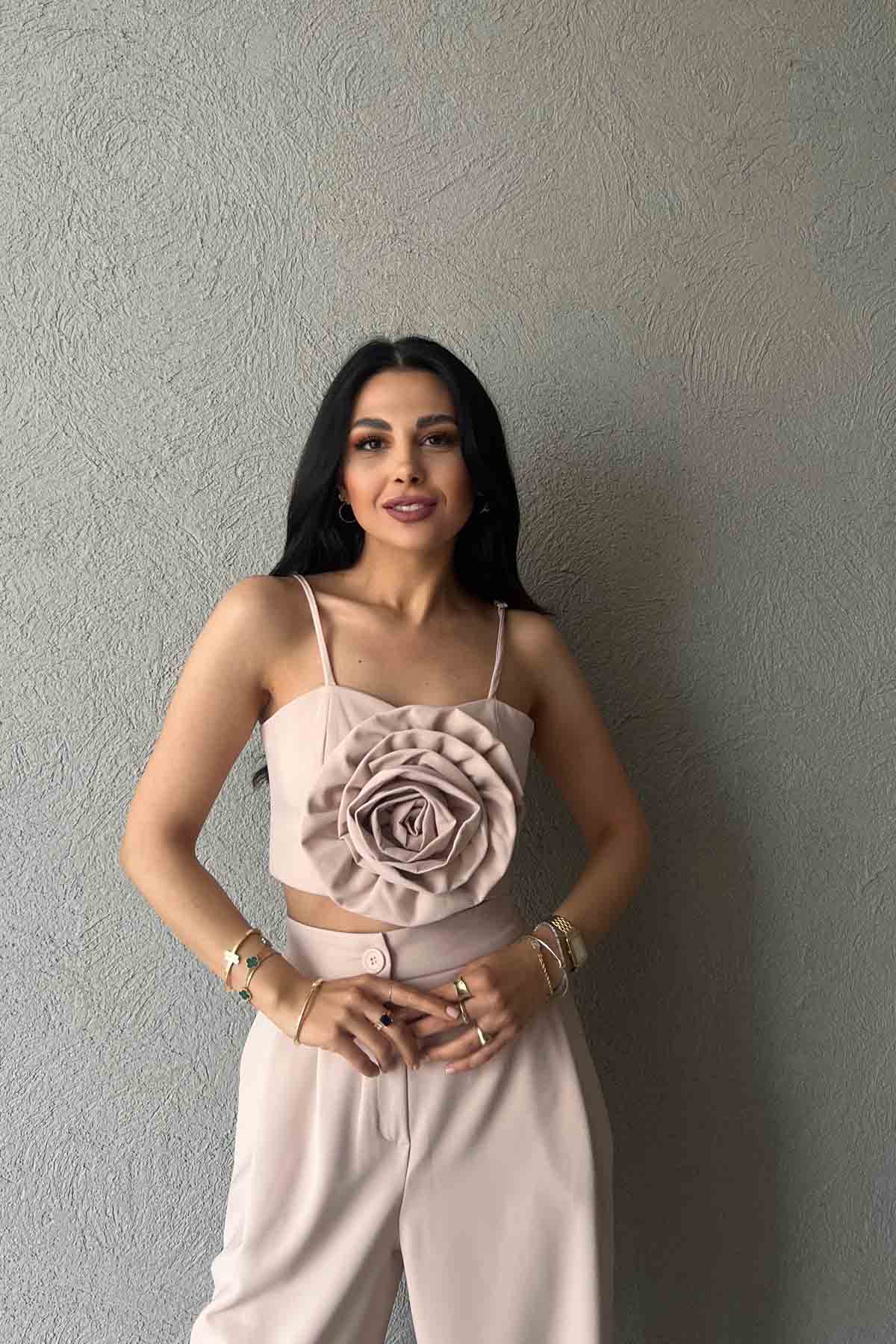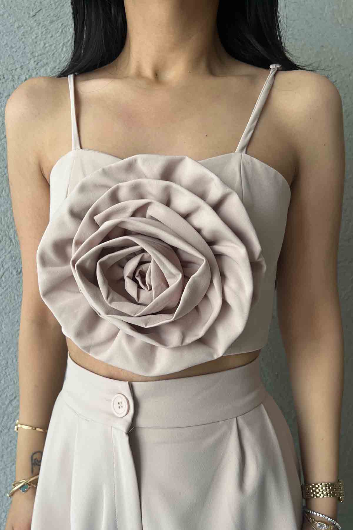 Ürün Detayları ;Bej Gül Detaylı Askılı Büstiyer
