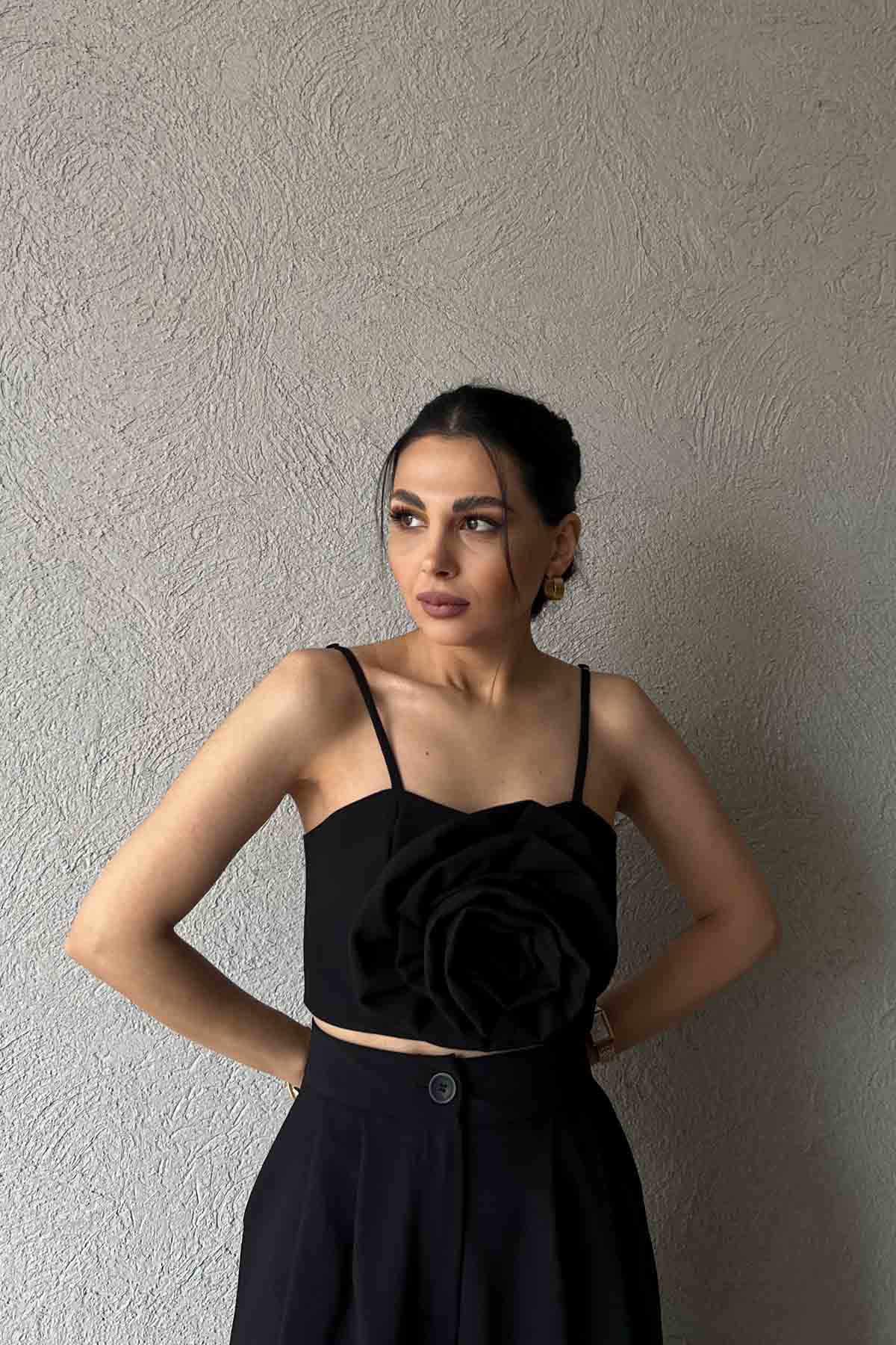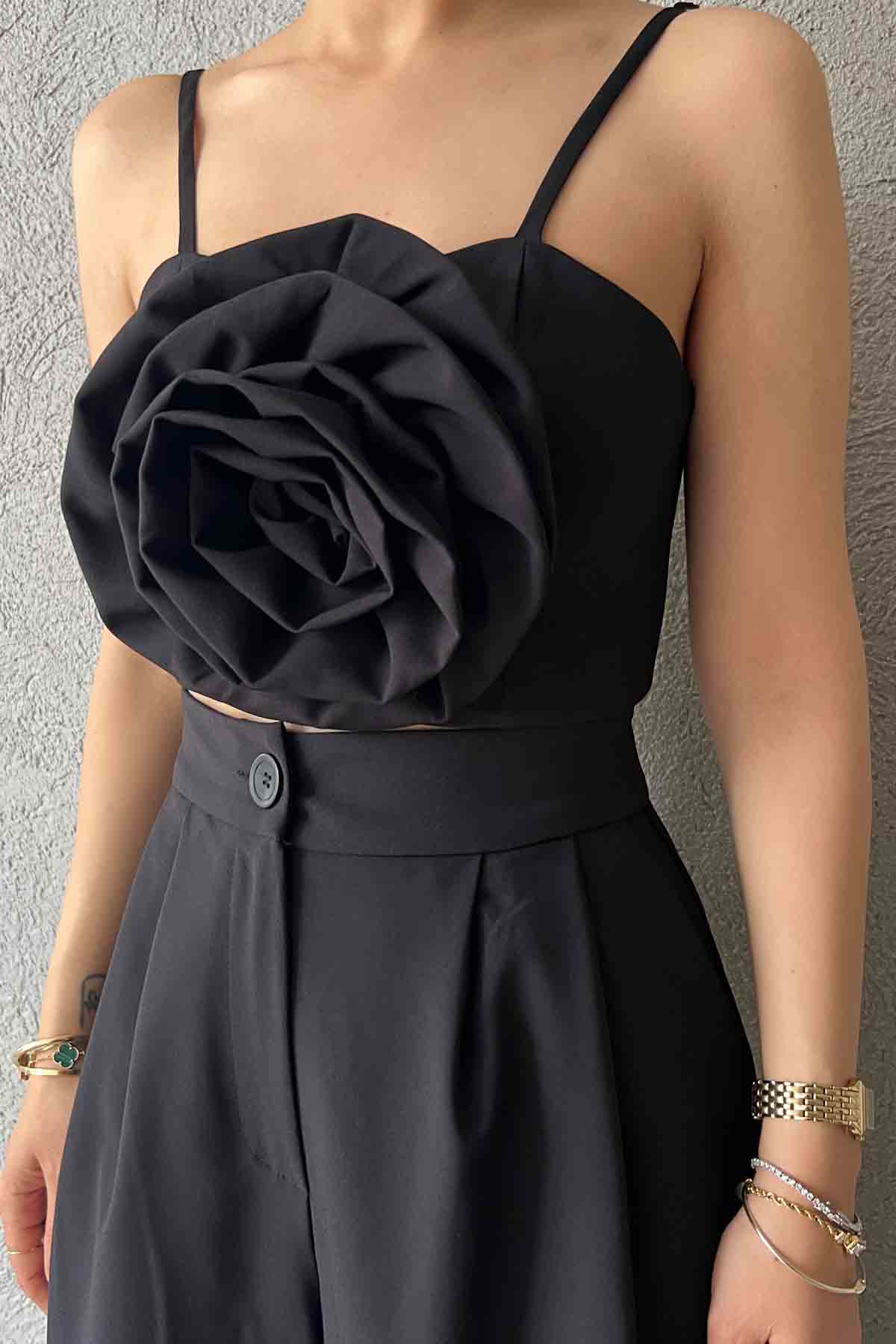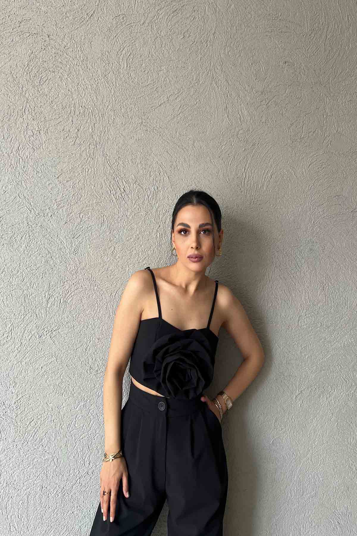 Siyah Gül Detaylı Askılı Büstiyer SY-2027-Siyah