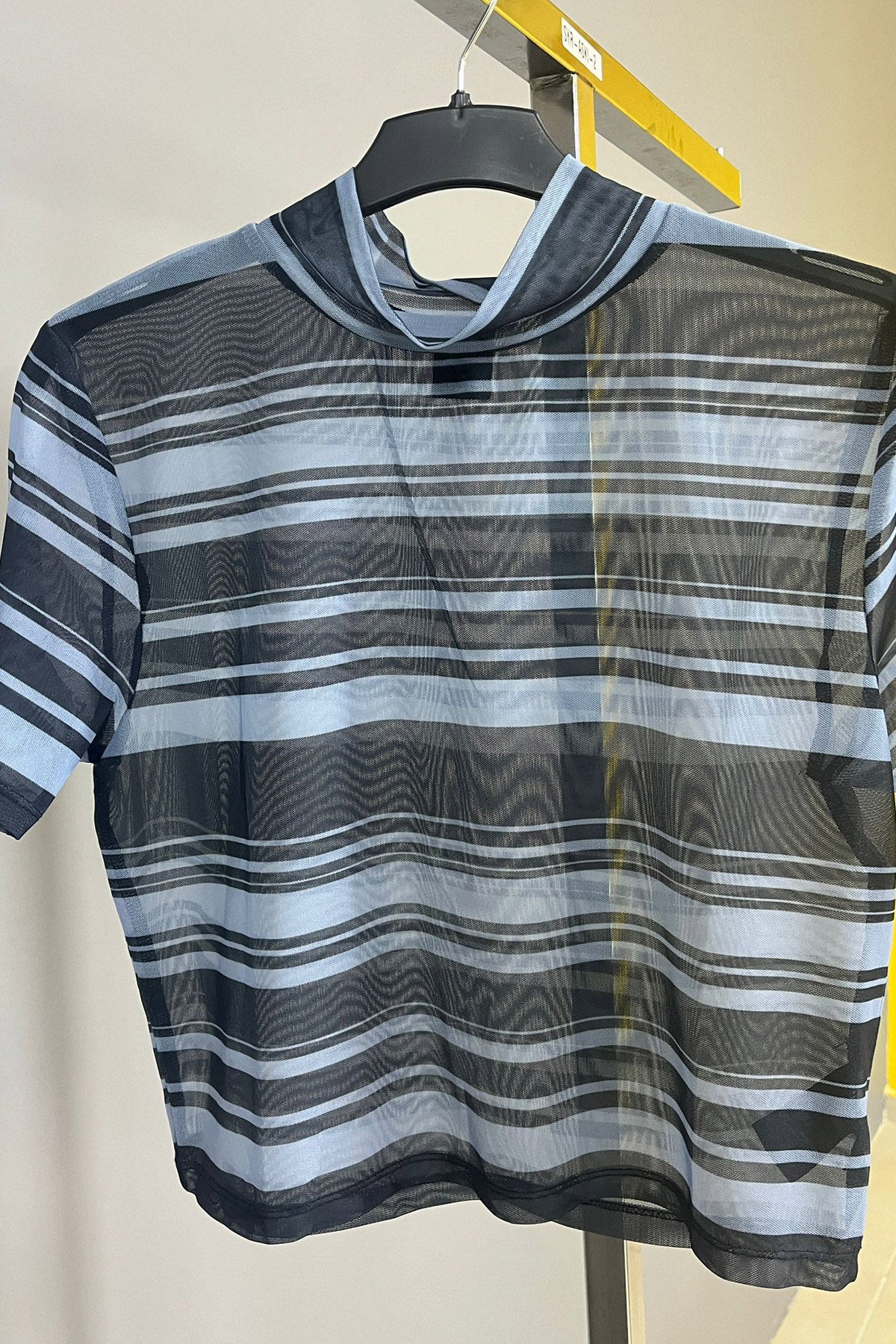 Mavi Çizgili Transparan Crop SY-2609-Mavi
