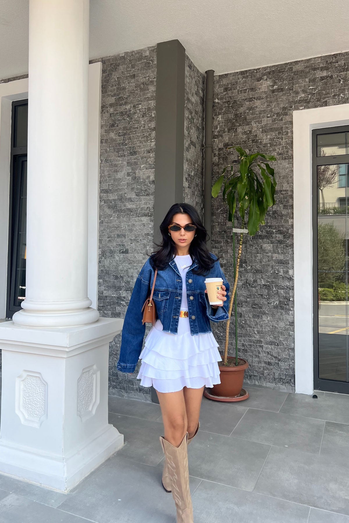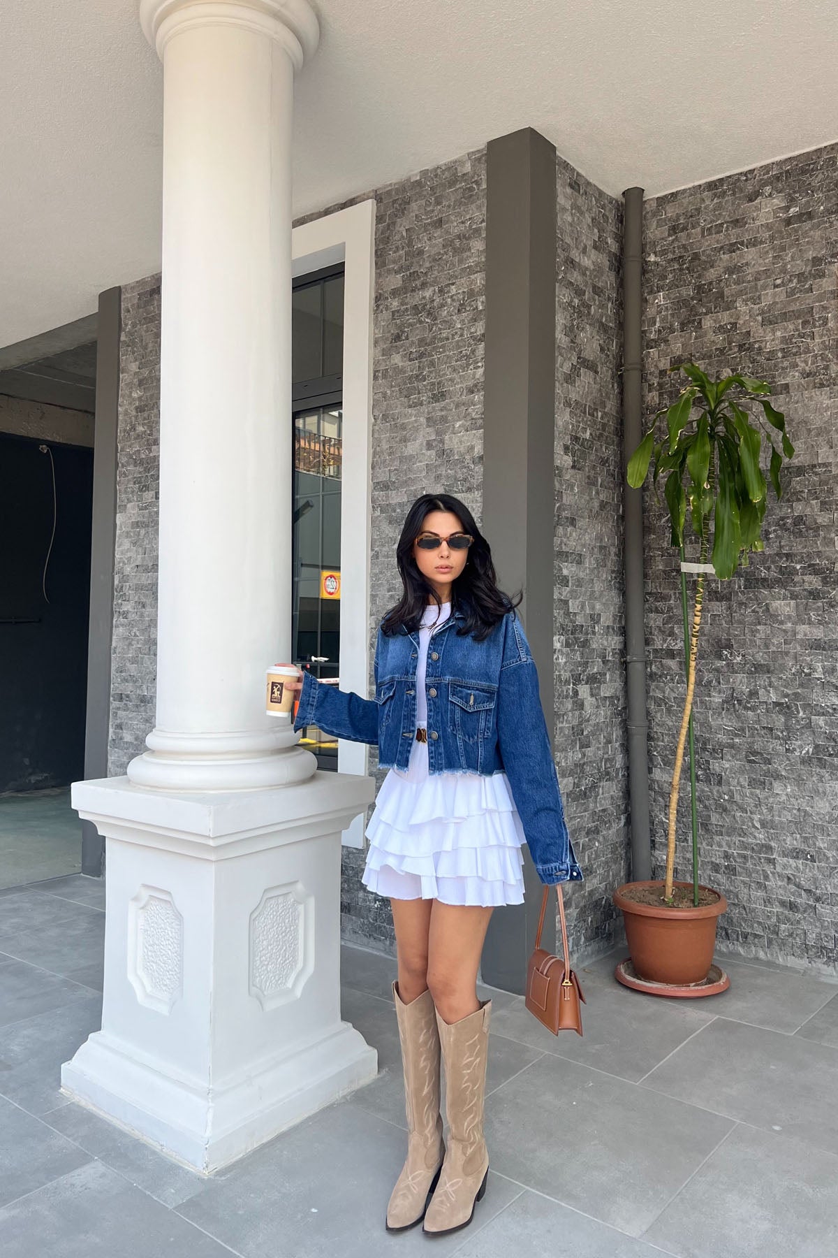 Ürün Özellikleri:Koyu Mavi Crop Kot Ceket