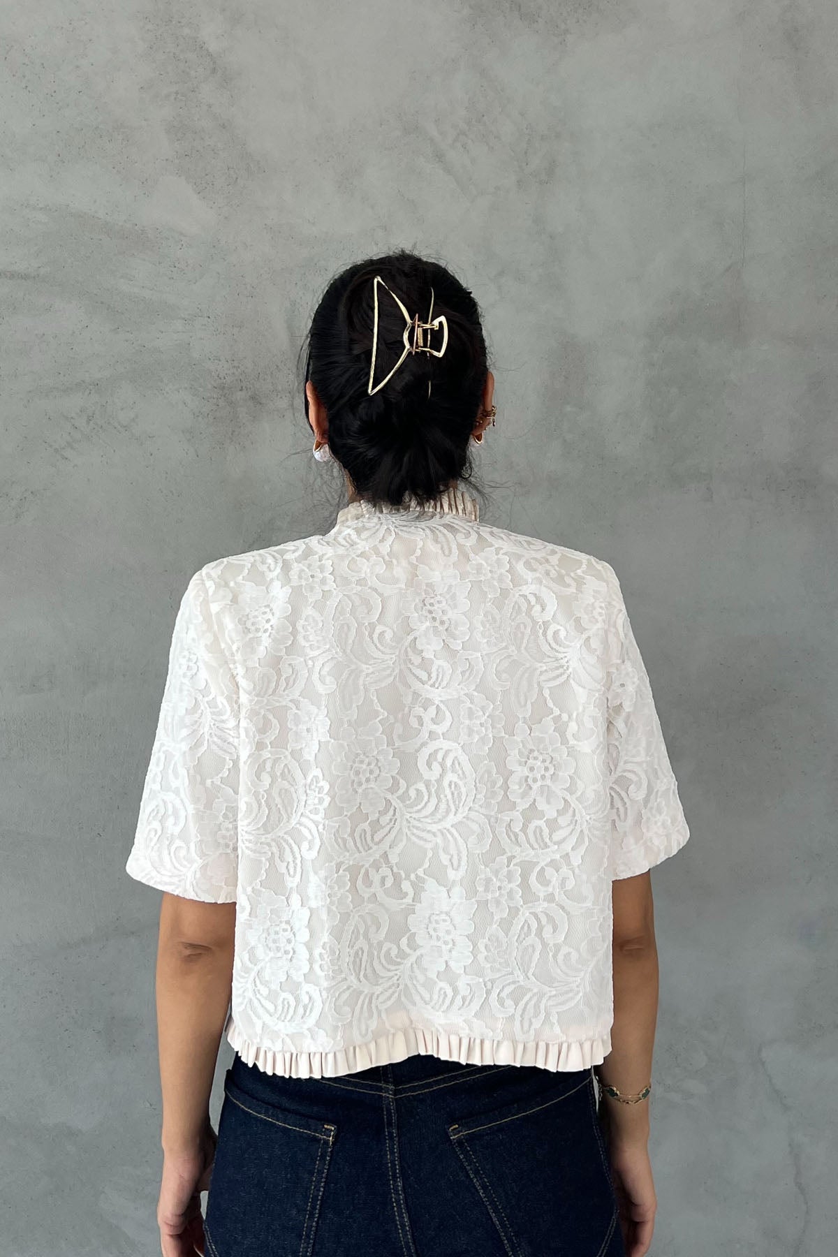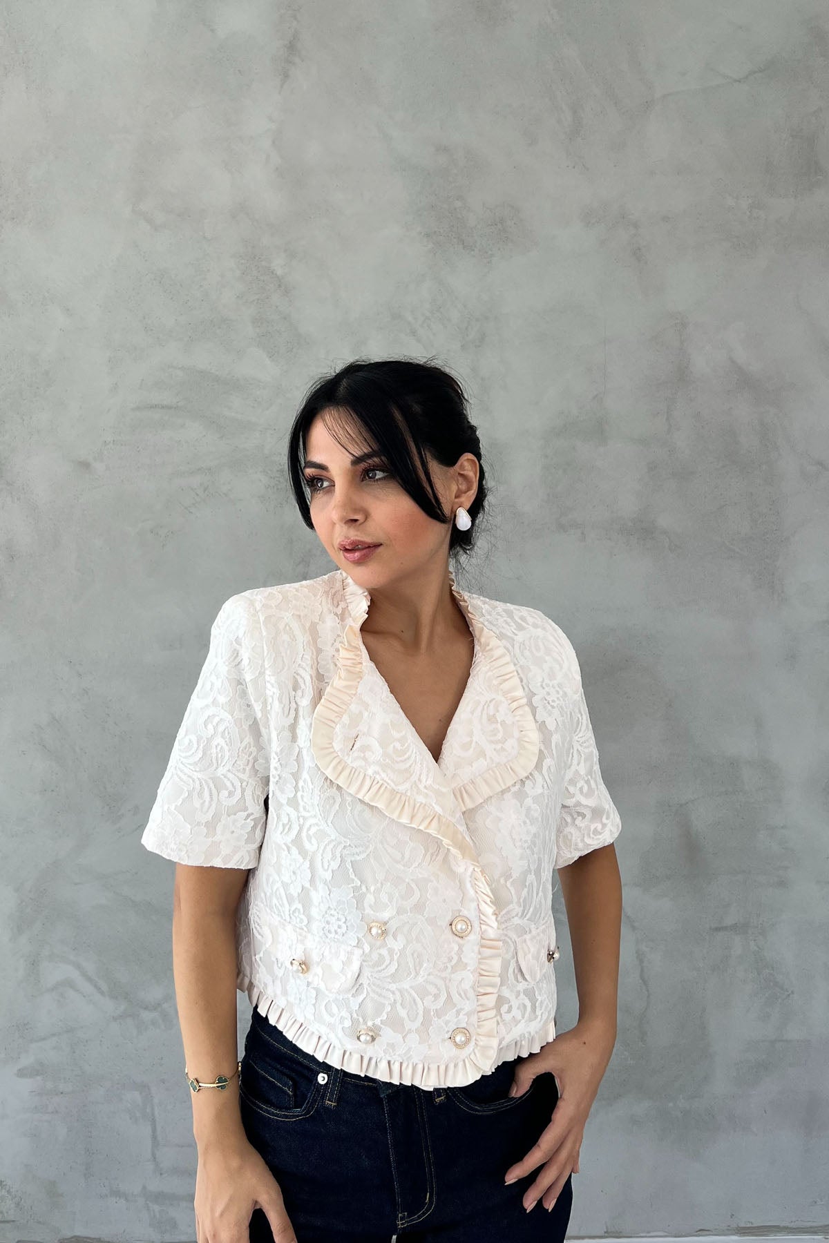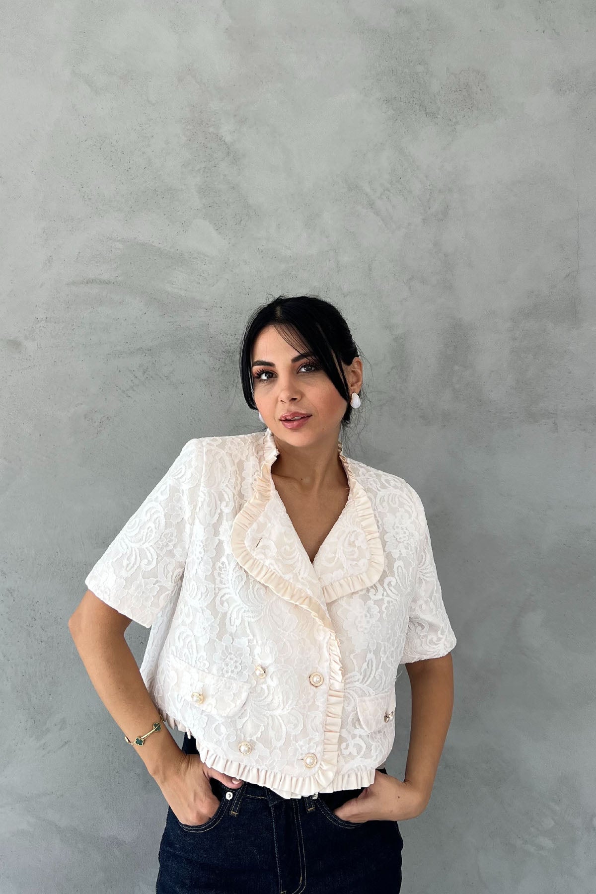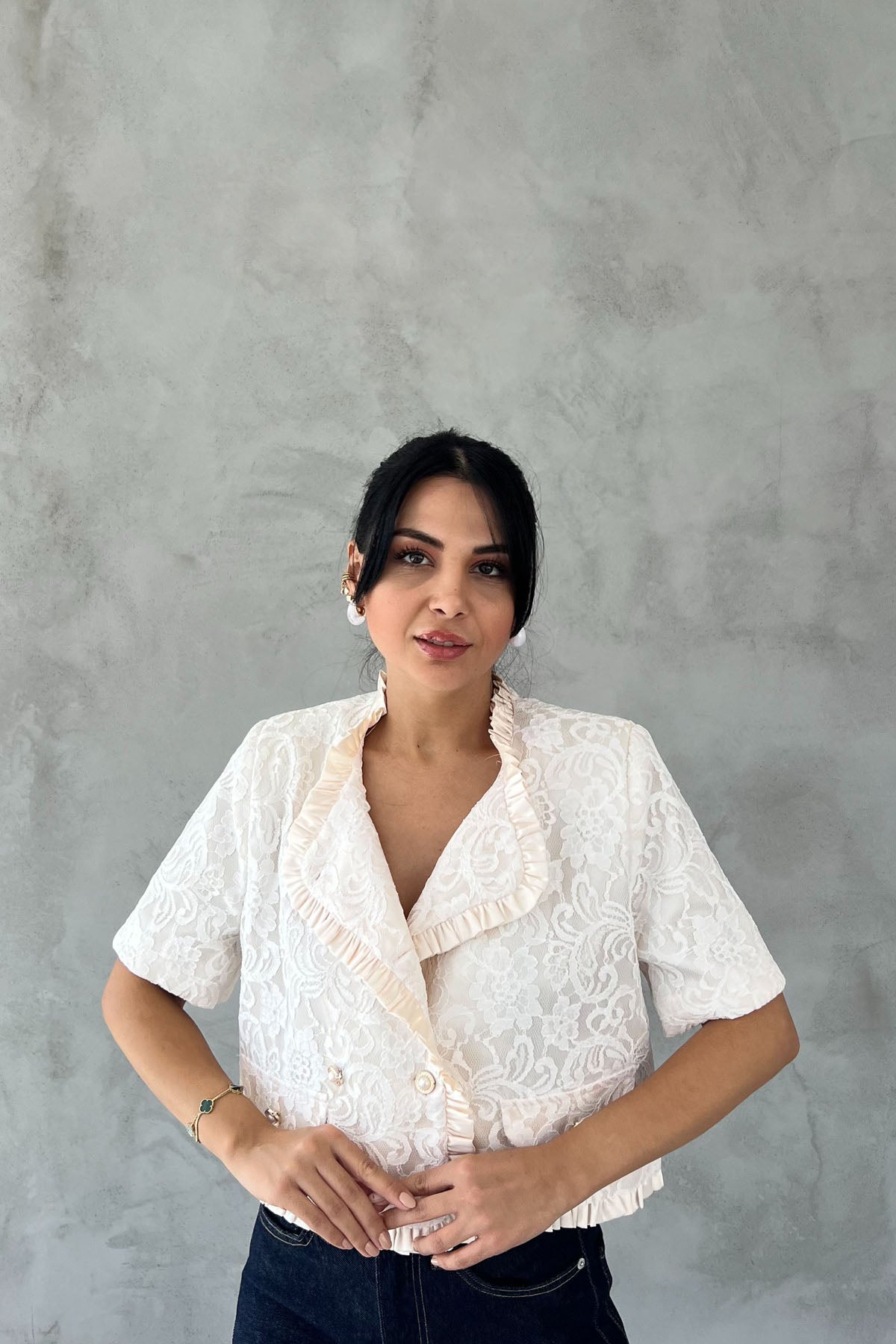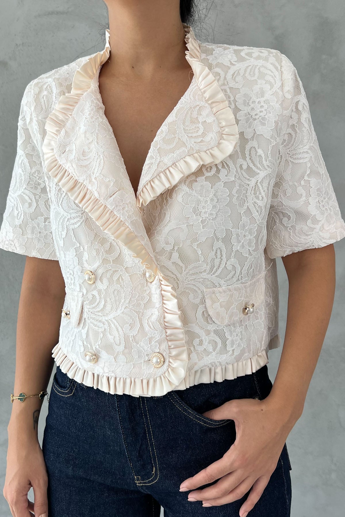 Krem Dantelli Vatkalı Astarlı Kısa Kollu Ceket SY-2504-Krem
