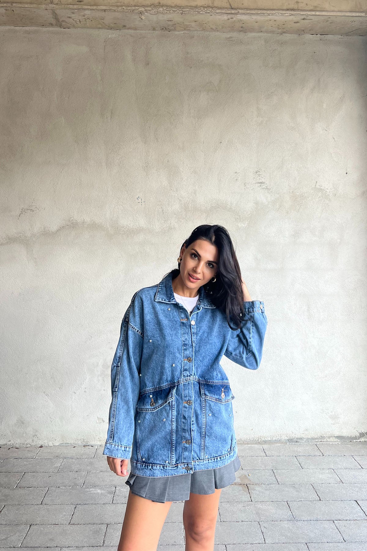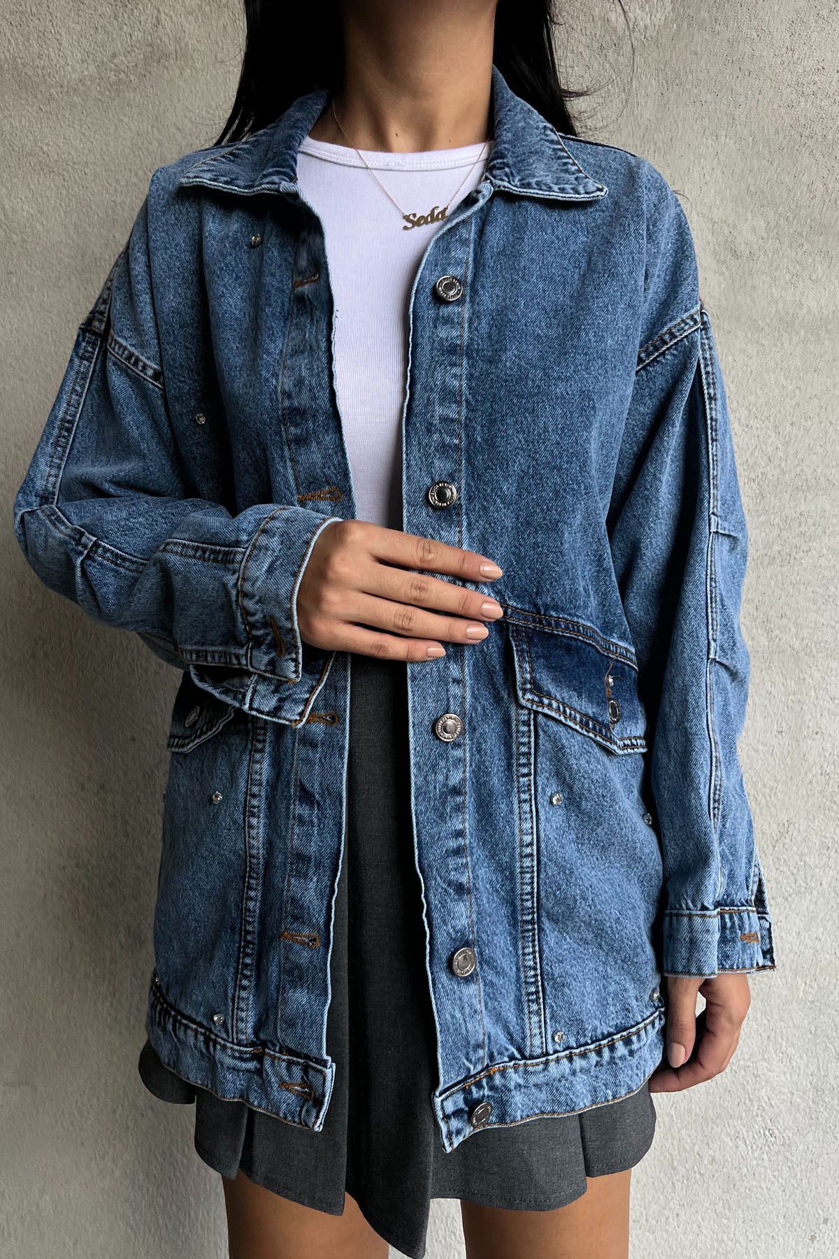 Ürün Özellikleri:Mavi Taşlı Büyük Cep Detaylı Kot Ceket