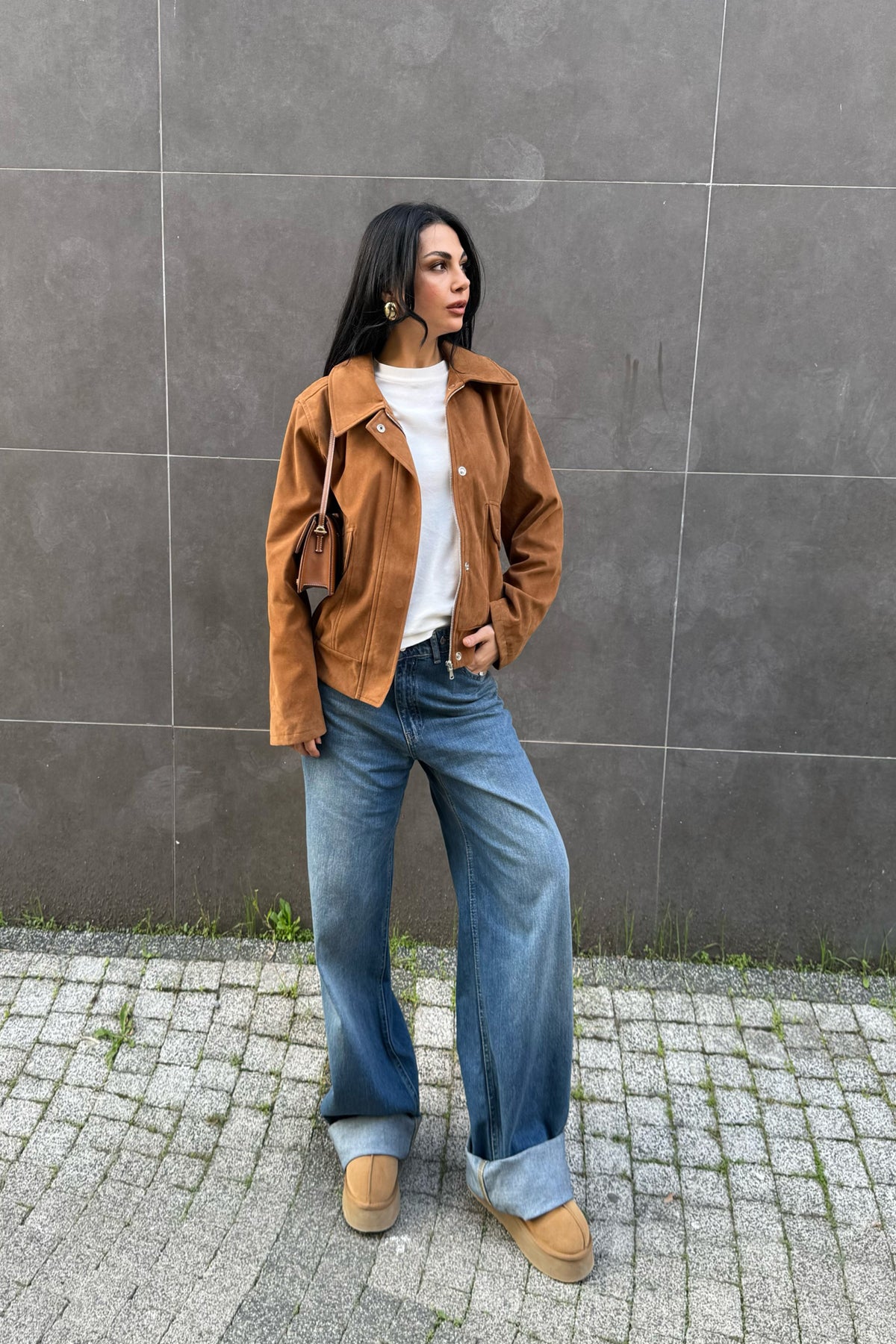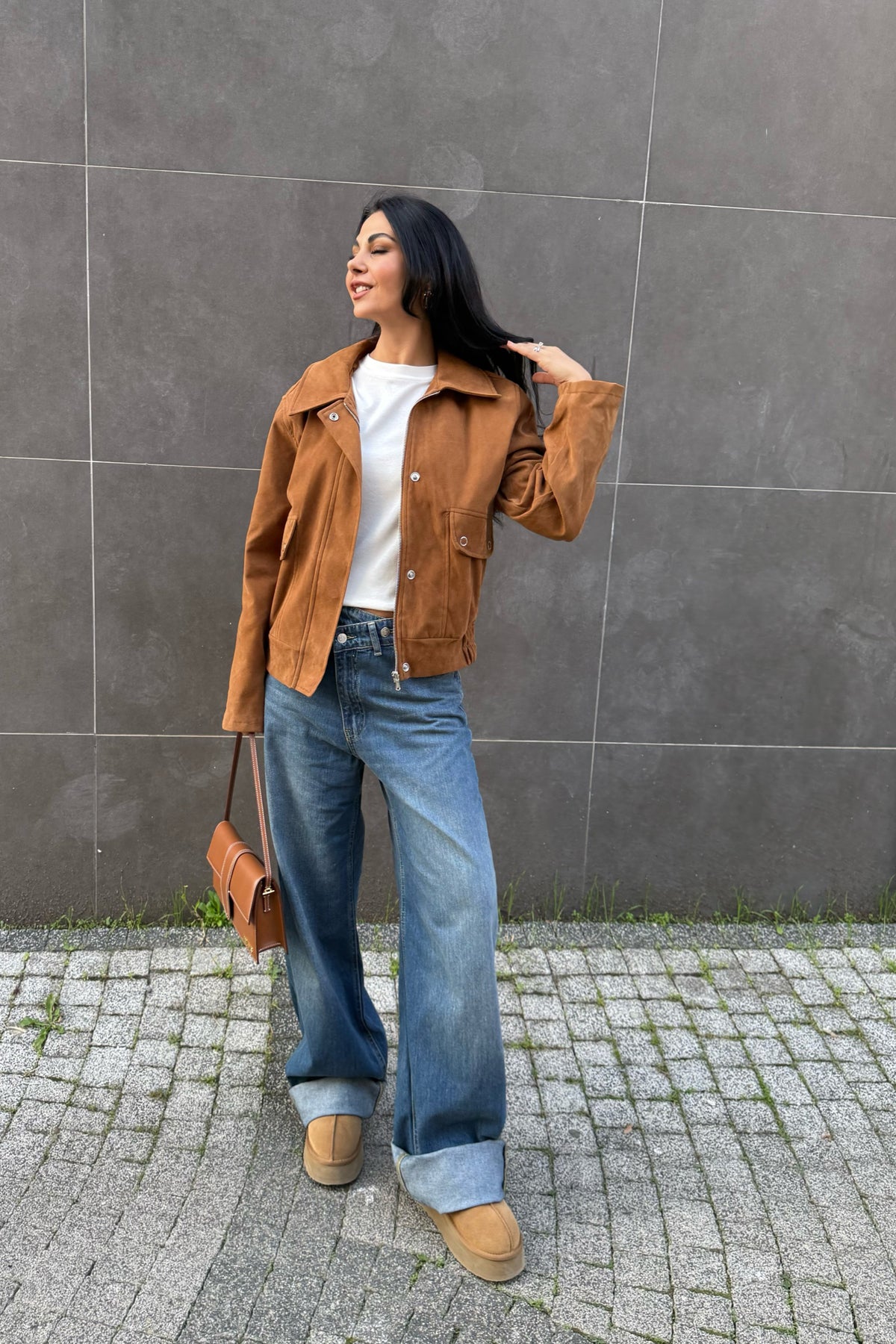 Taba Cep Detaylı Bomber Ceket SY-3462-Taba