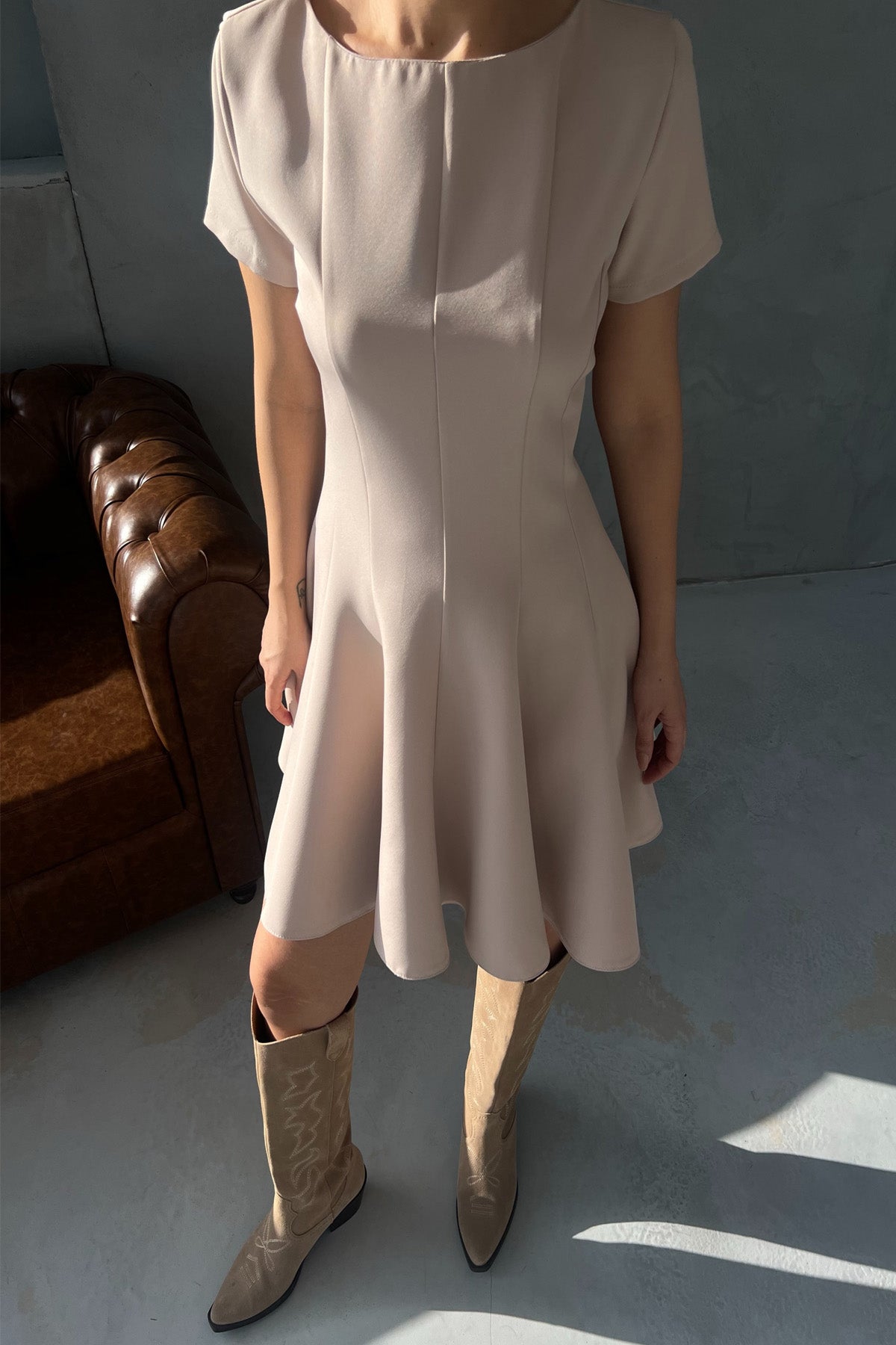 Bej Coco Volanlı Kısa Elbise SY-2921-Bej