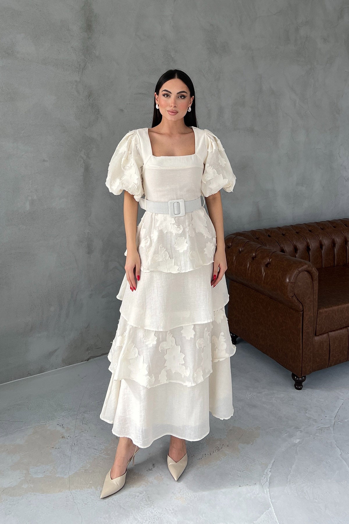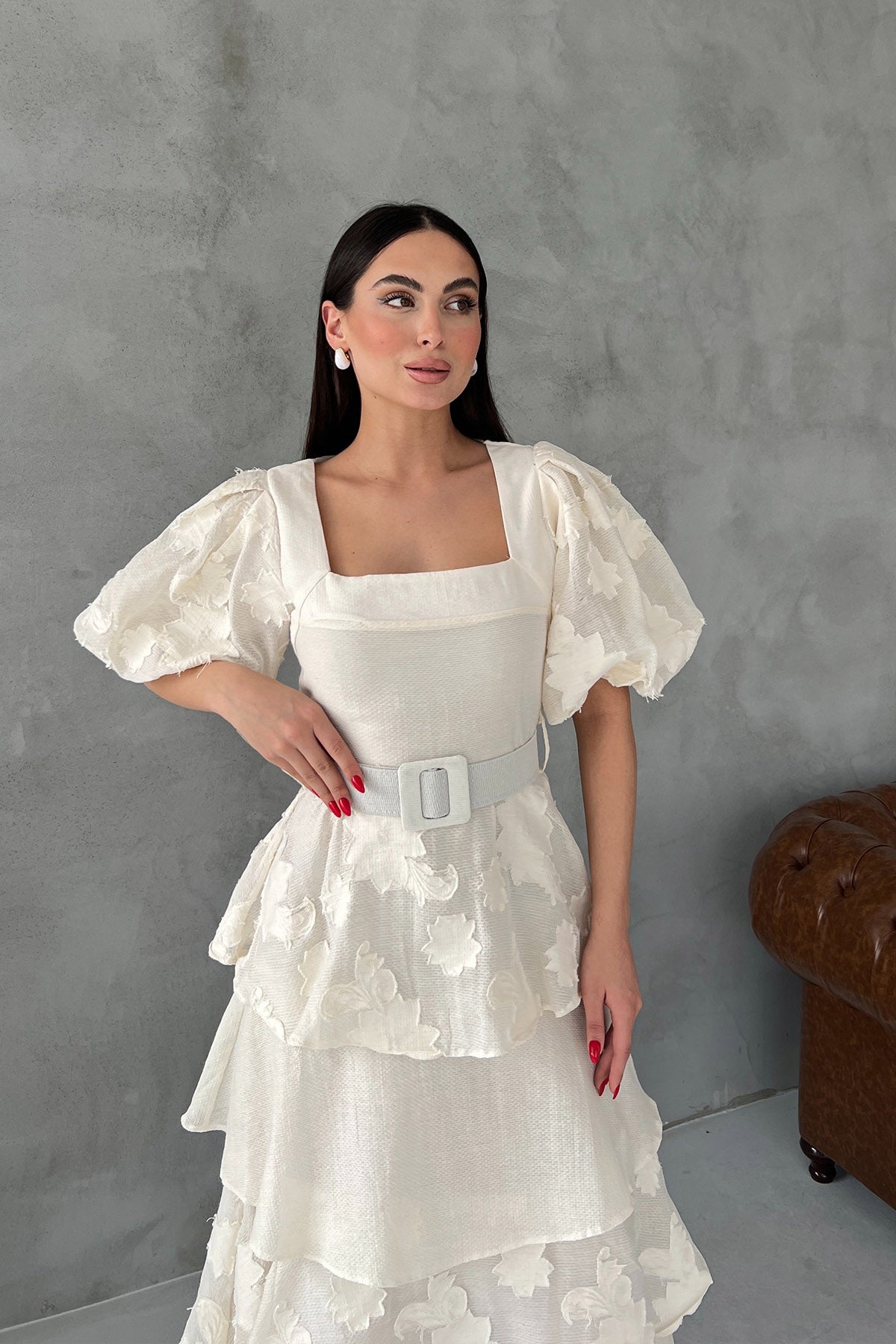 Ürün Özellikleri:Balon Kol , Kat kat, Kemerli