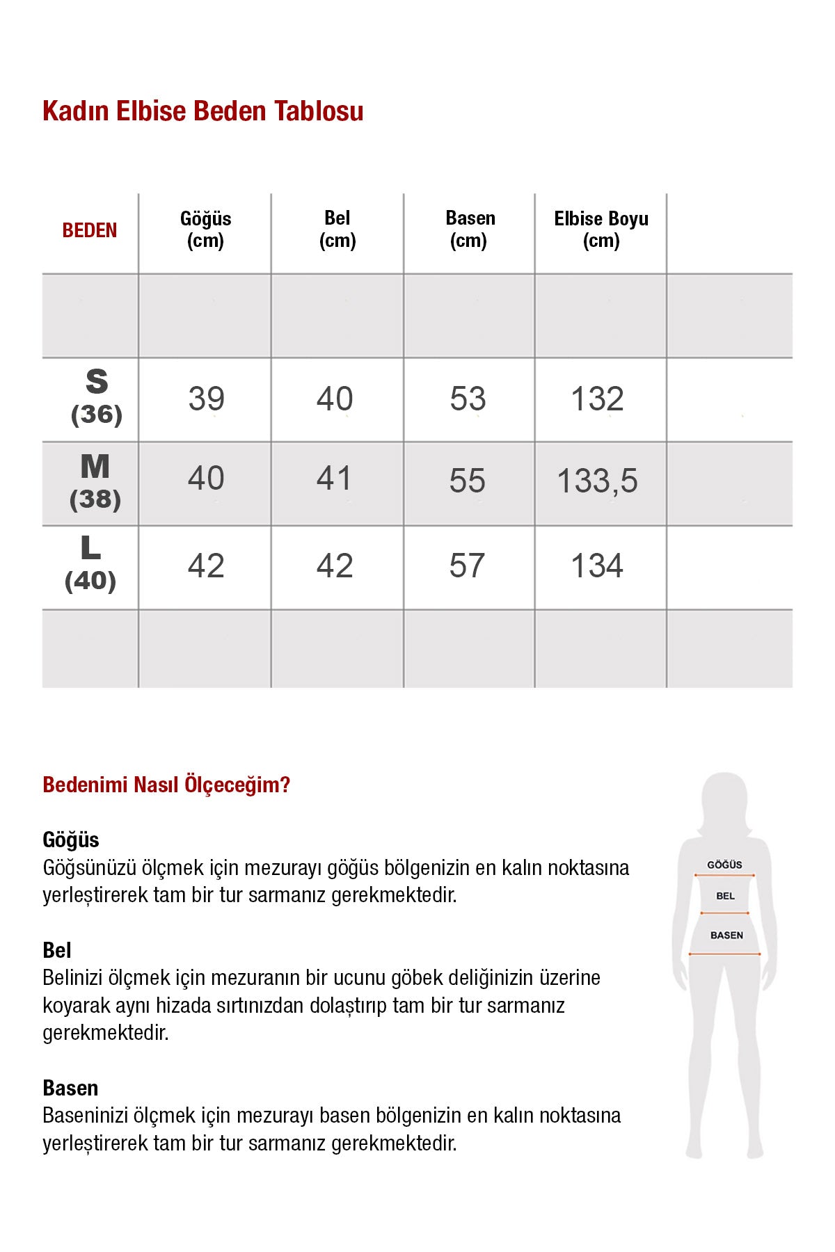Ürün Boyu: 130 cm - Ara bedenler bir beden büyük tercih edebilir.