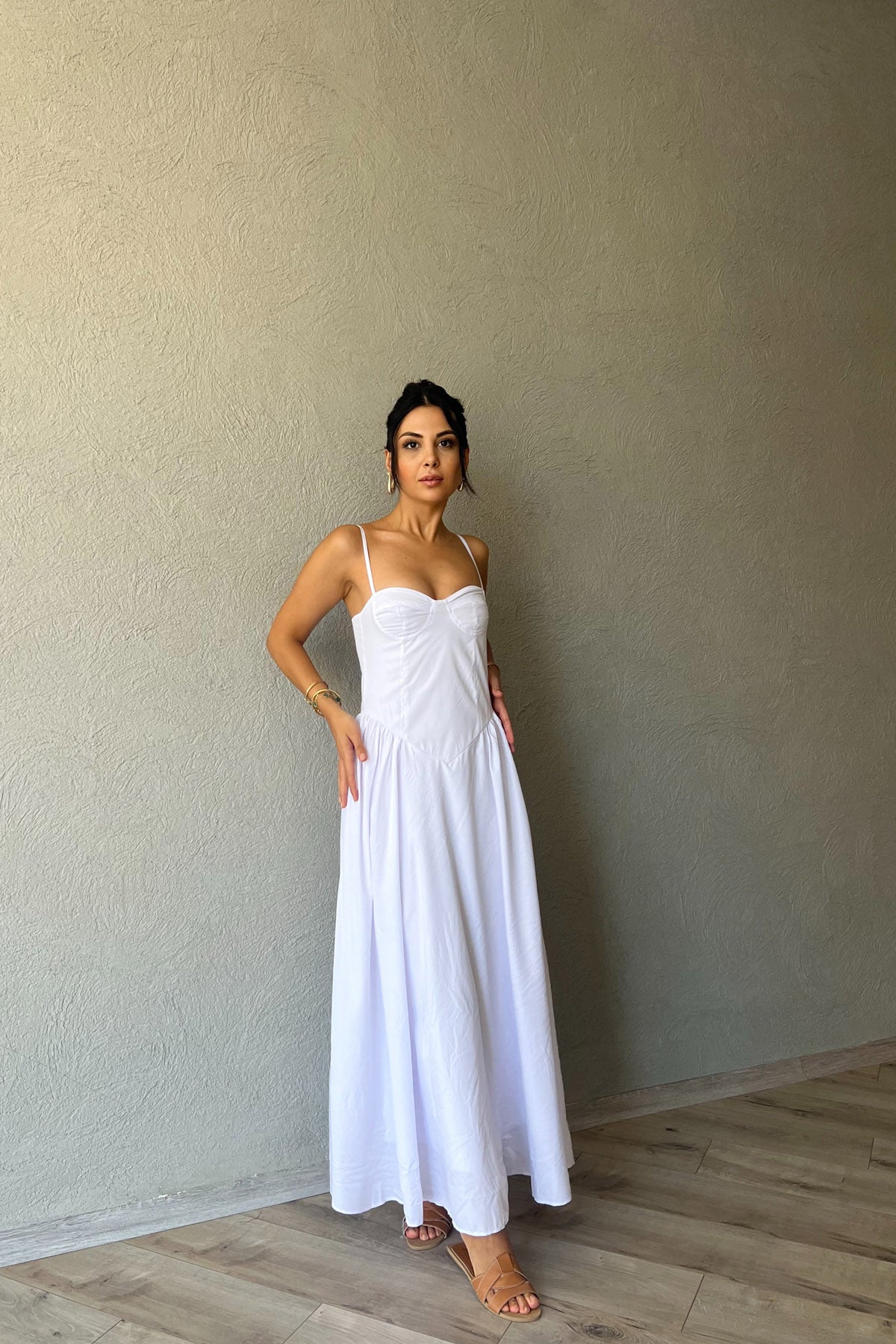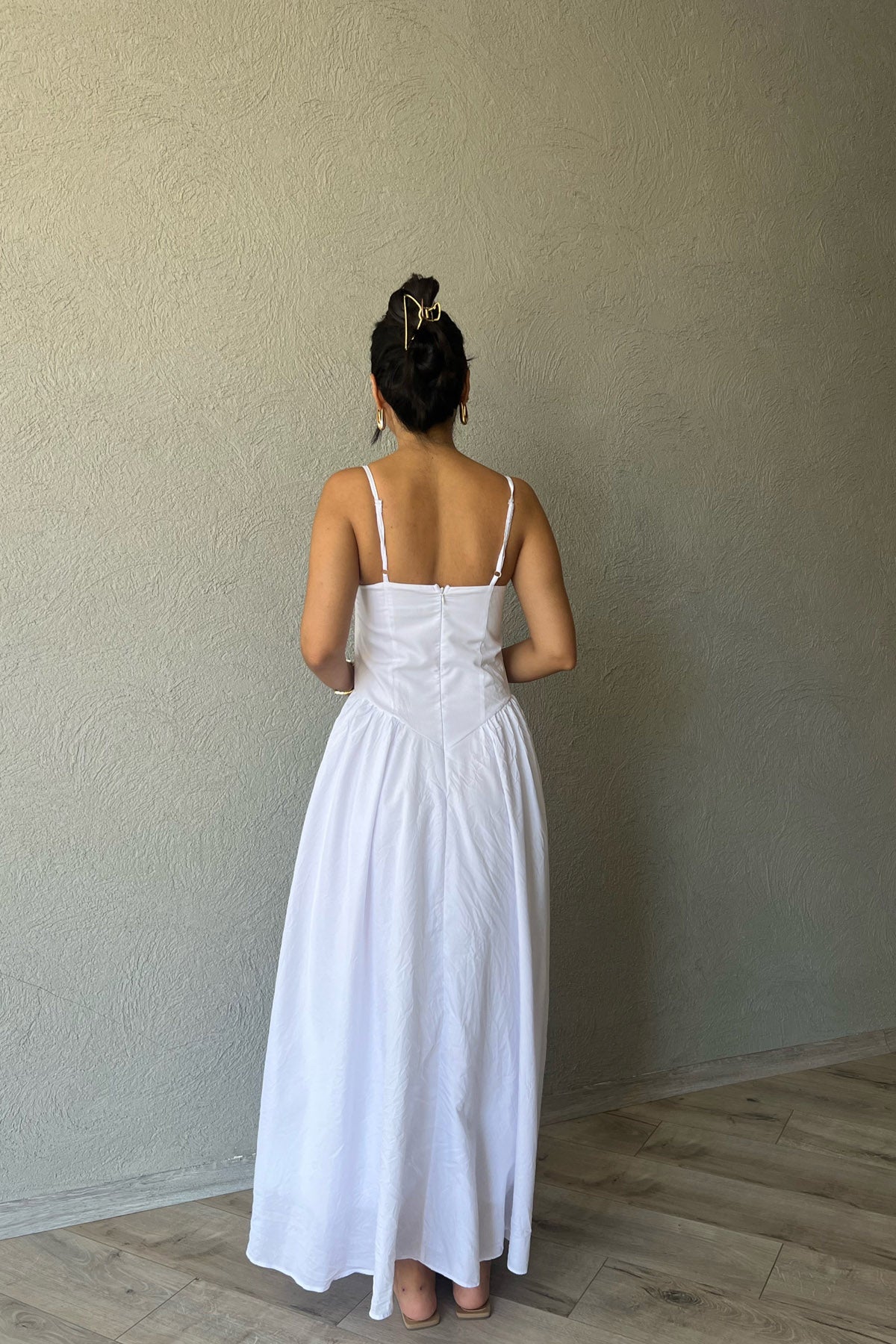 Ürün Detayları ; Beyaz Siena Göğüs Kulplu Elbise