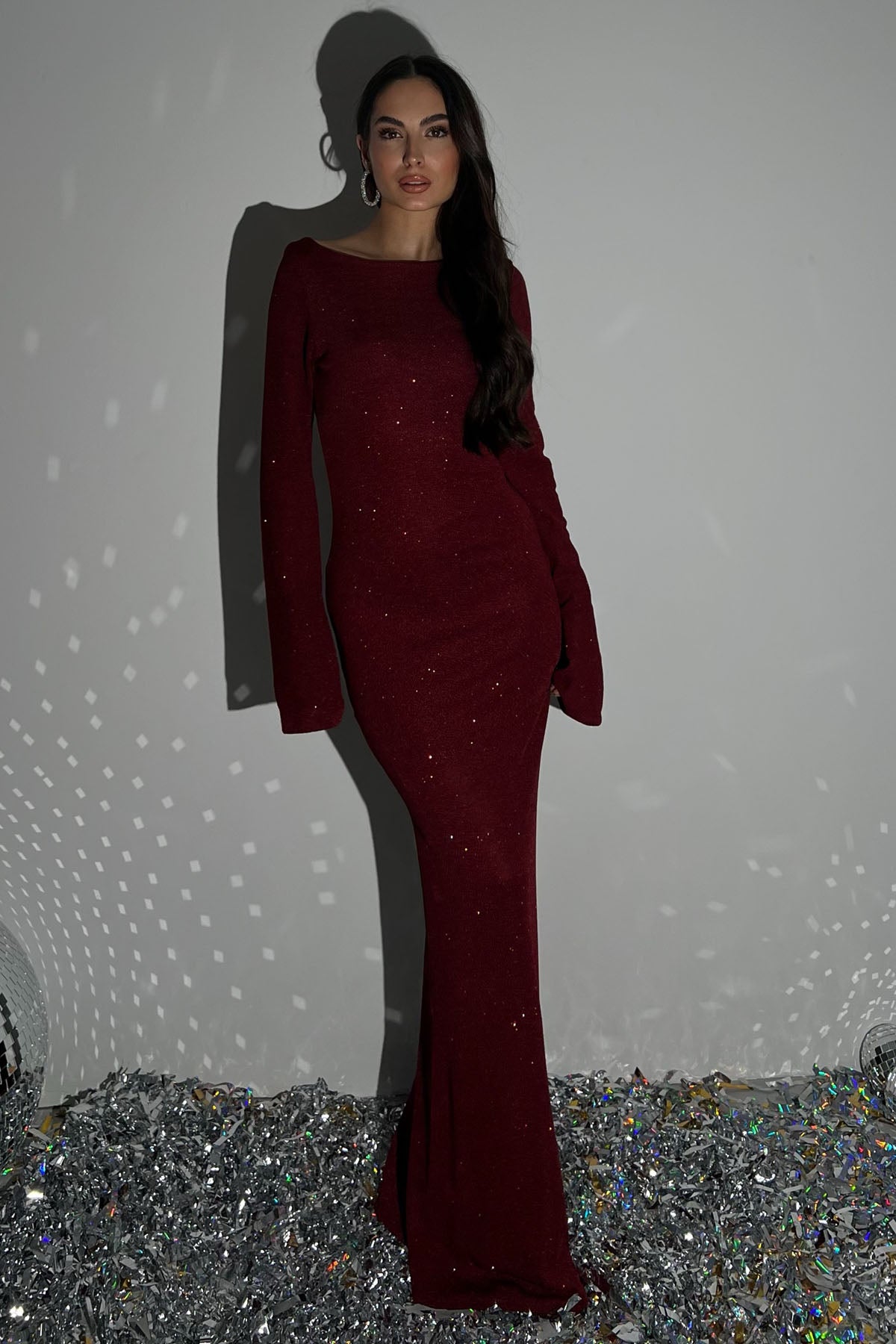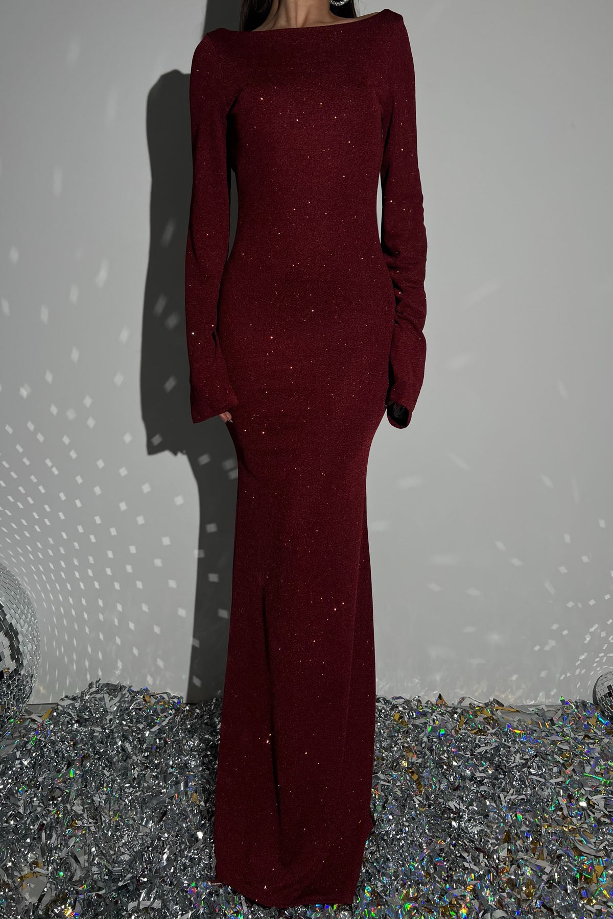 Bordo Simli Sırt Detaylı Kalem Elbise SY-2807-Bordo