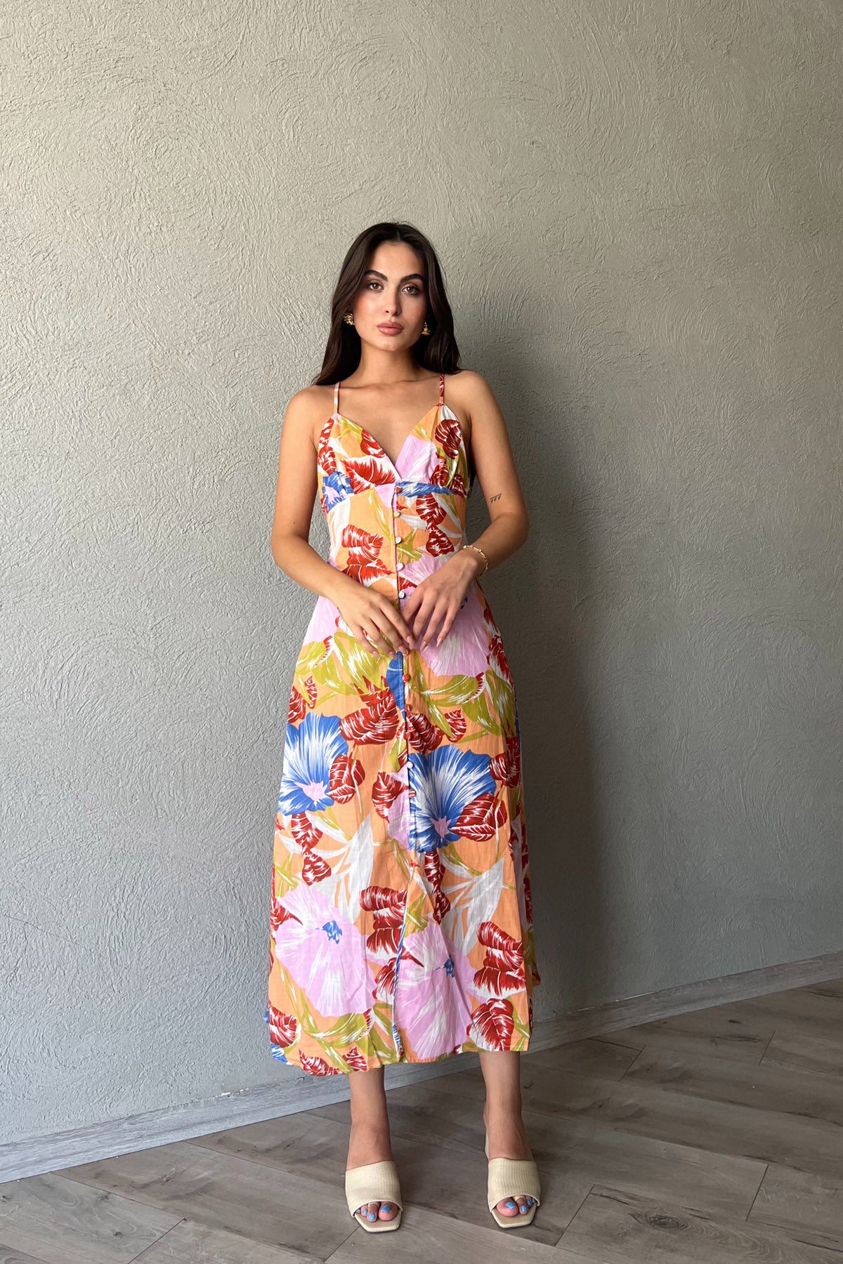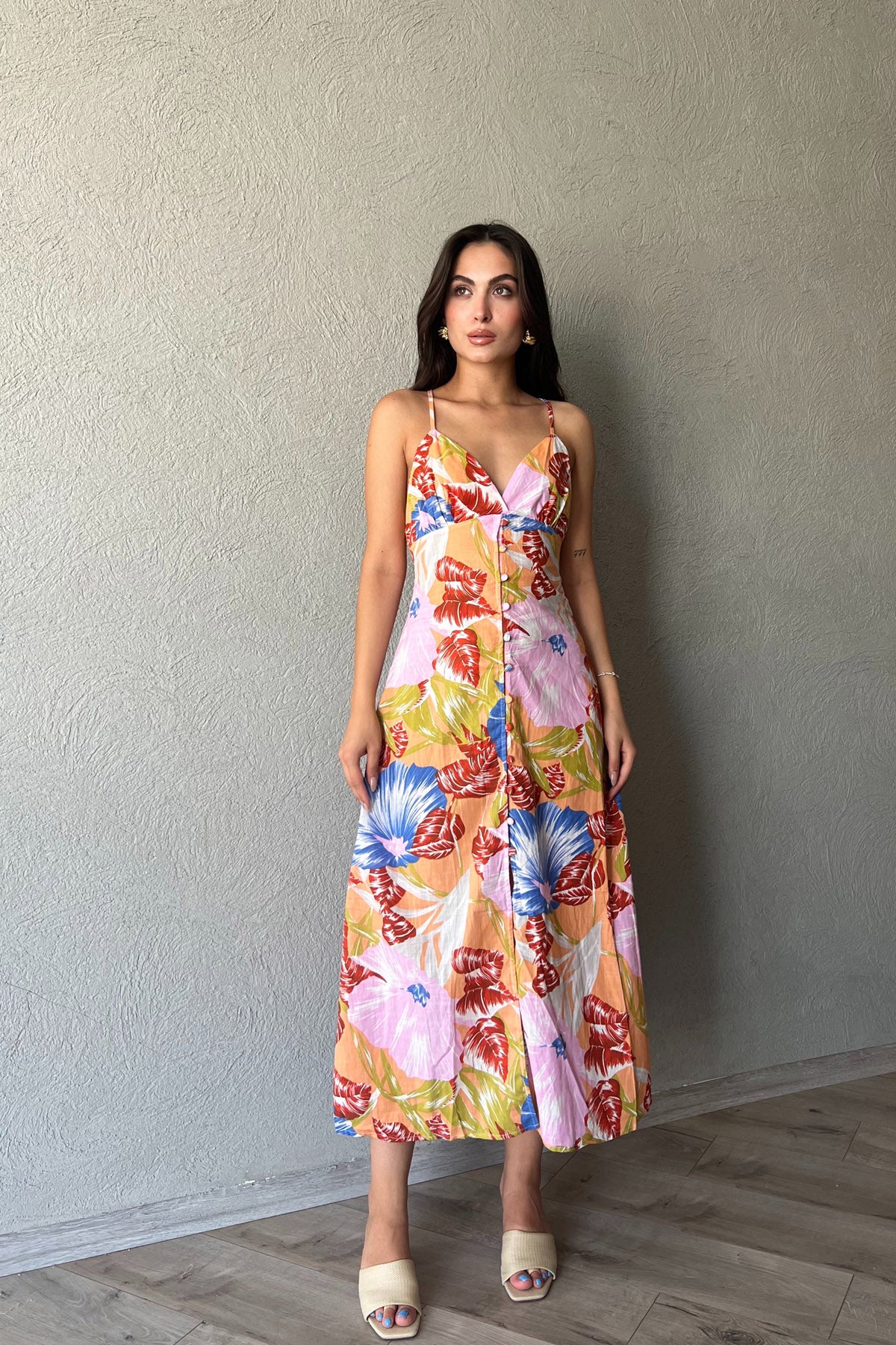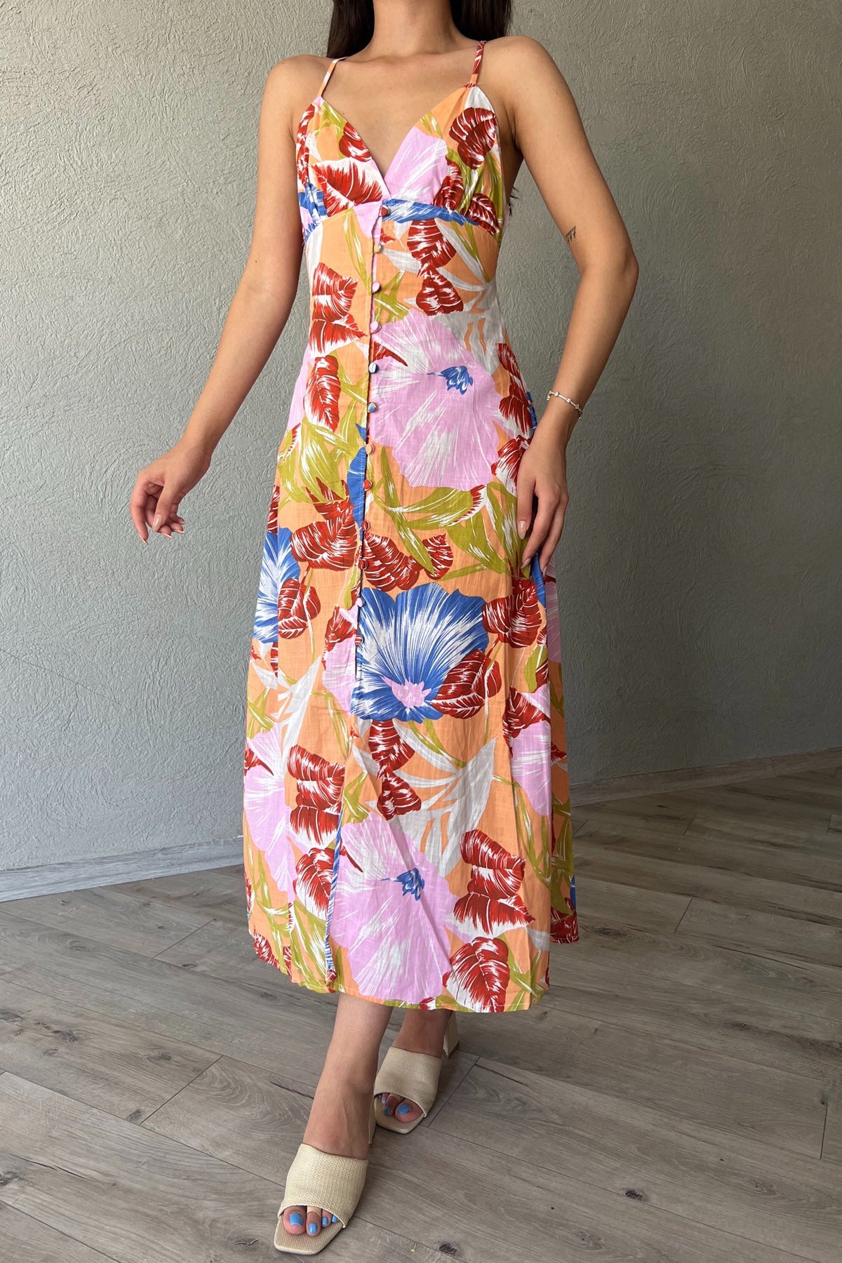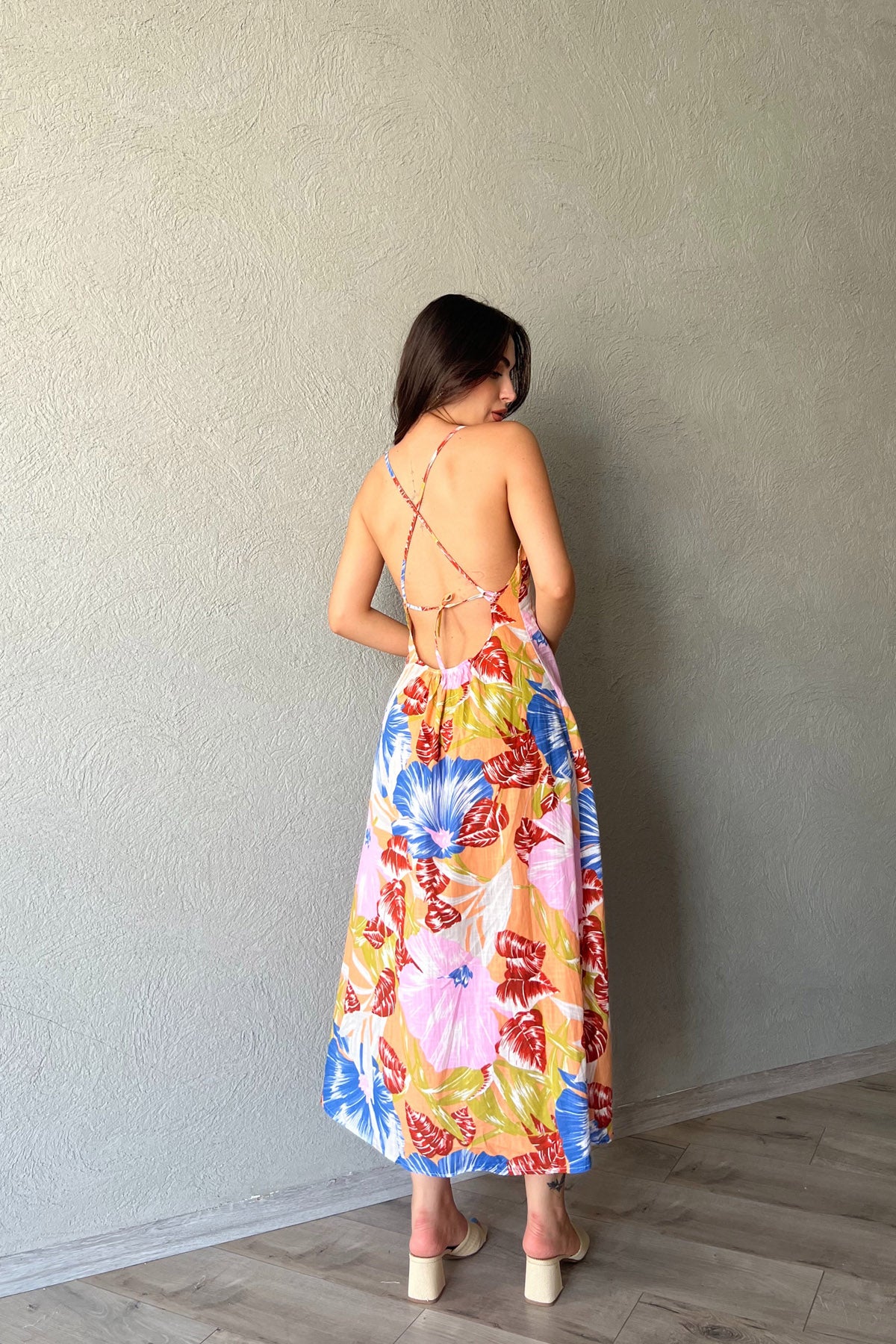 Ürün Detayları ; Desenli Sırt Dekolteli Elbise