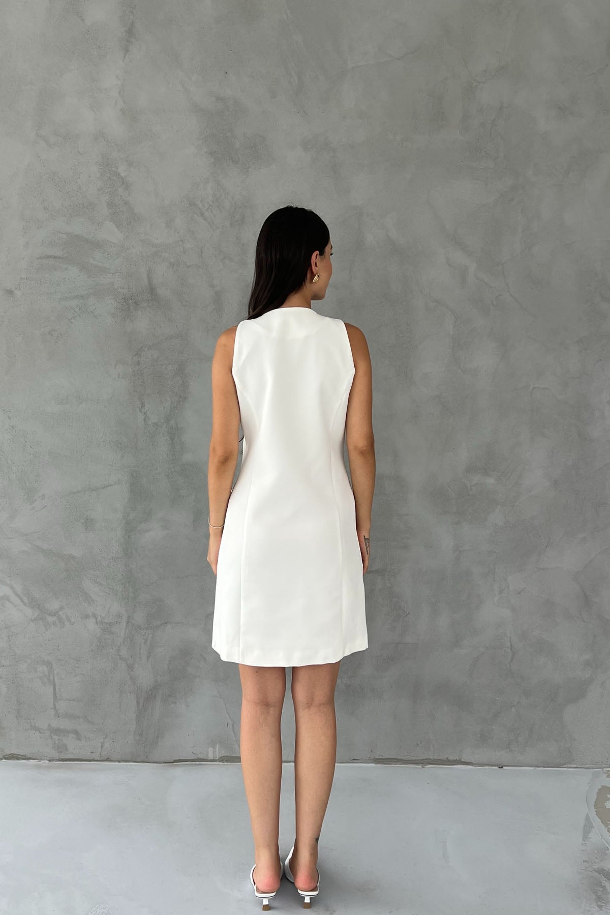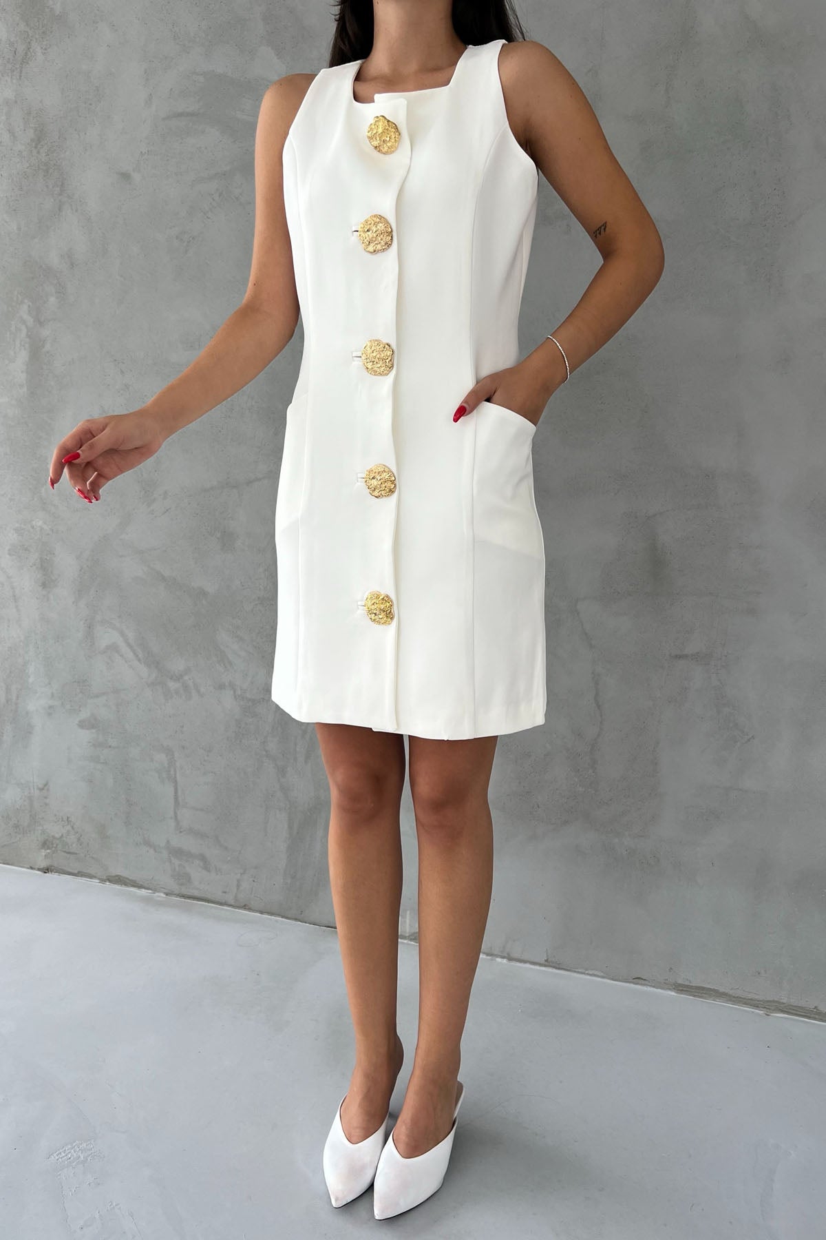 Ürün Özellikleri:Ekru Büyük Gold Düğme Detaylı Kısa Elbise