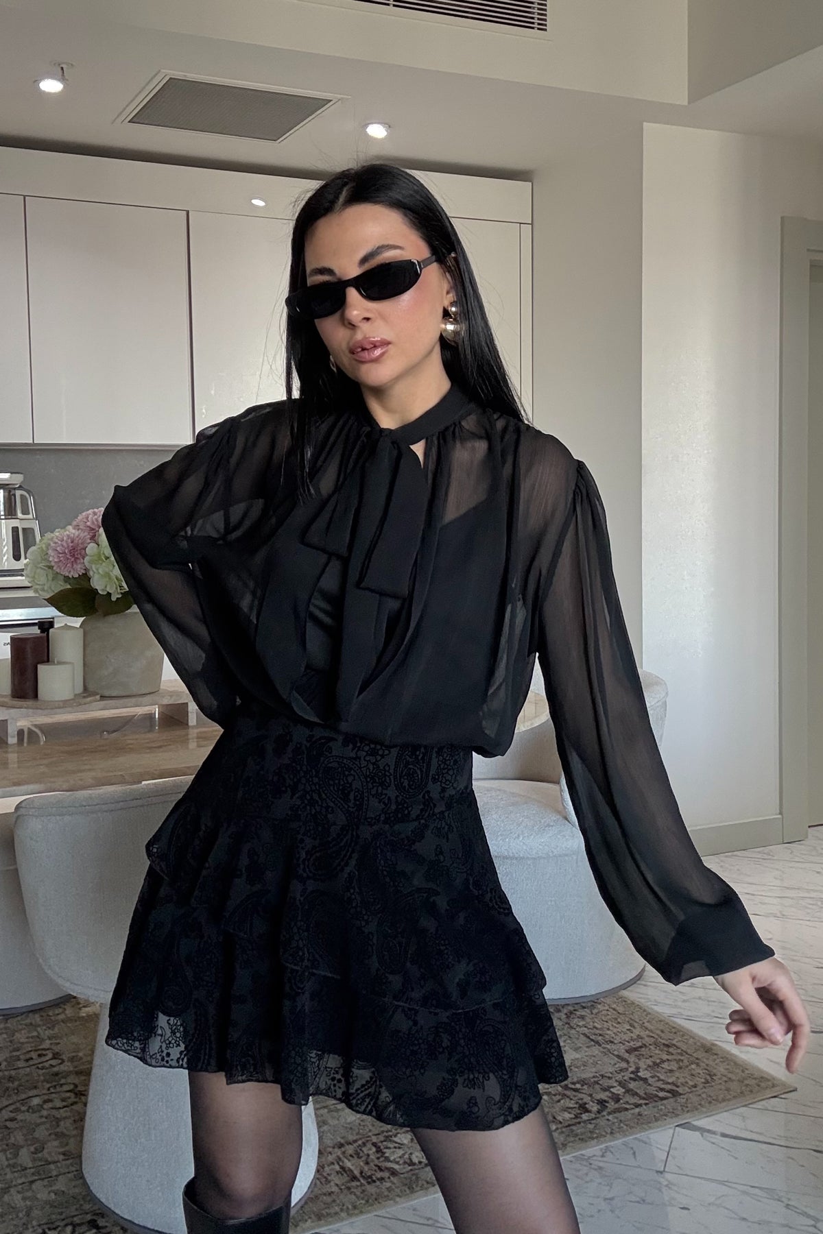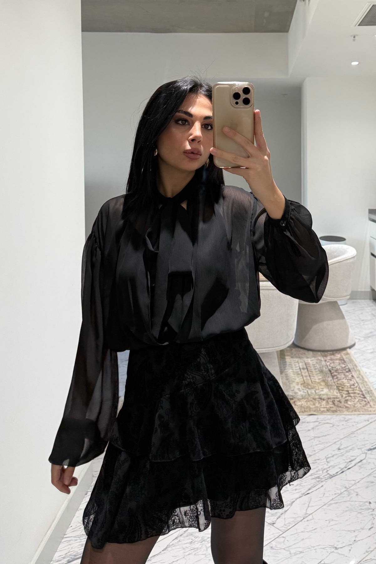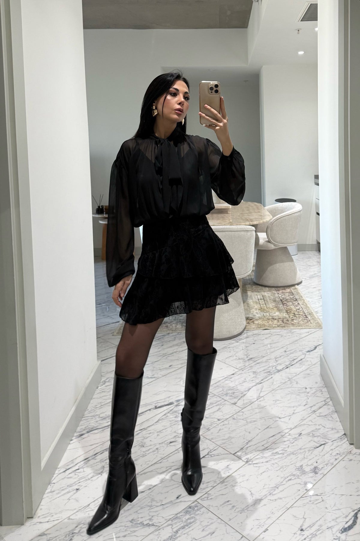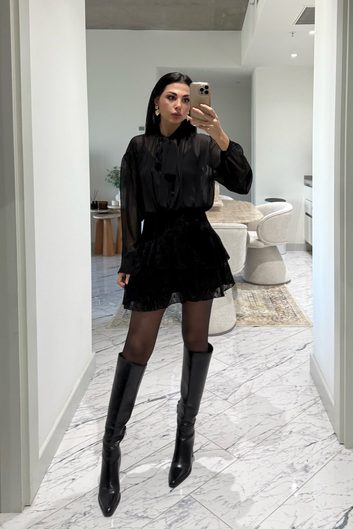 Eteği Kadife Astarlı Tasarım Tül Mini Elbise SY-3526-Siyah