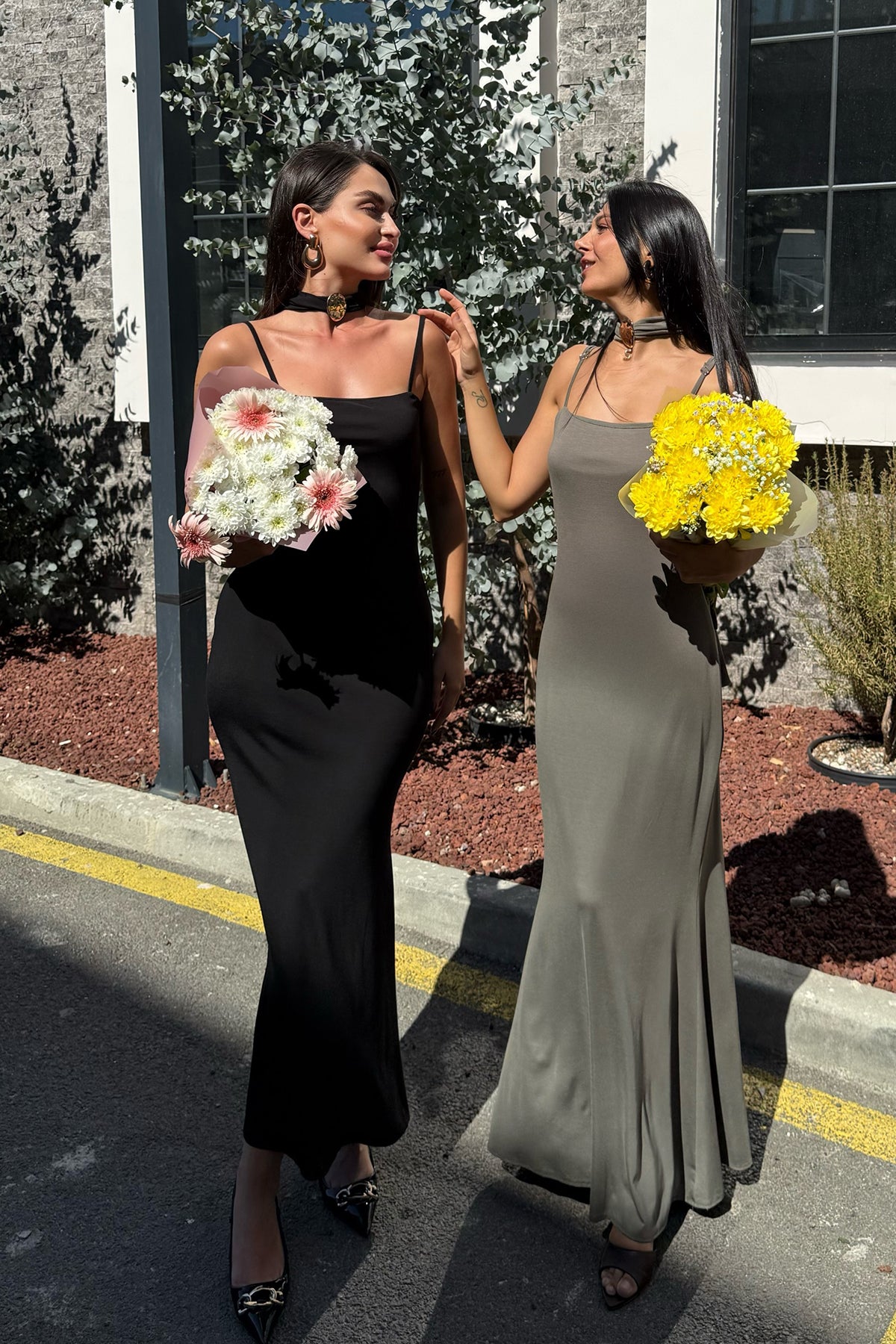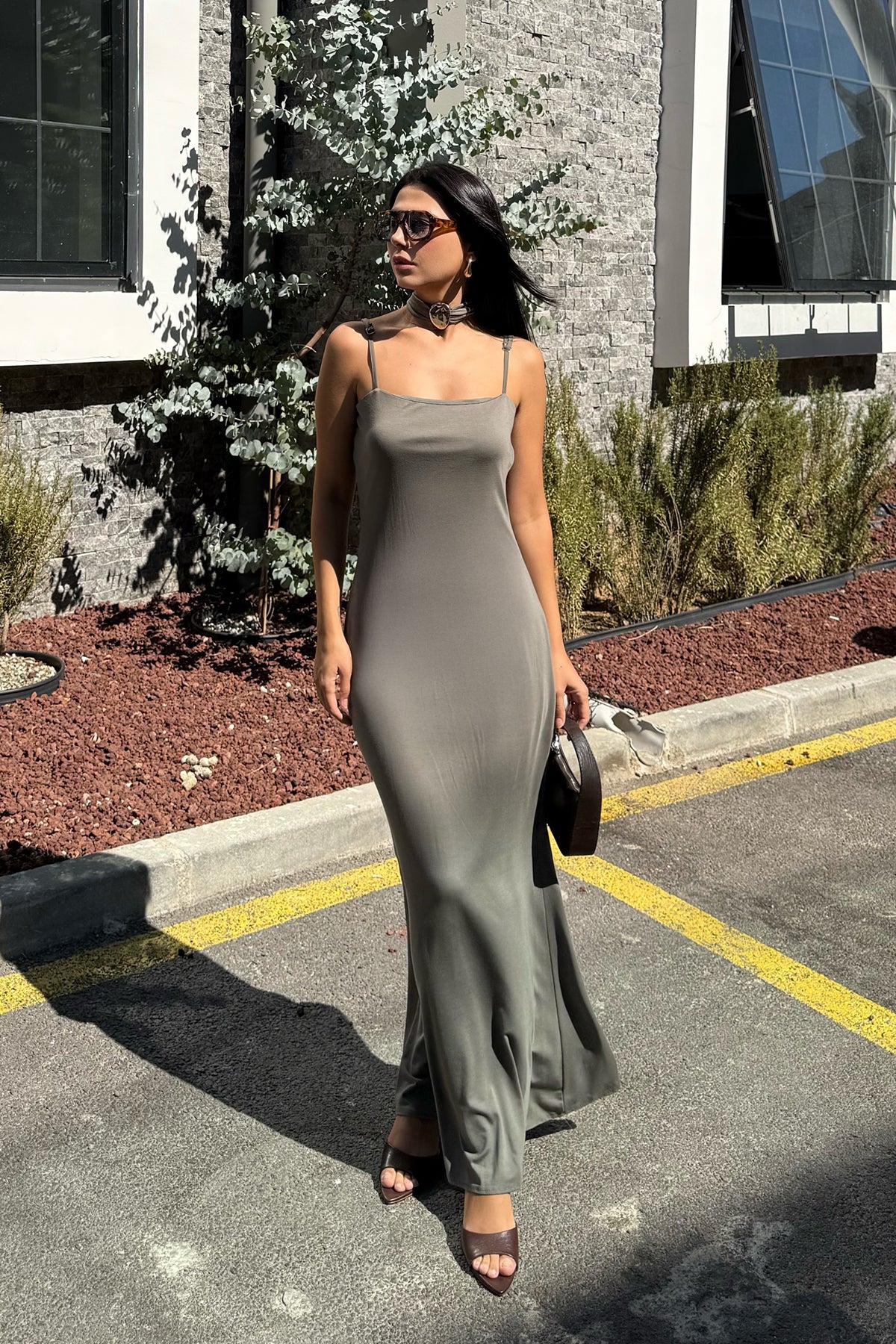 Haki Gold Kuşaklı Midi Elbise SY-3332-Haki