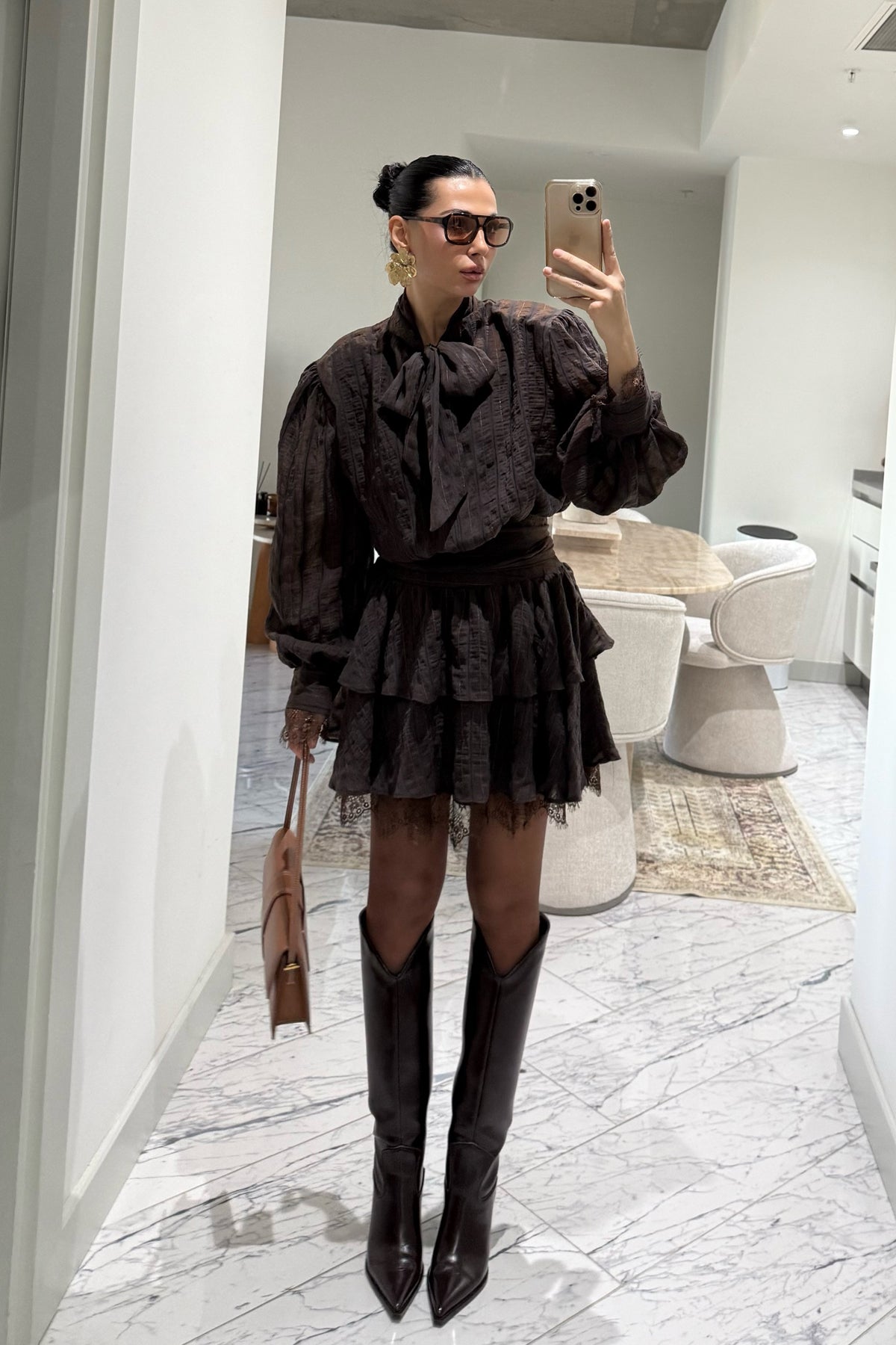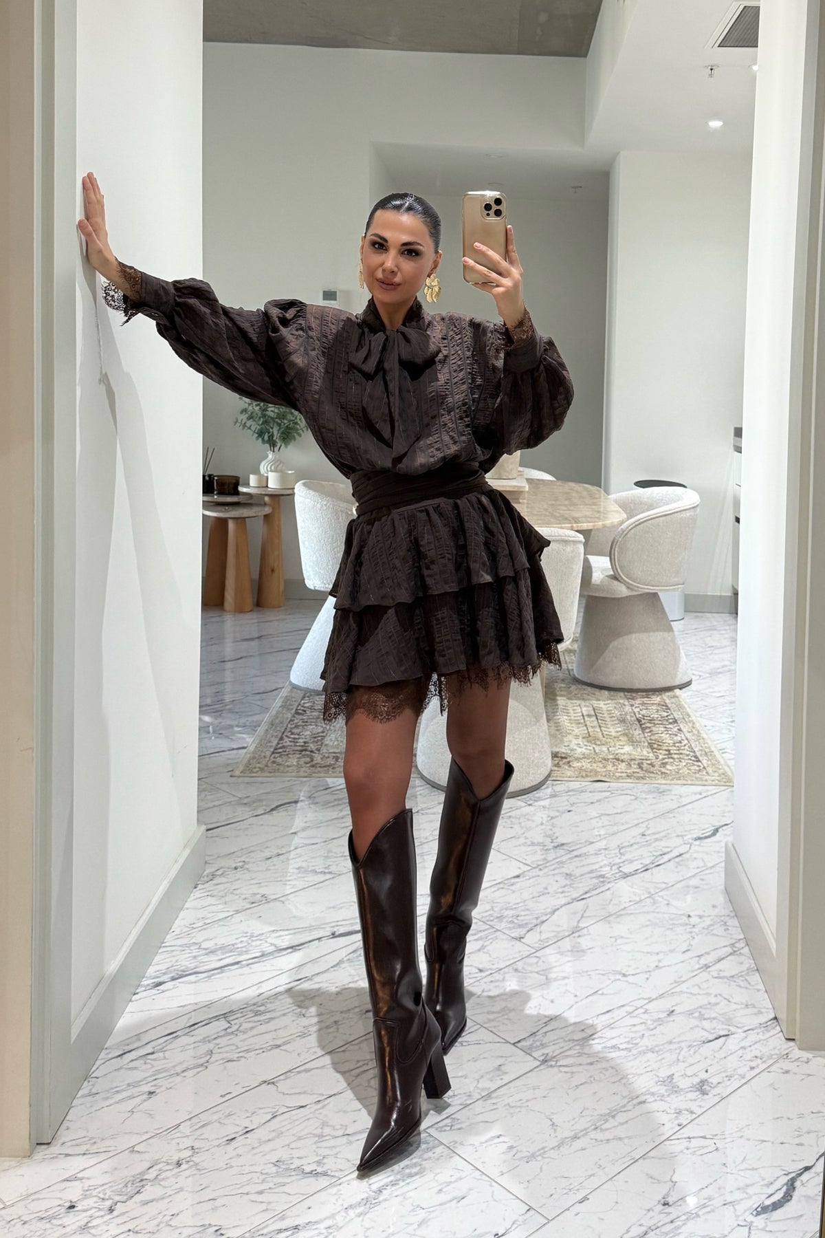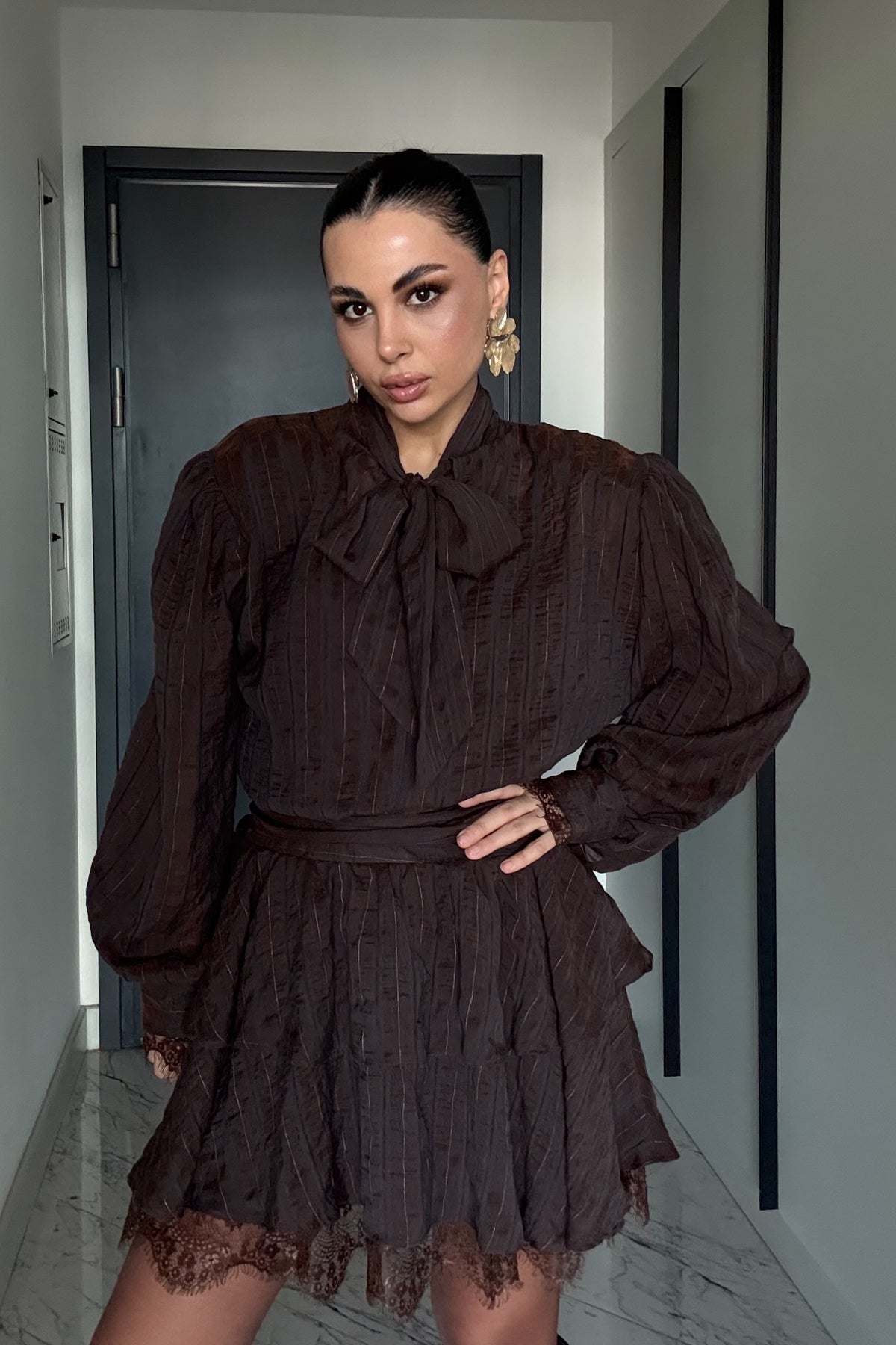Ürün Detayları:Kahve Dantel Detaylı Vatkalı Vintage Elbise