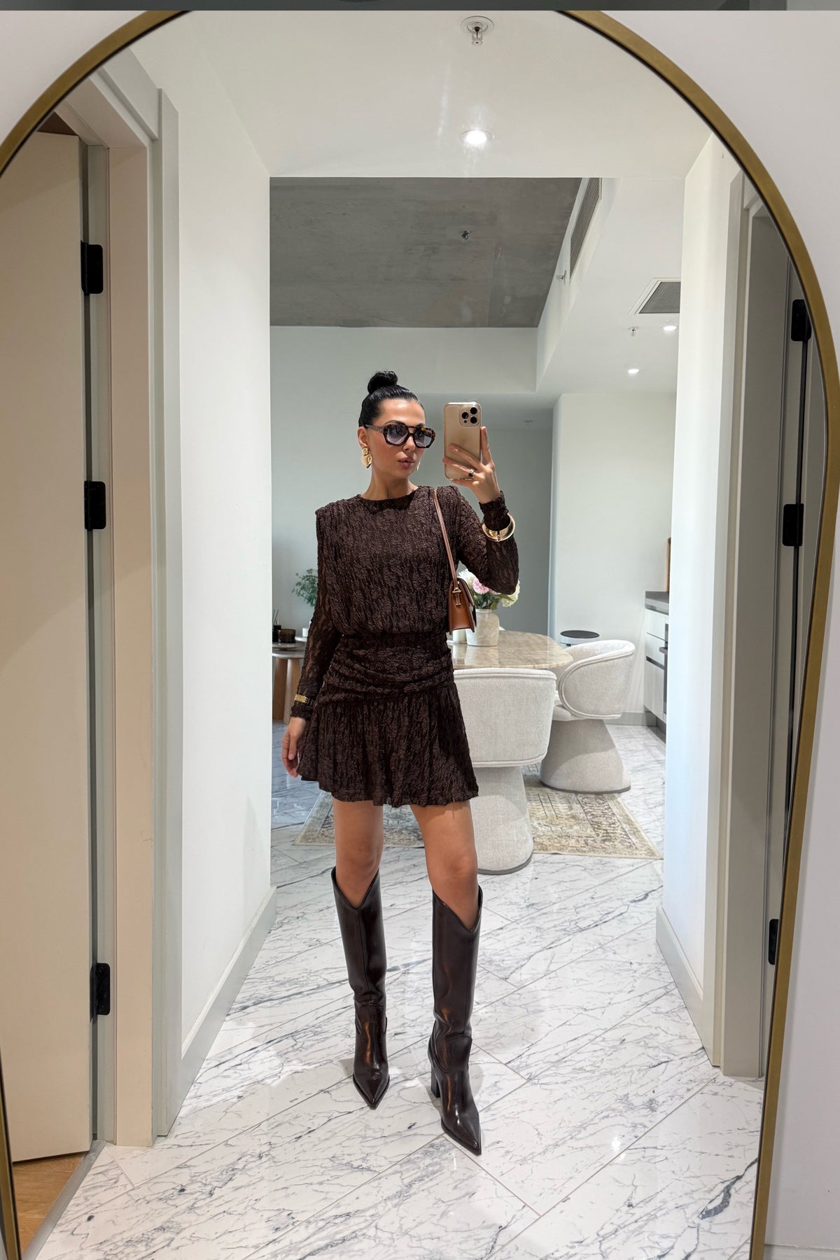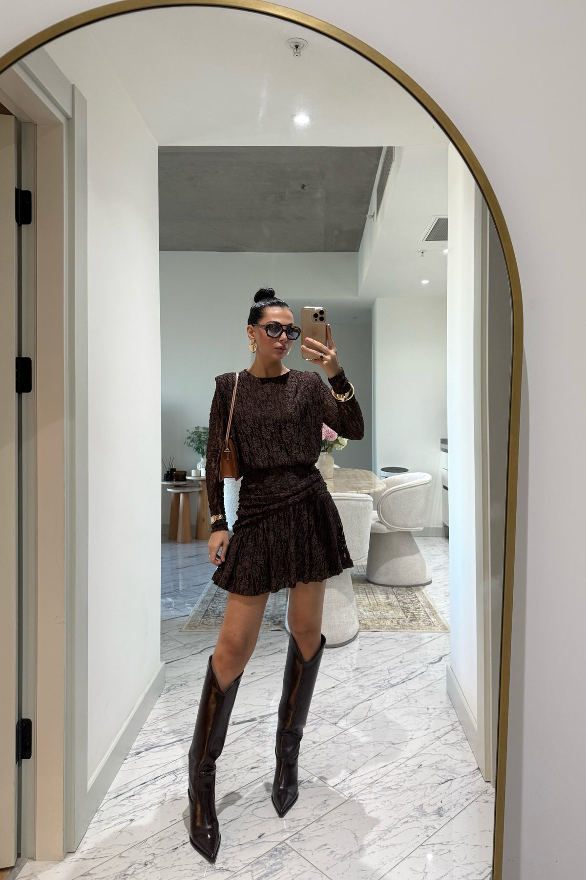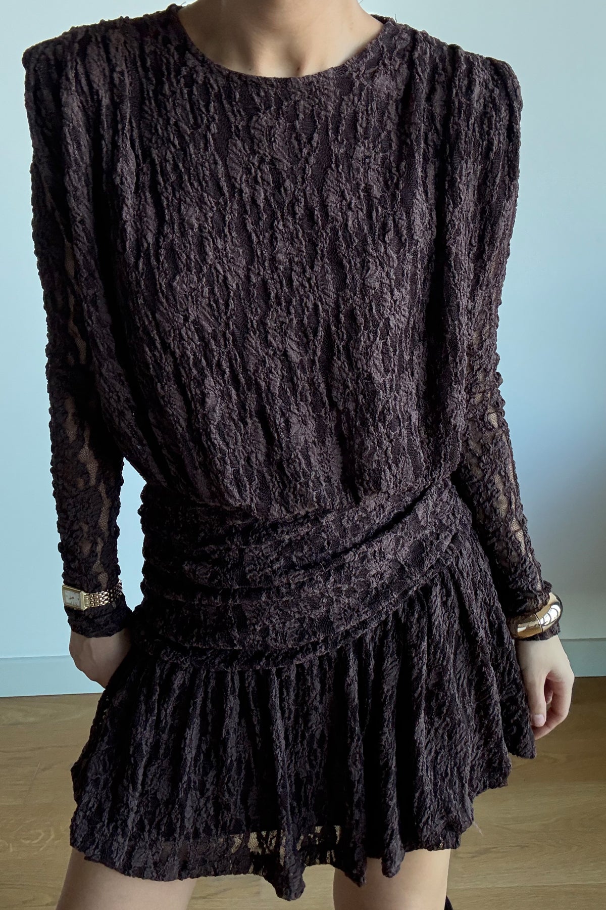 Ürün Detayları:Kahverengi Güpürli Midi Tasarım Elbise