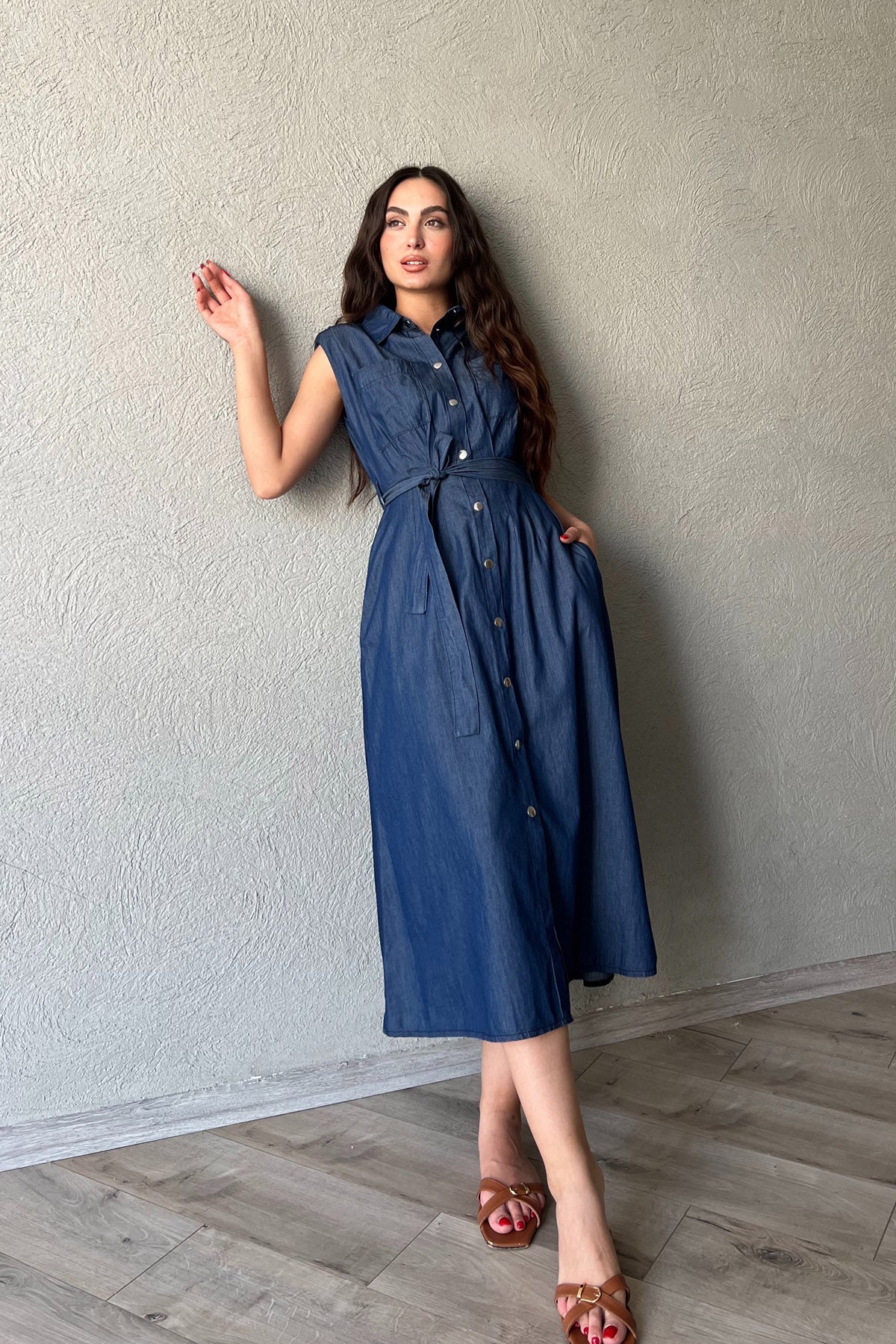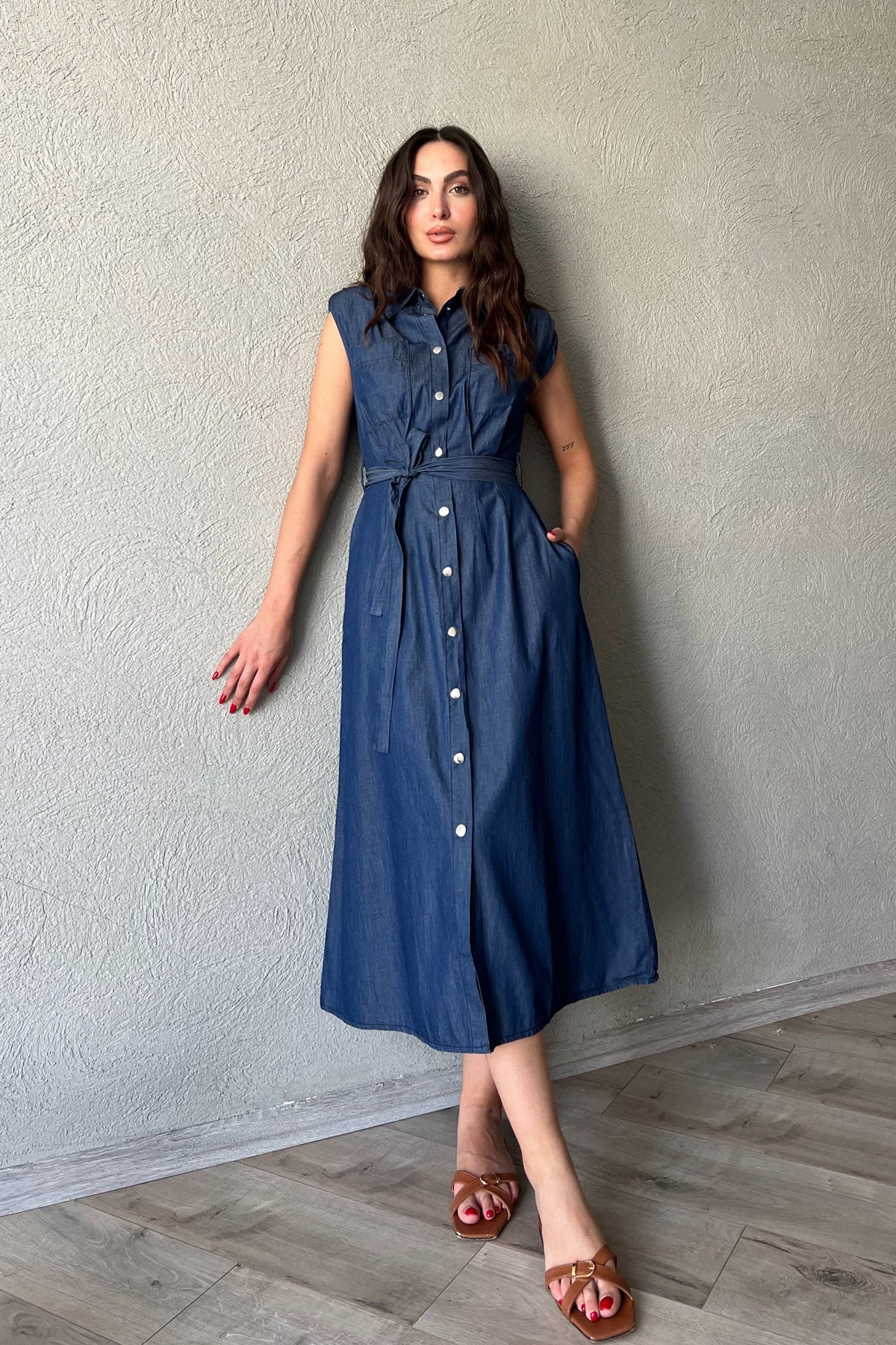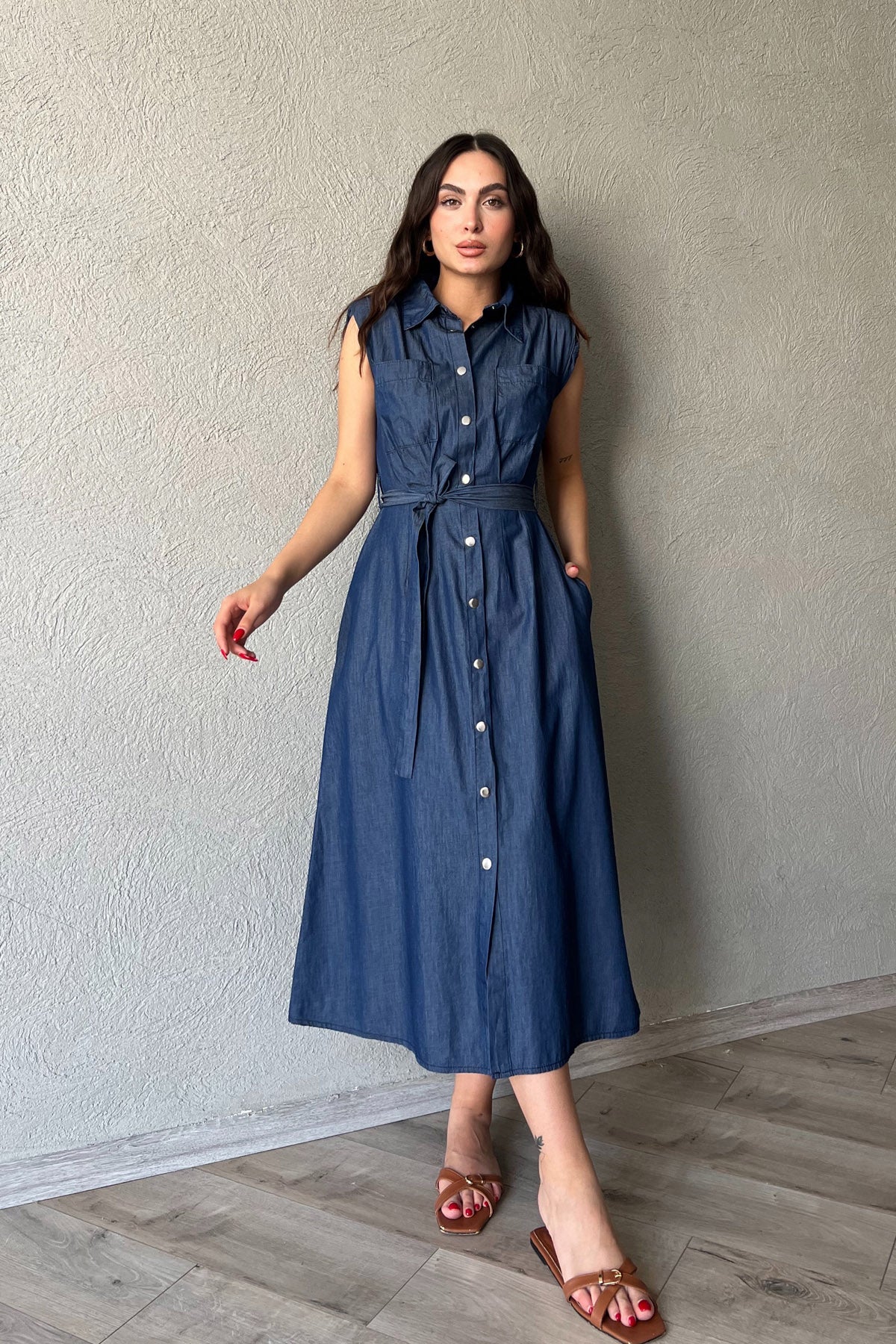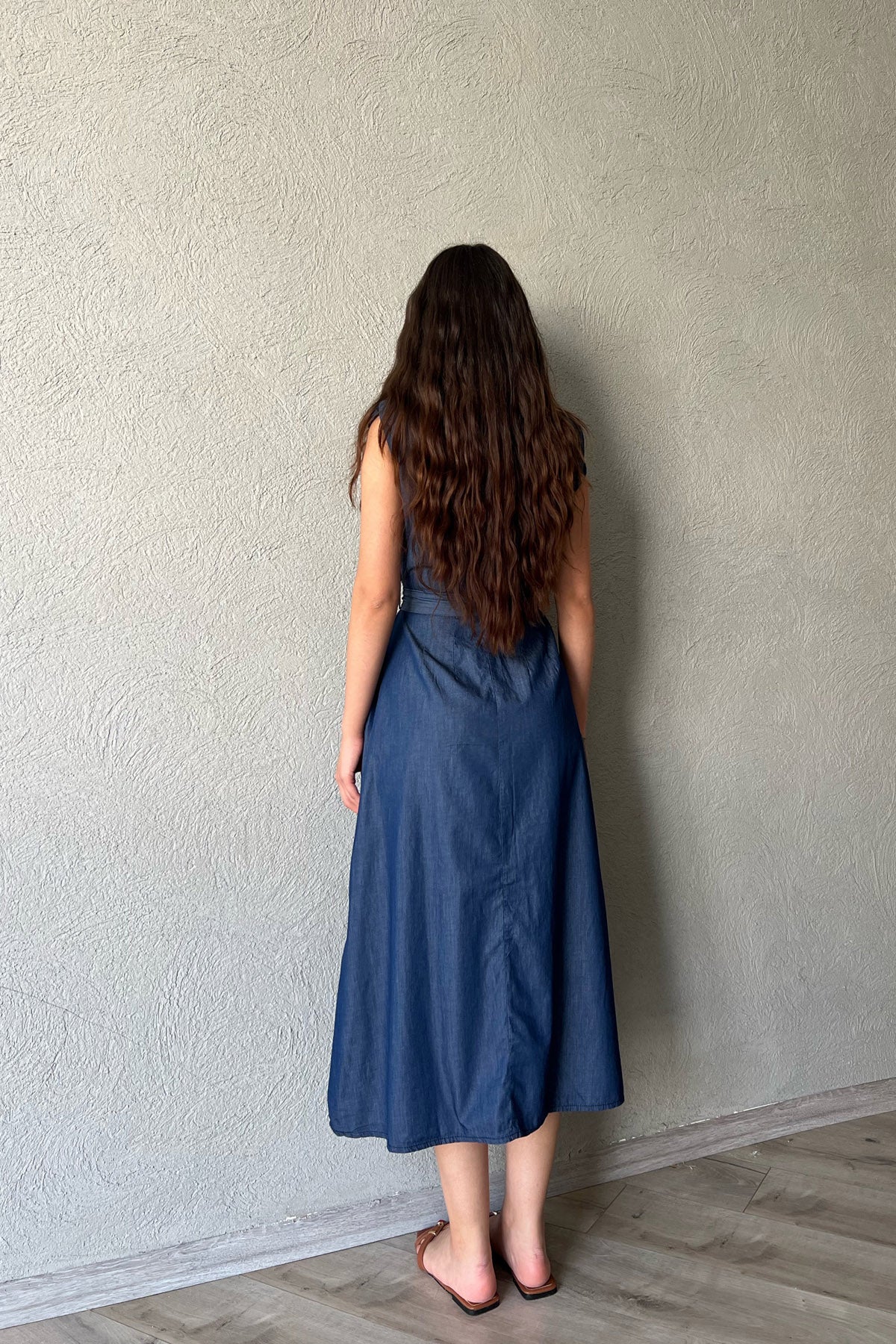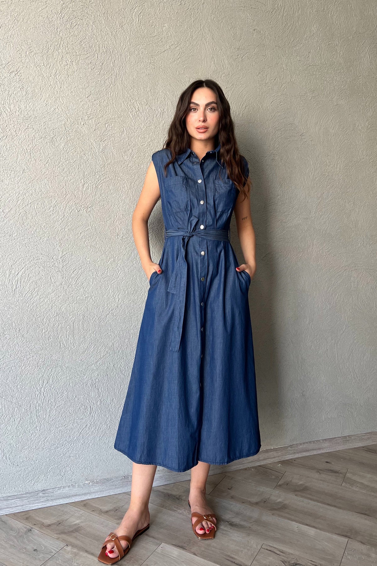 Ürün Detayları ;Mavi Vatkalı ÇıtÇıt Detaylı Elbise