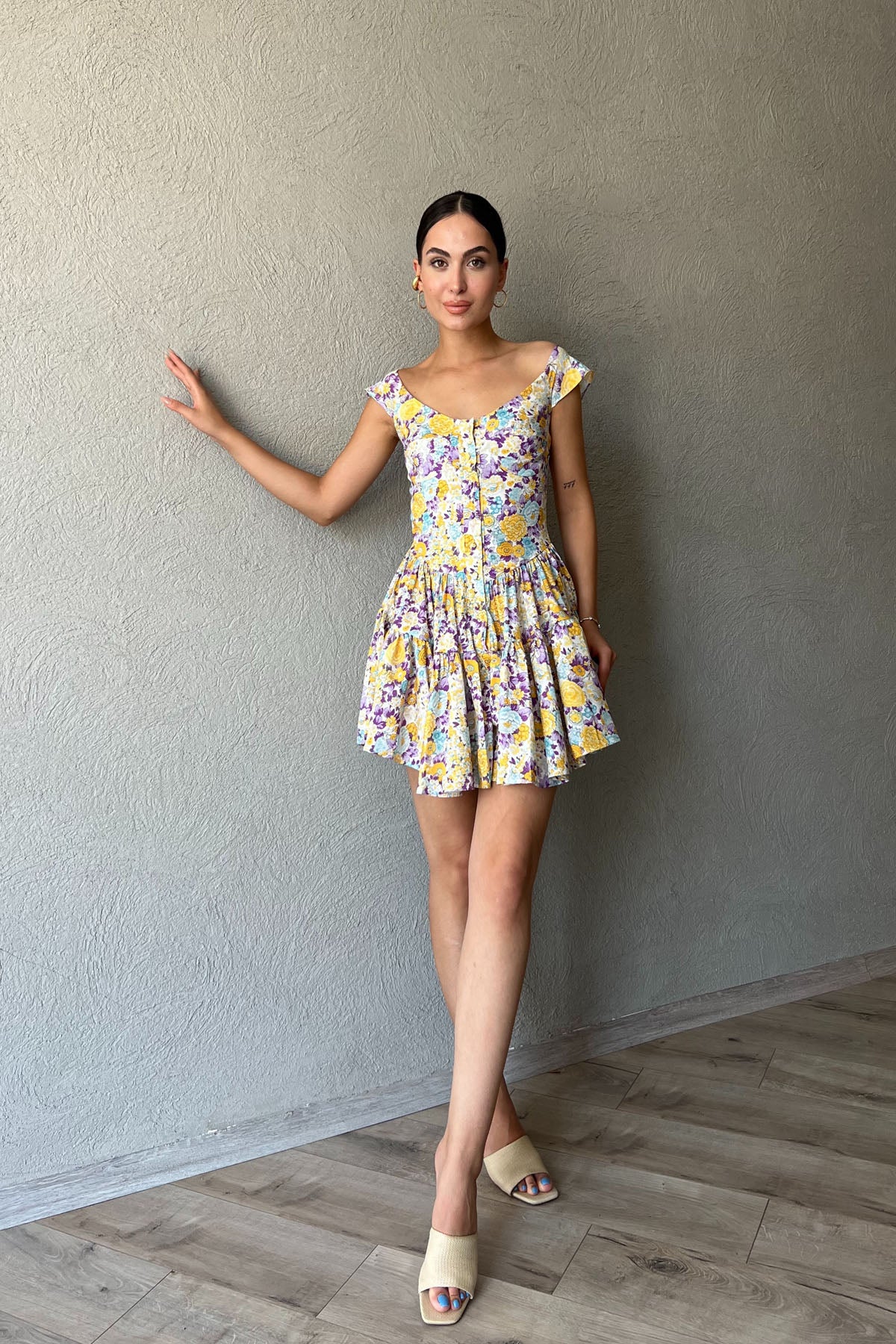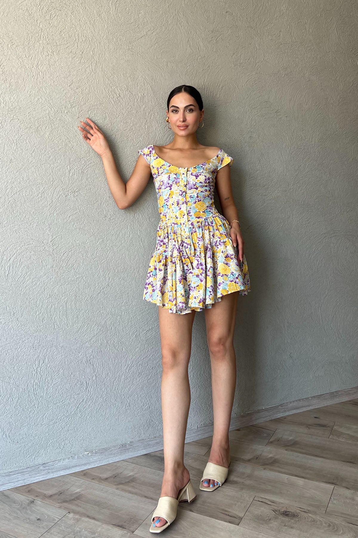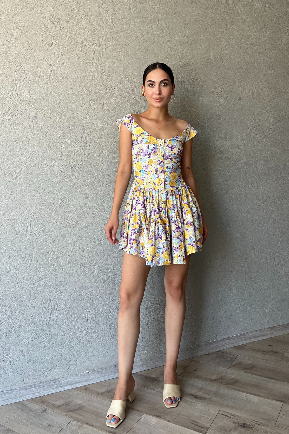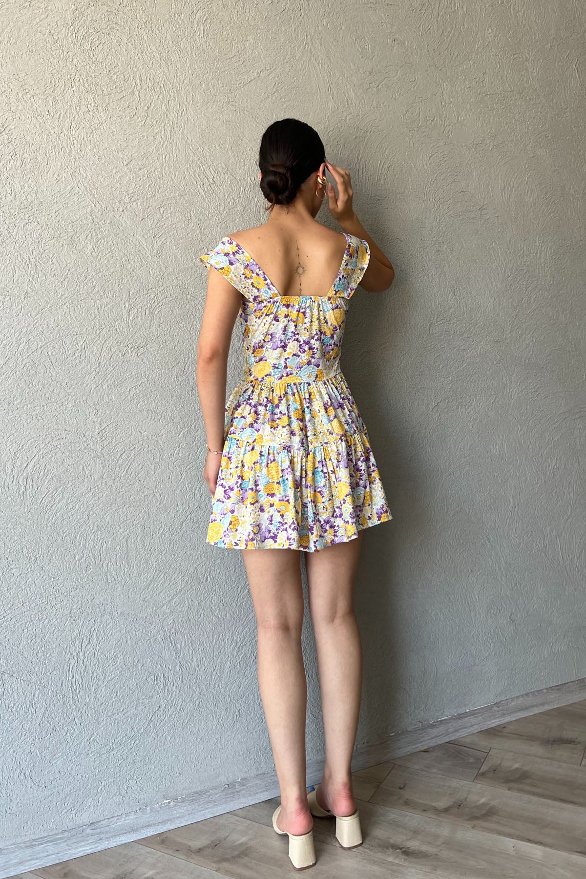Mor Çiçek Desenli Şortlu Elbise SY-2313-Mor