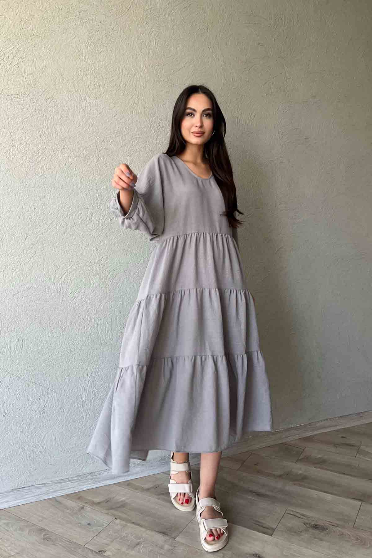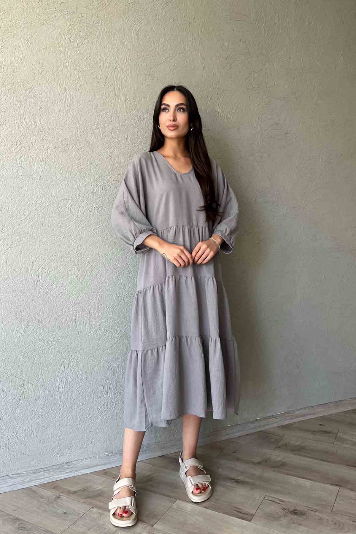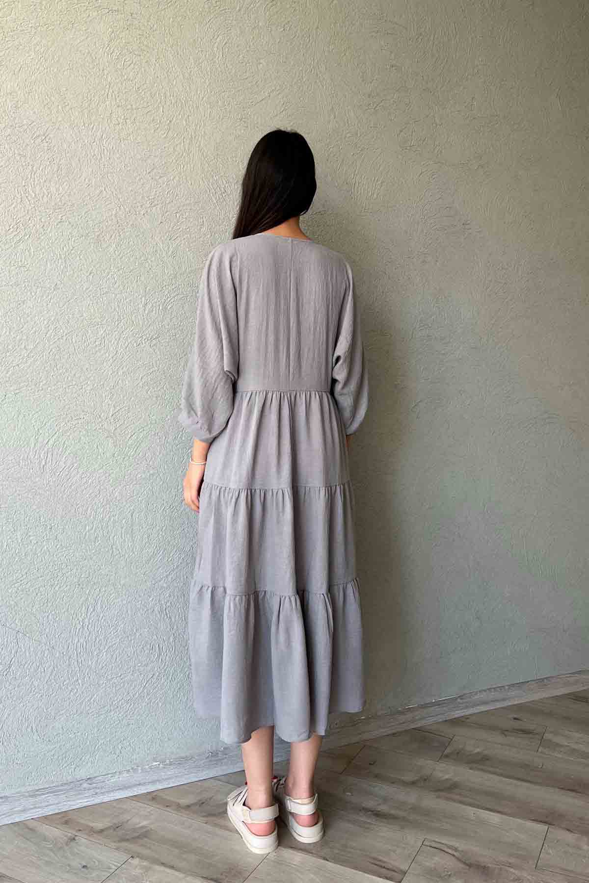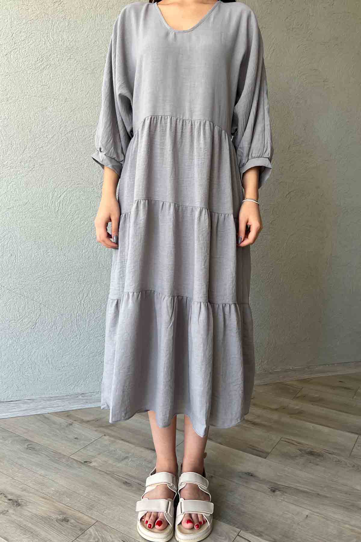 Müslin Kumaş V Yaka Rahat Kesim Gri Elbise SY-1939-Gri