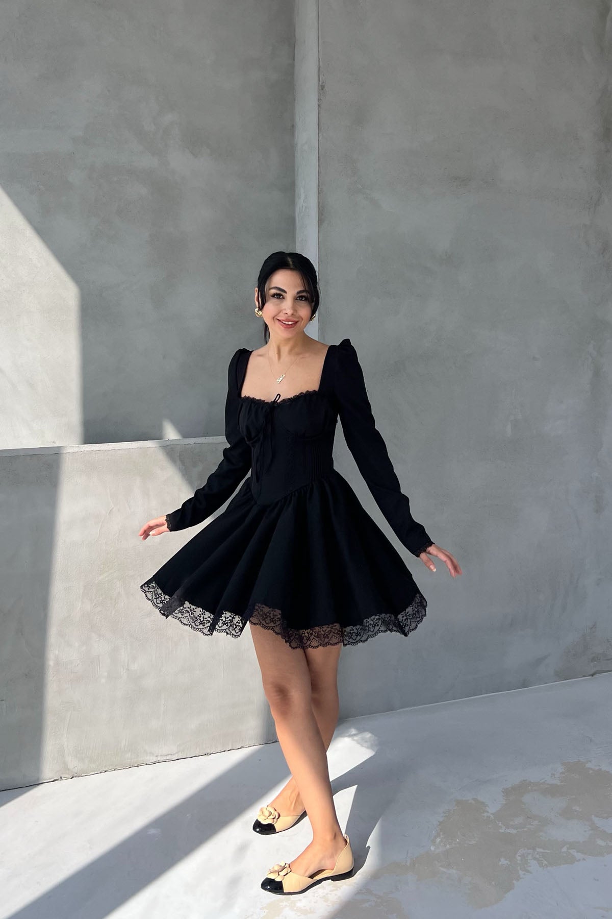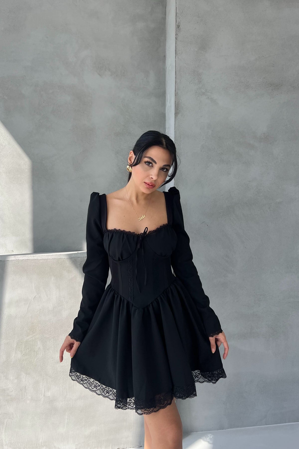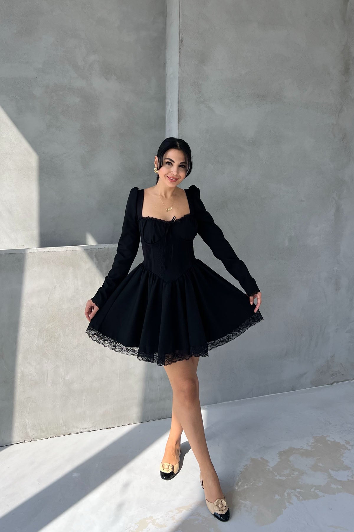 Siyah Dream Korse Detaylı Uzun Kollu Elbise SY-2620-Siyah