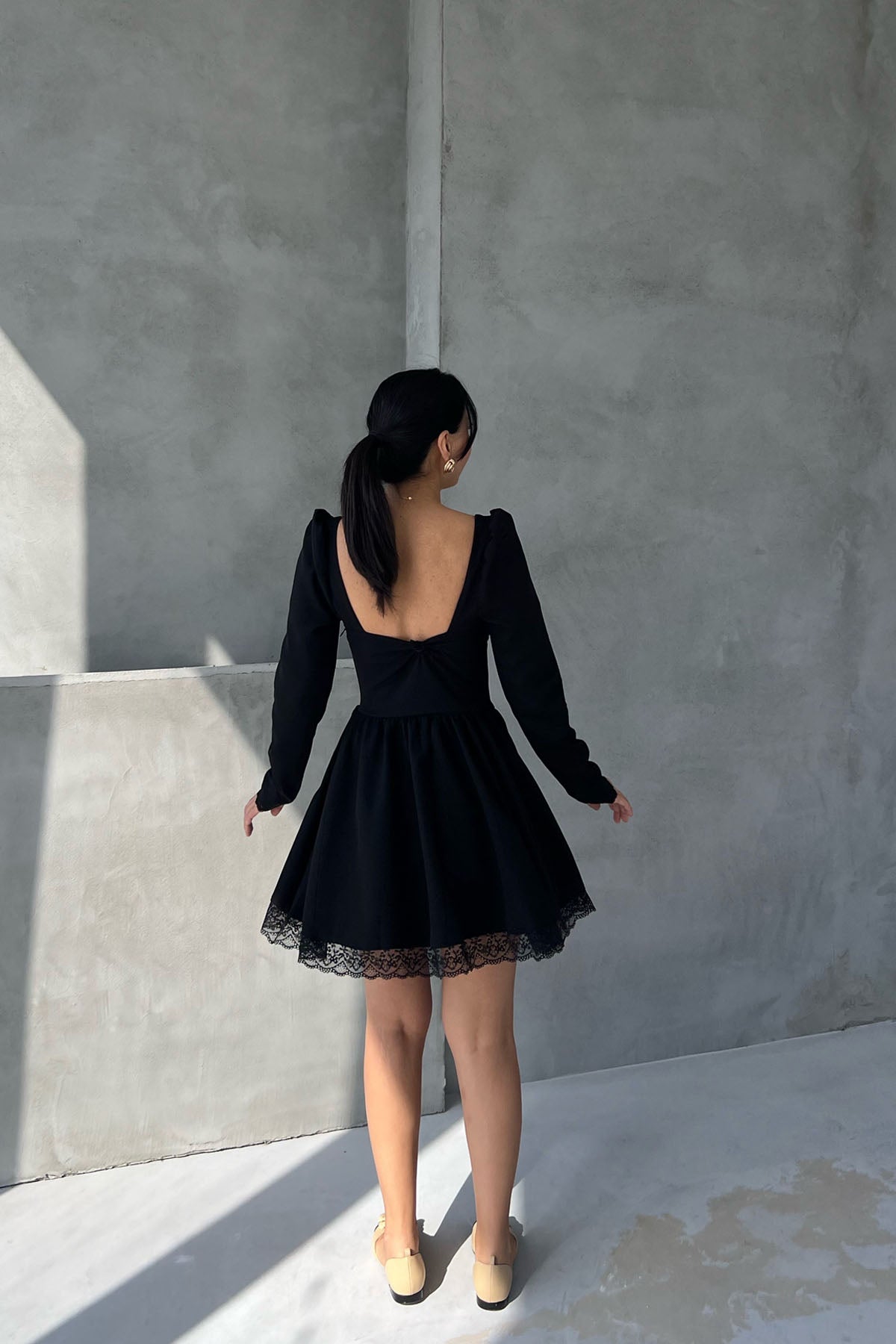 Ürün Detayları ;Açık yaka,dantel detaylı,uzun kollu,fermuarlı, kısa elbise.