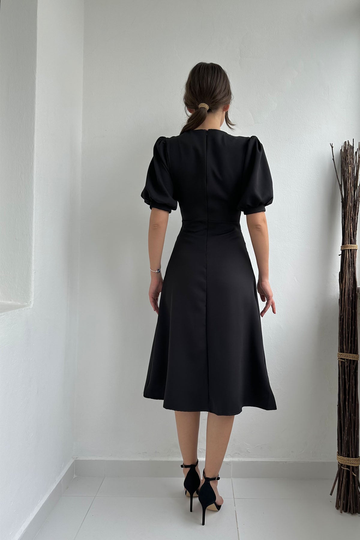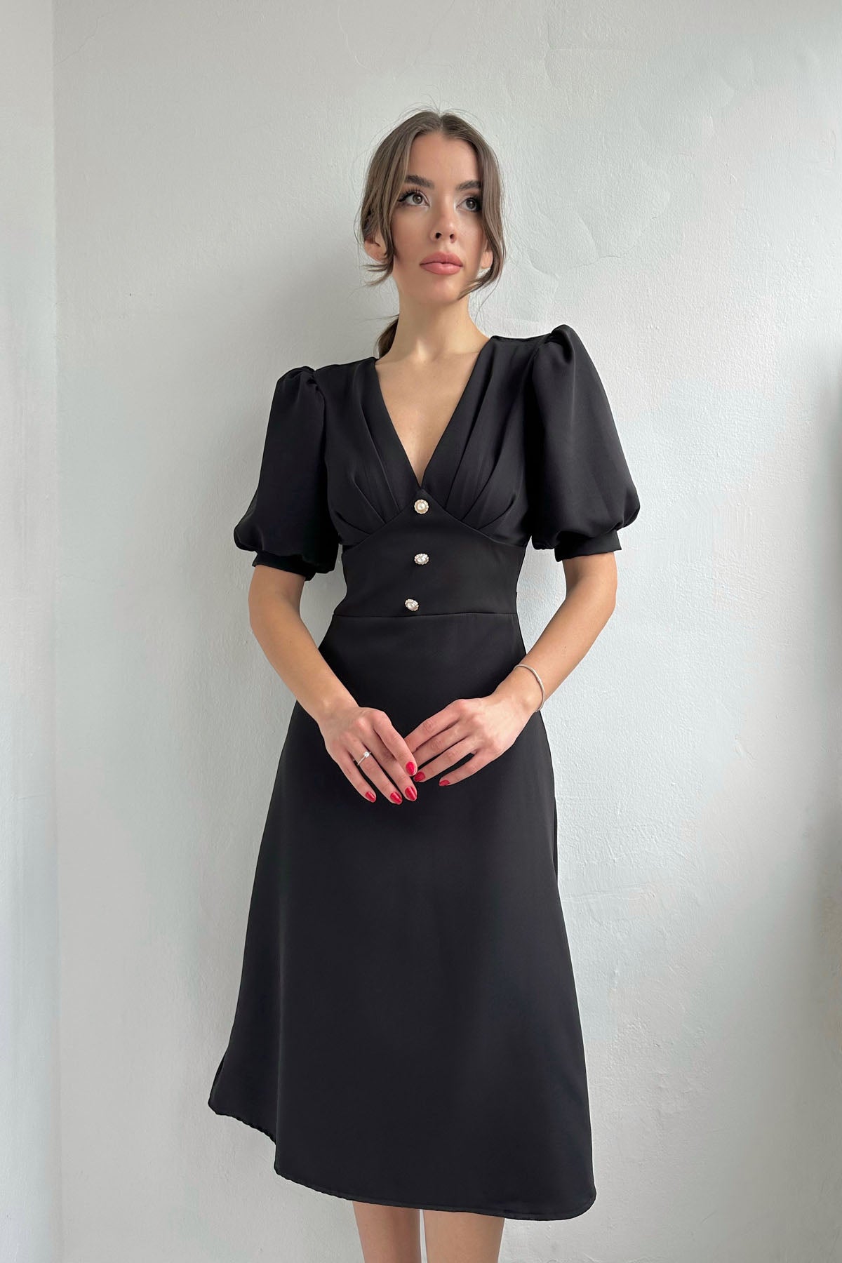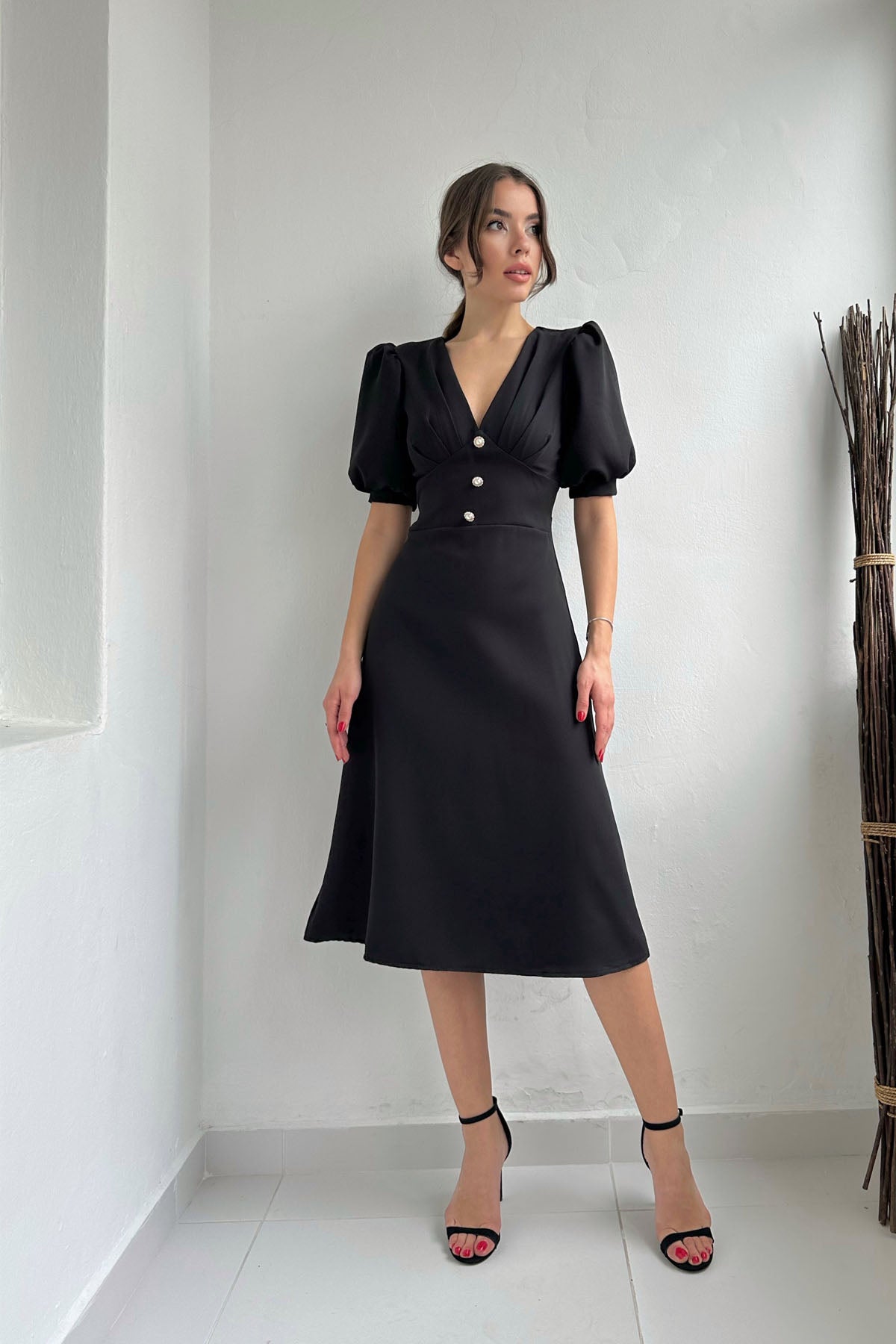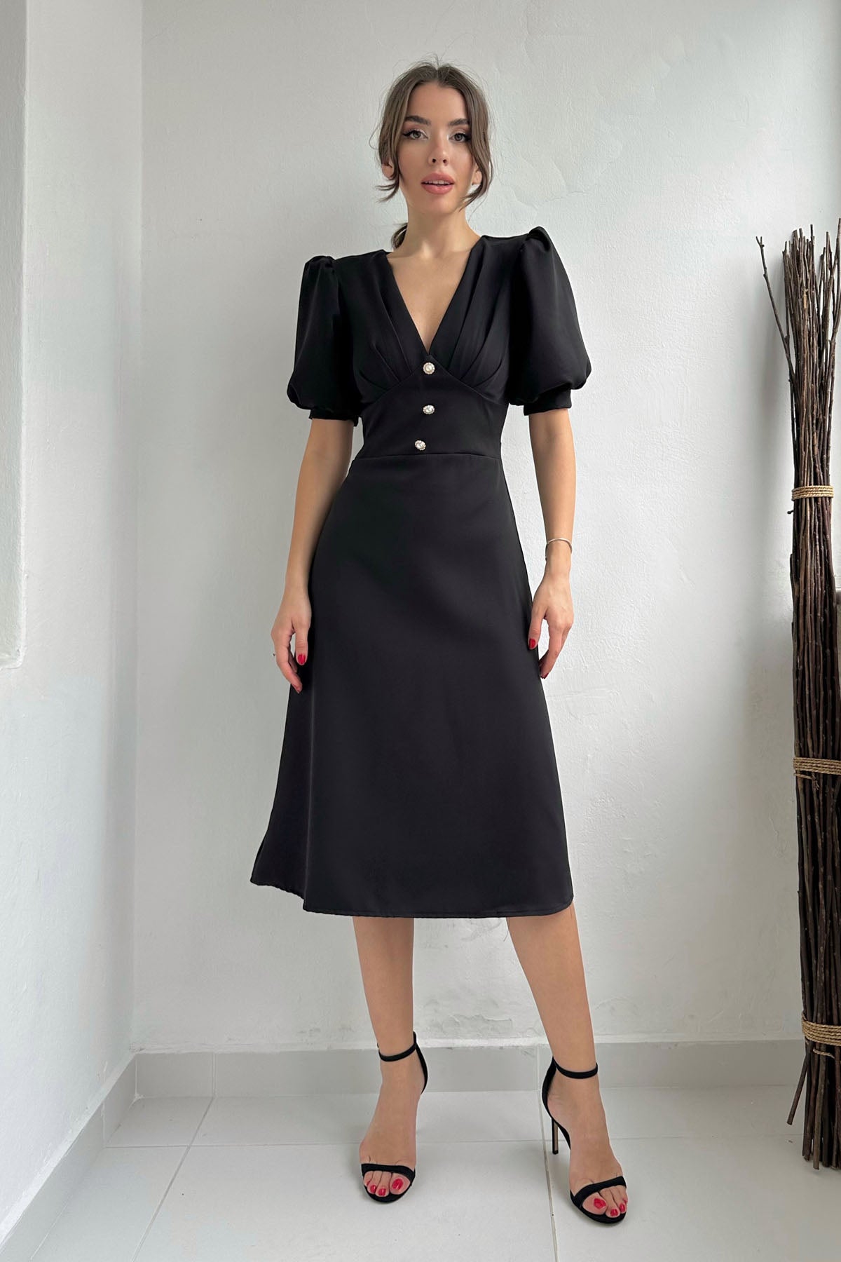 Siyah İnci Düğme Detay Elbise SY-0351-Siyah