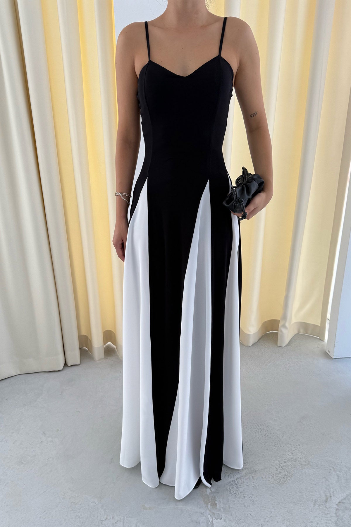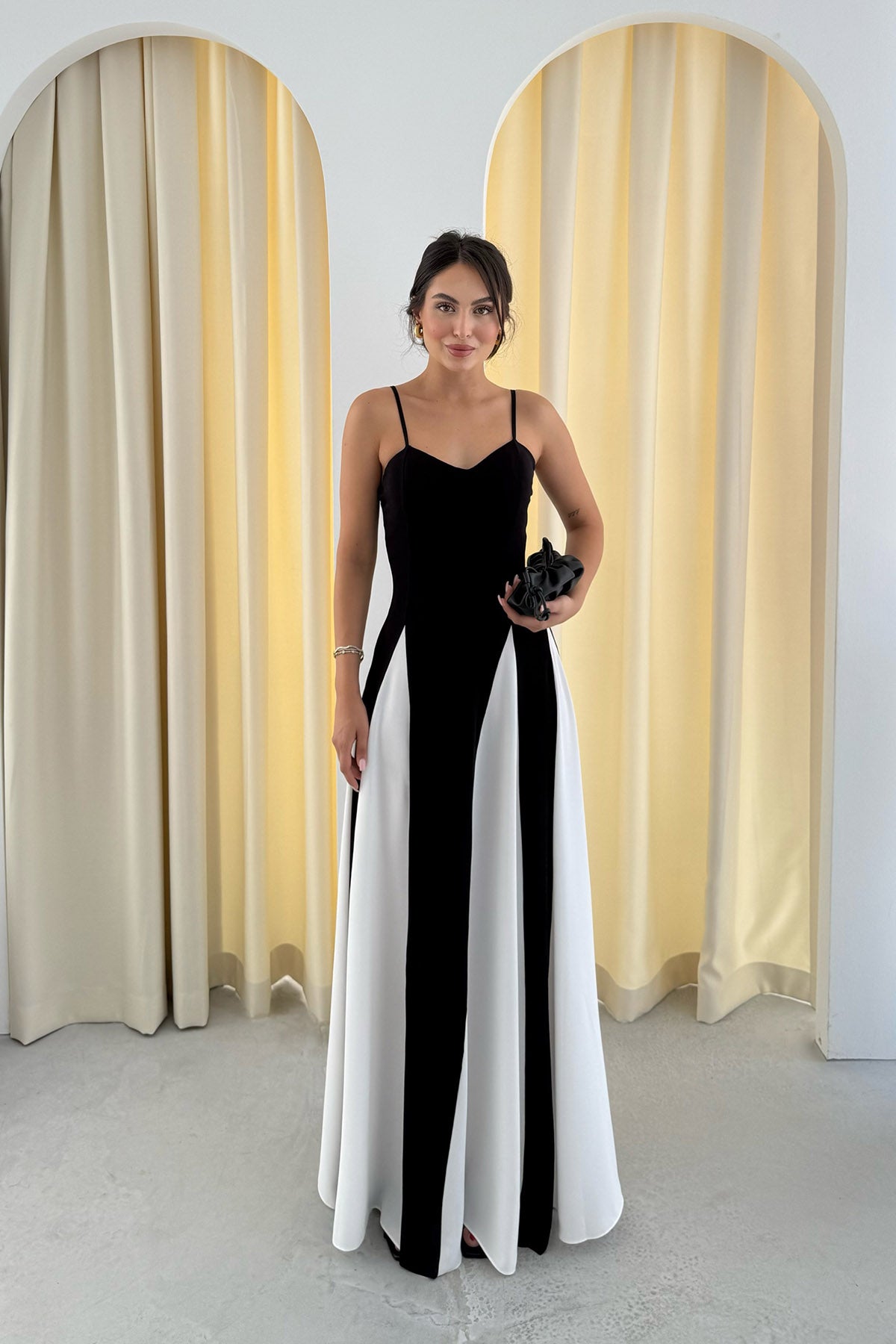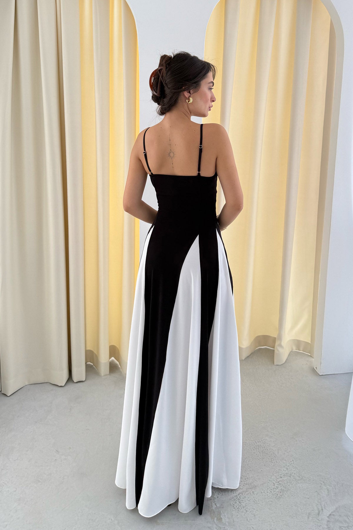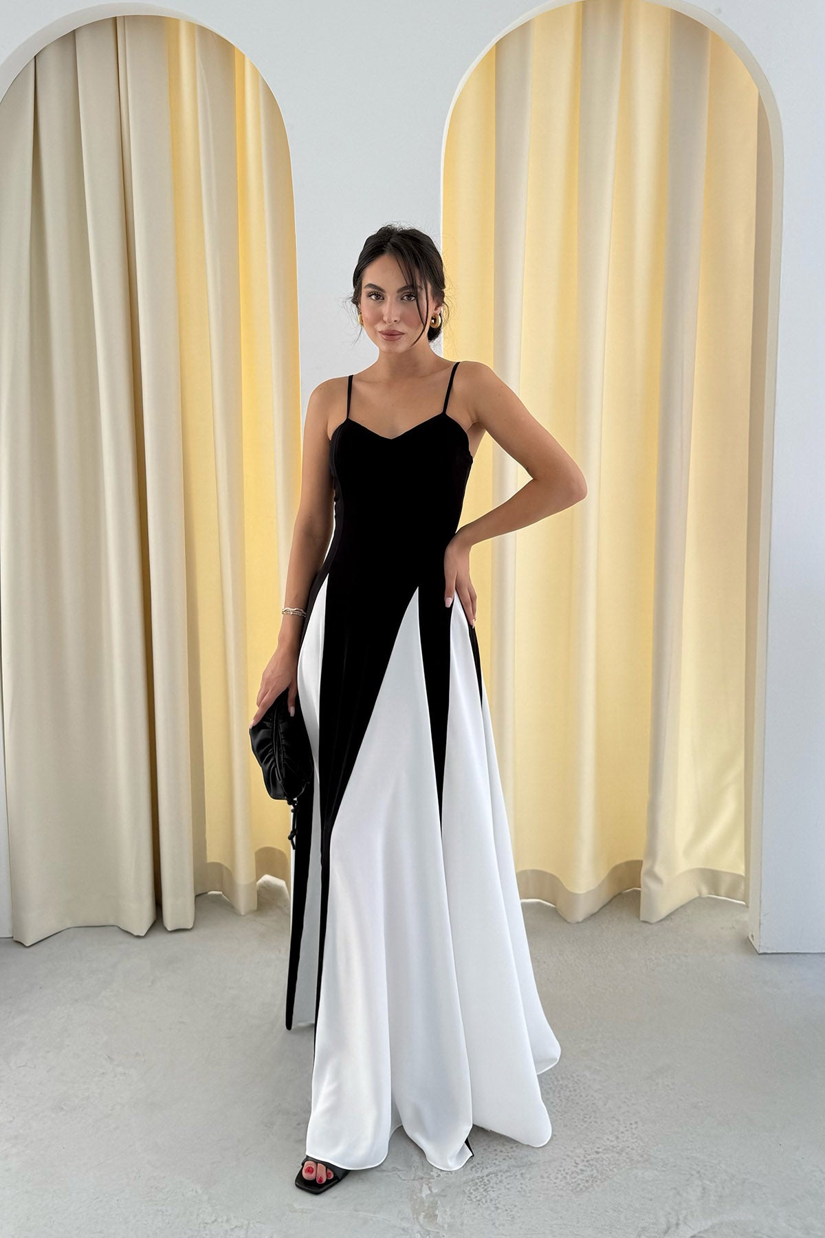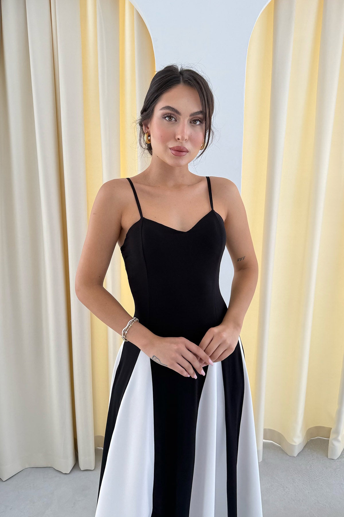 Siyah Kalp Yaka Blok Renkli Askılı Panarea Elbise SY-3299-Siyah