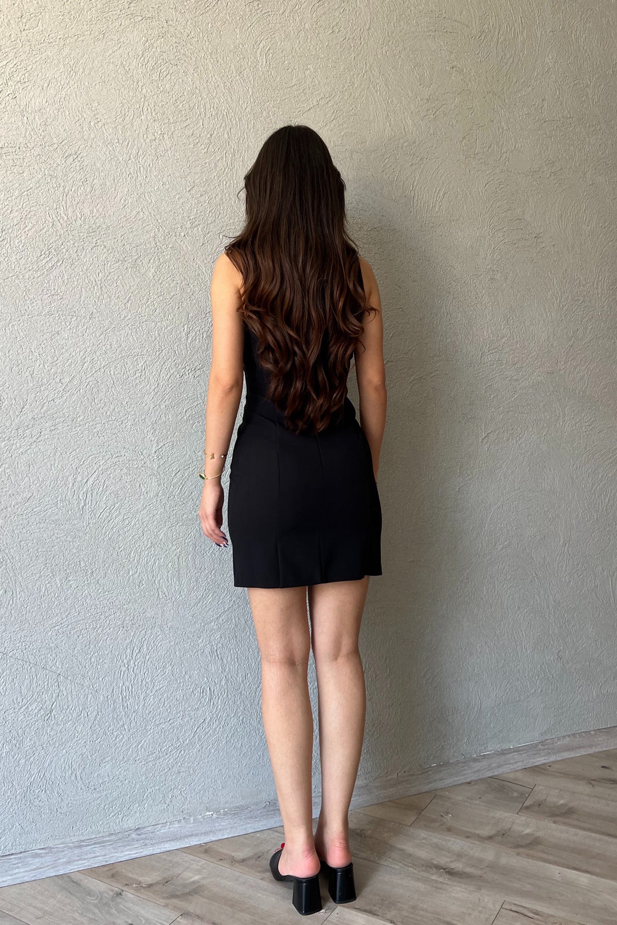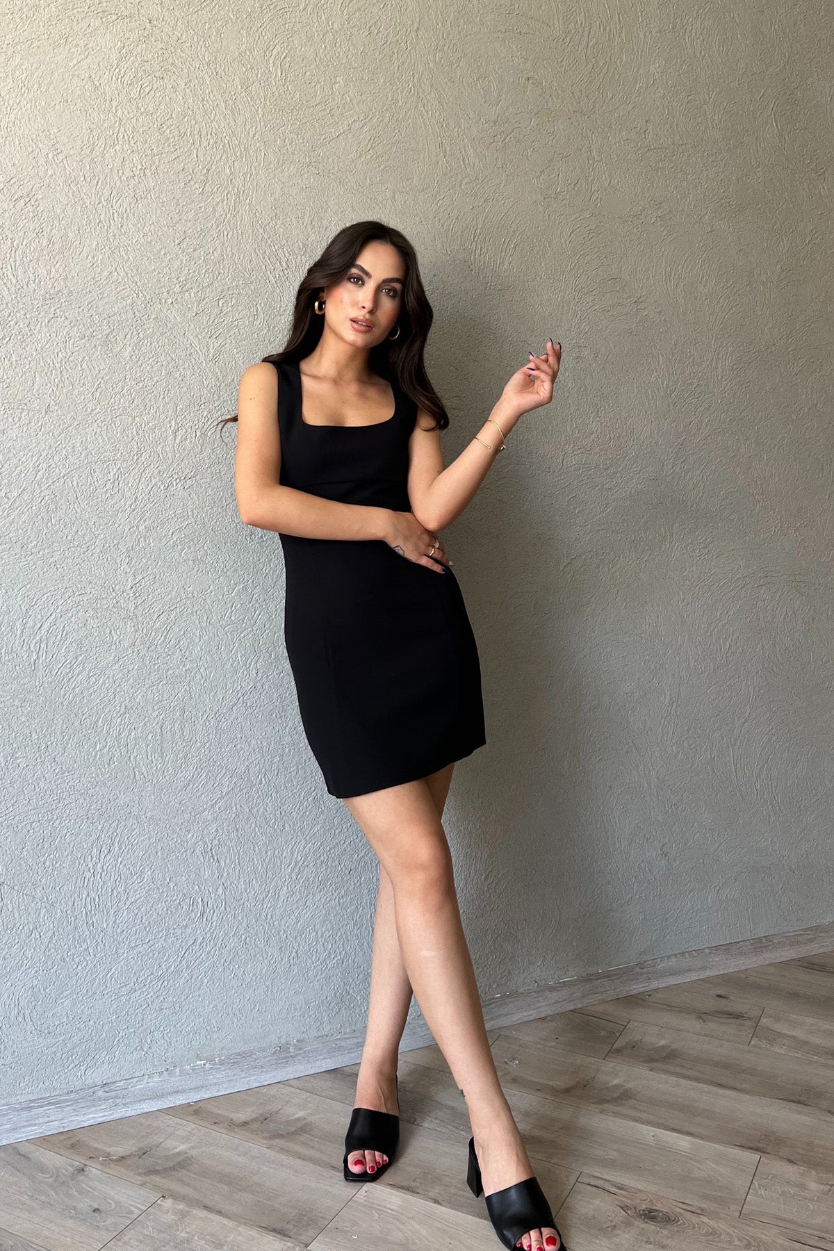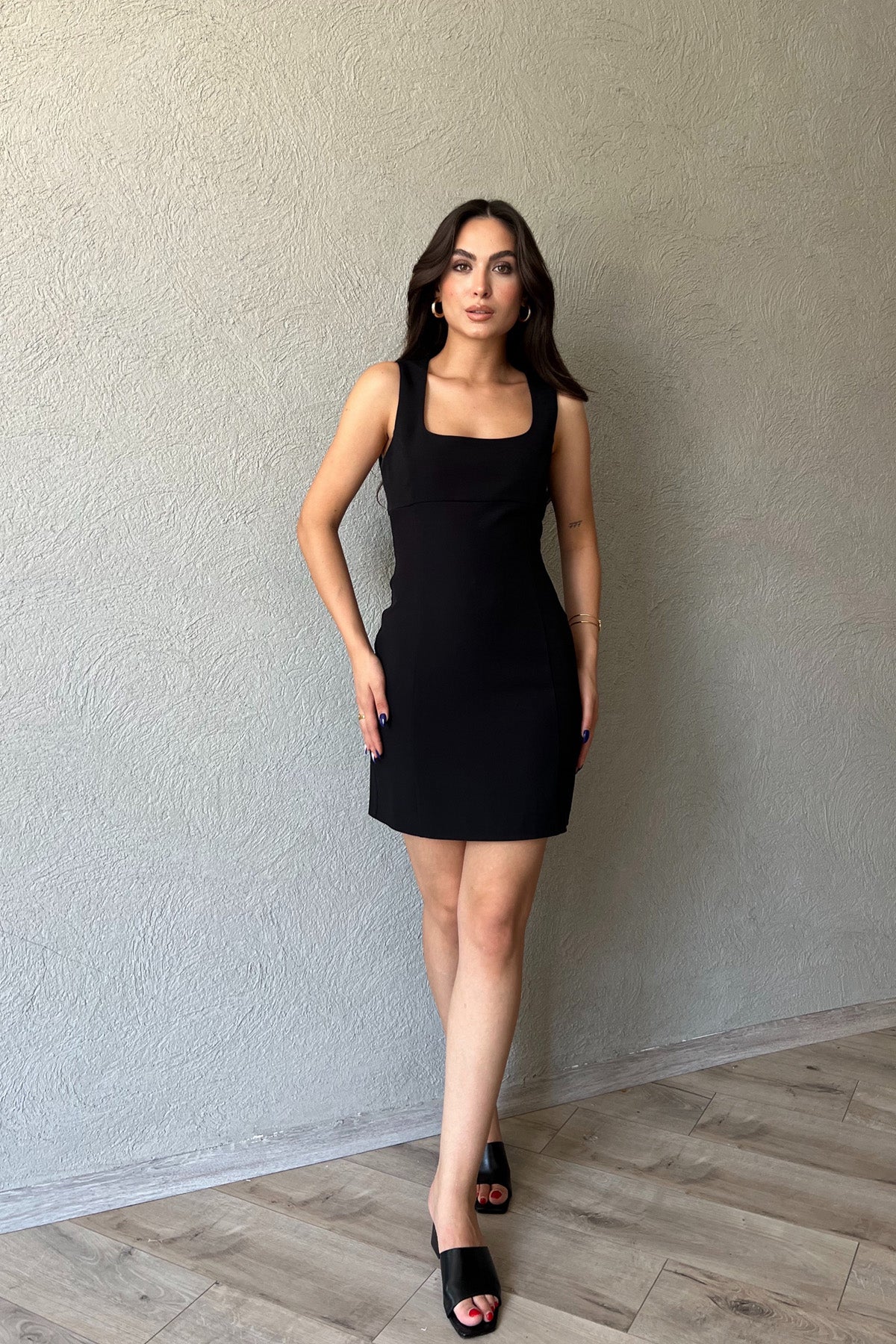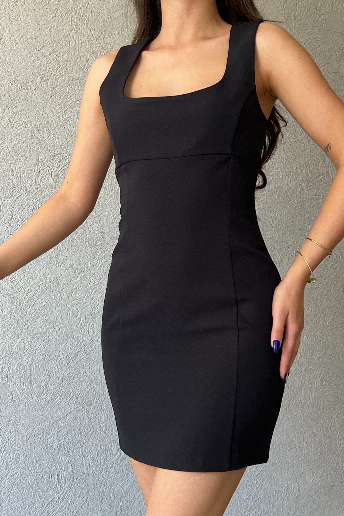 Siyah Kare Yaka Detaylı Elbise SY-2031-Siyah