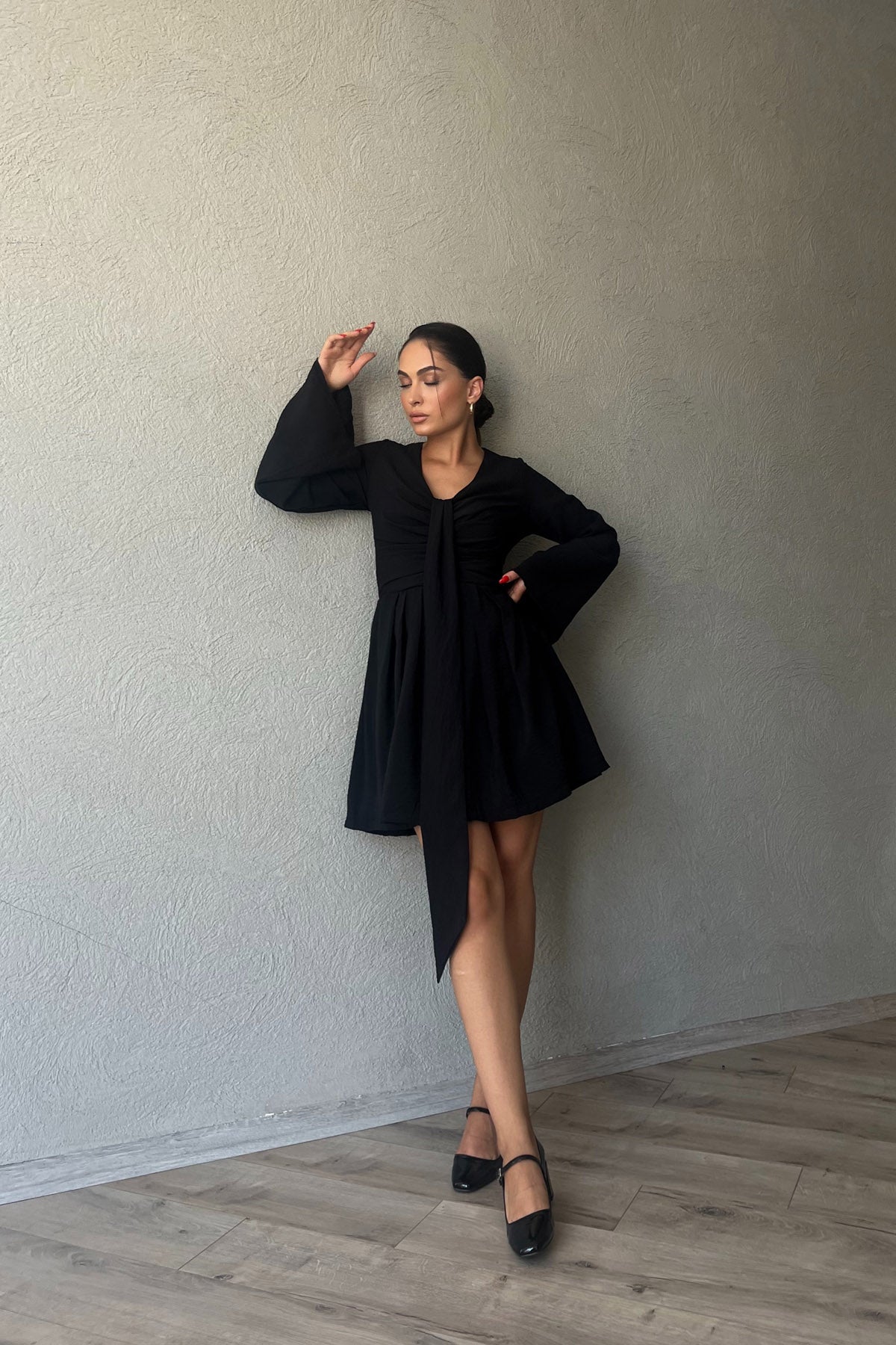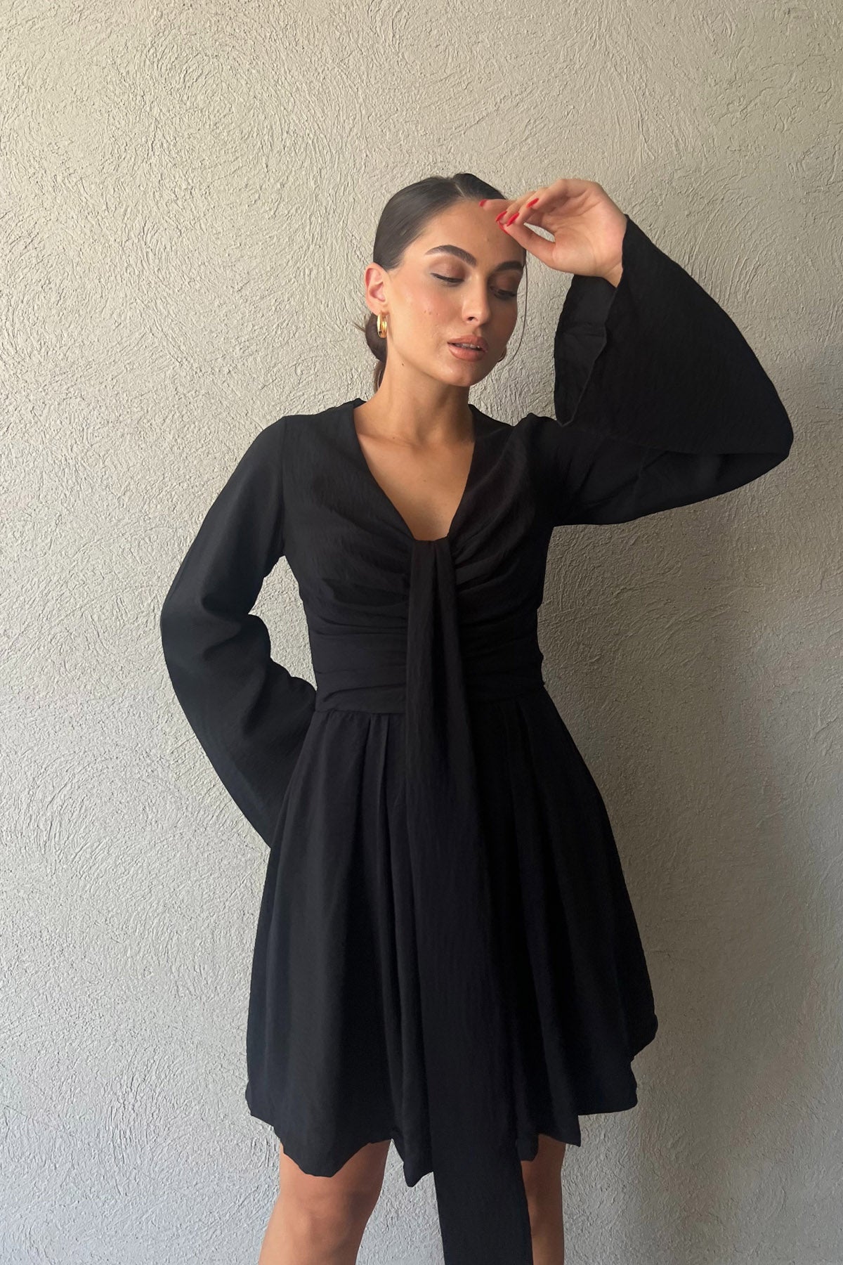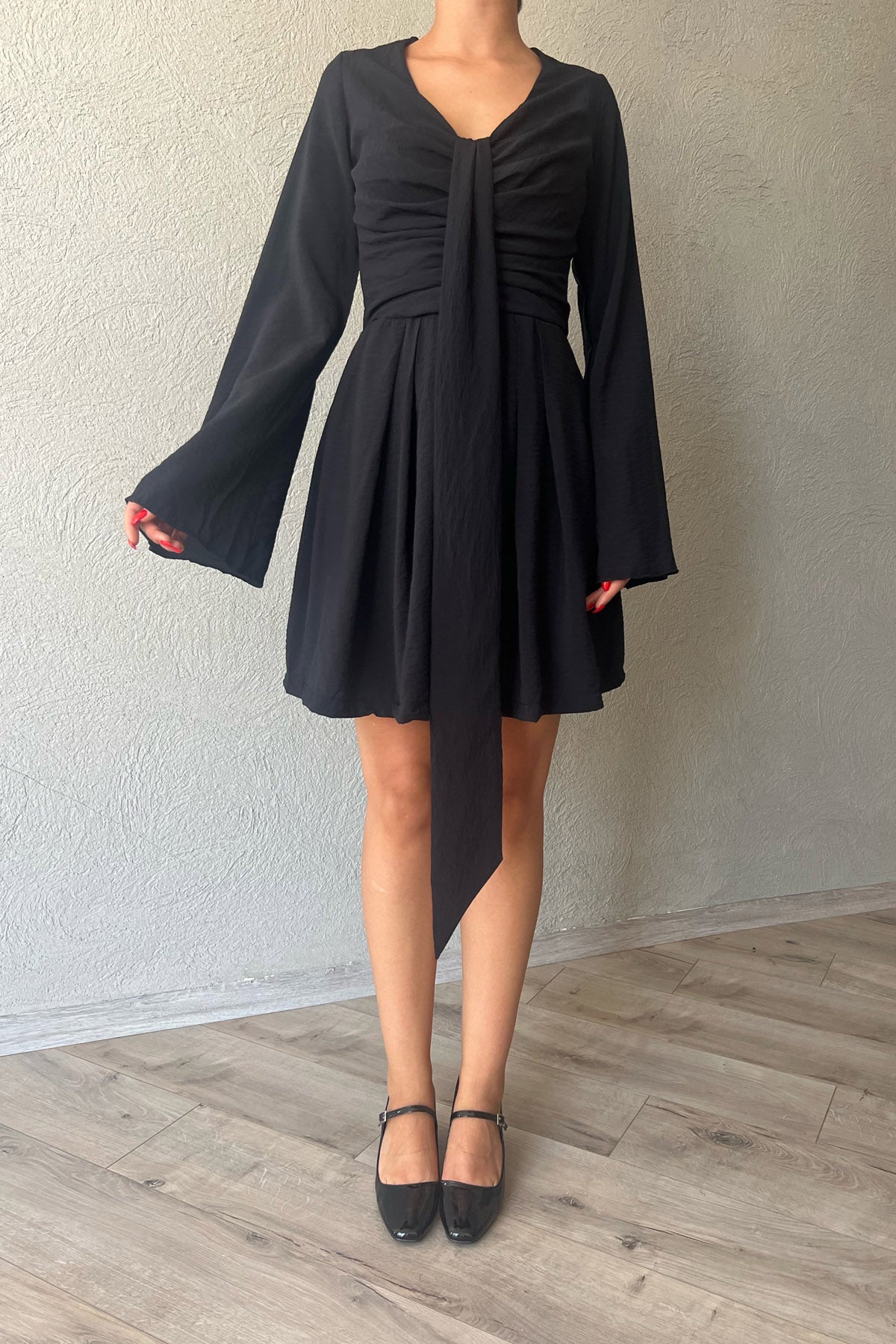 Ürün Özellikleri:Siyah Mallorca Flare KolluYakası Detaylı Elbise