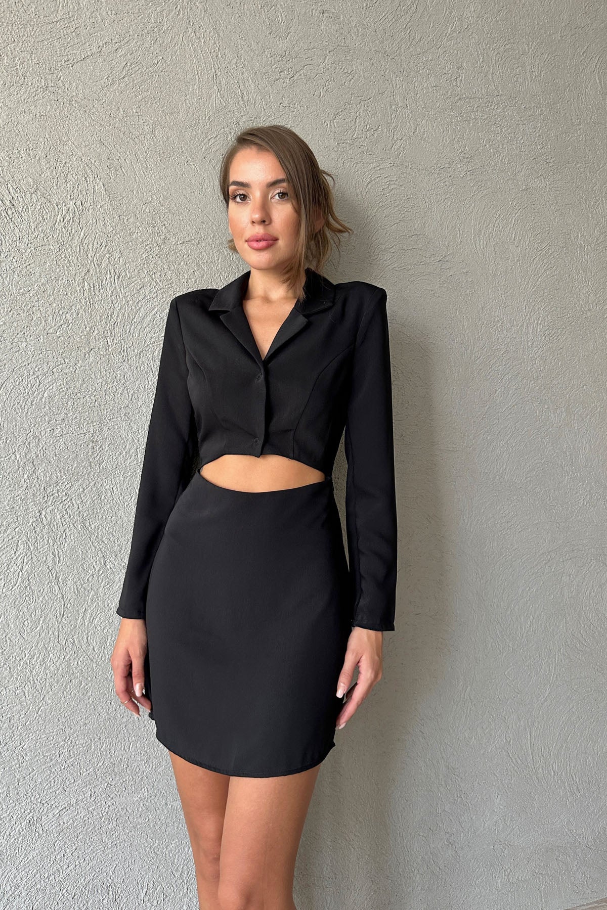 Siyah Pencere Detaylı Mini Elbise SY-1085-Siyah