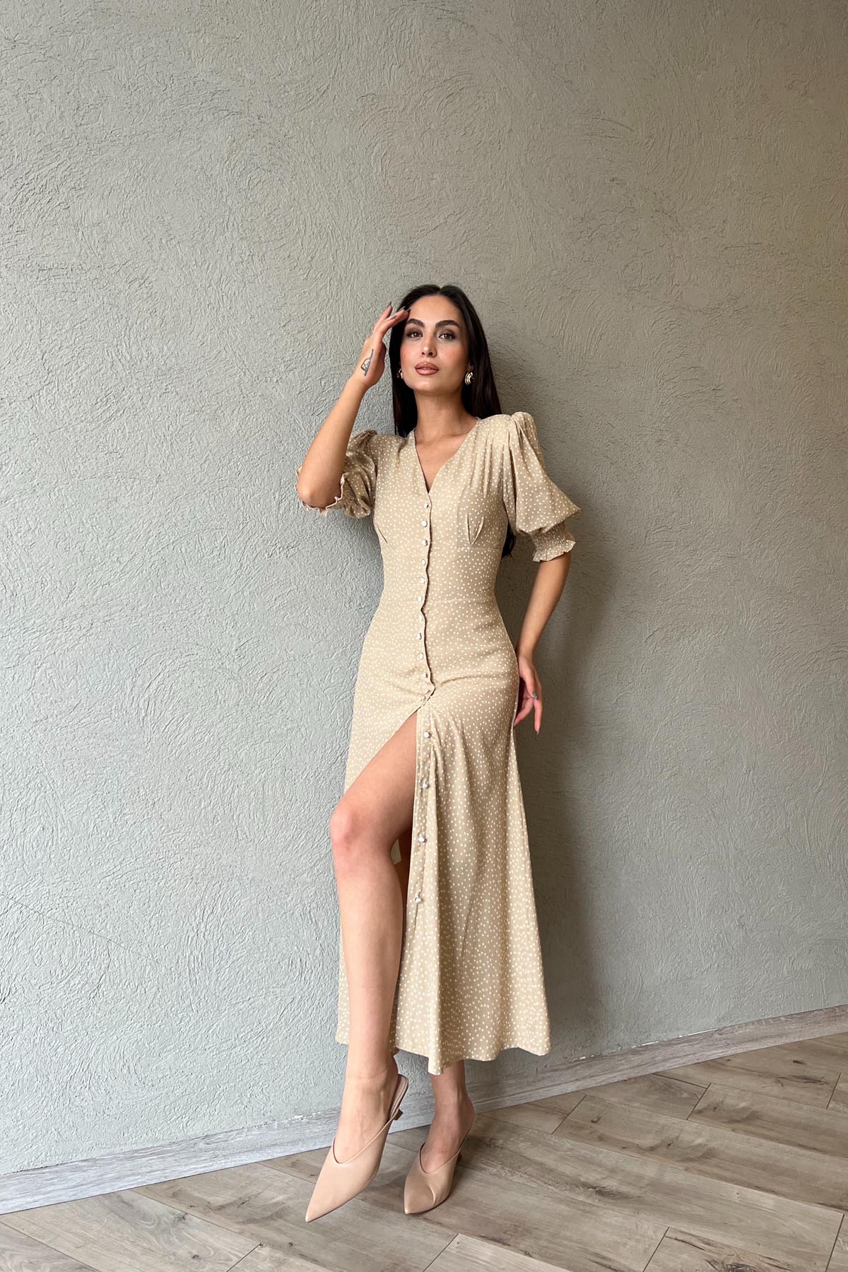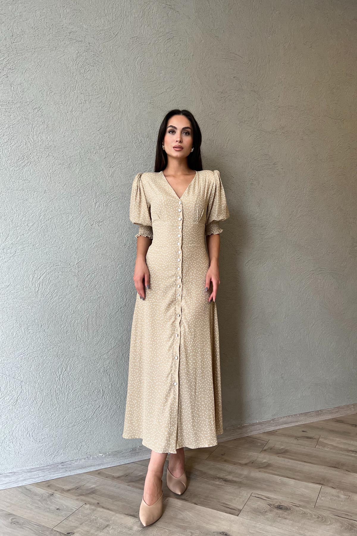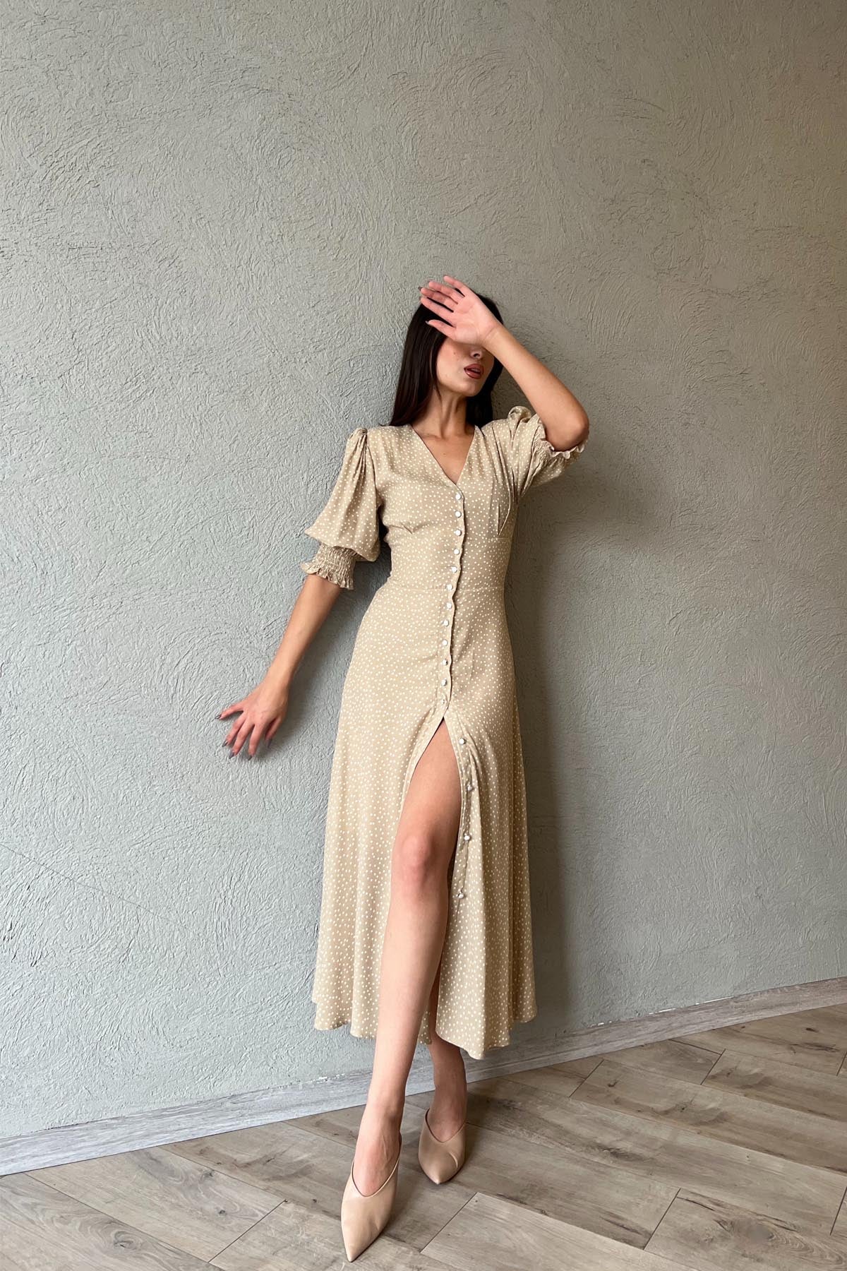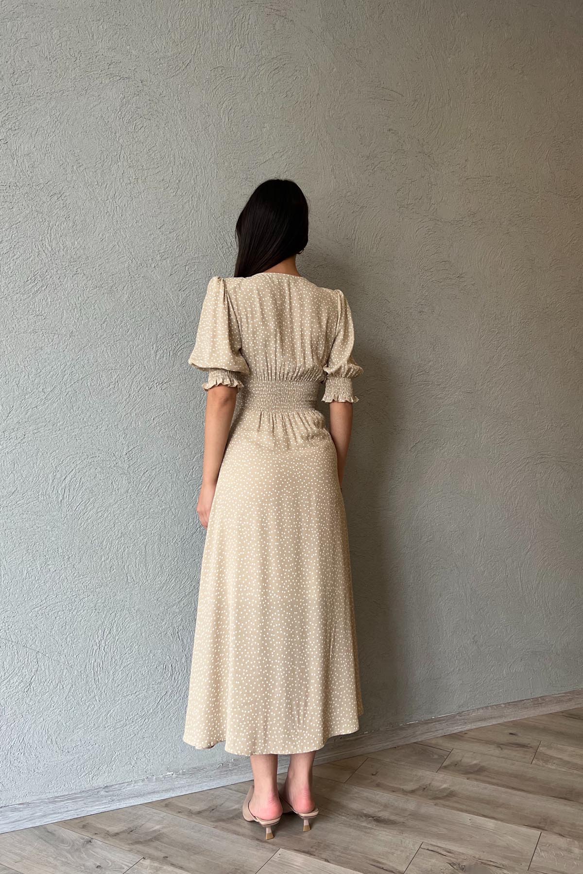 Vizon Puantiyeli Arka Bel ve Kol Ucu Gipeli Elbise SY-1727-Vizon