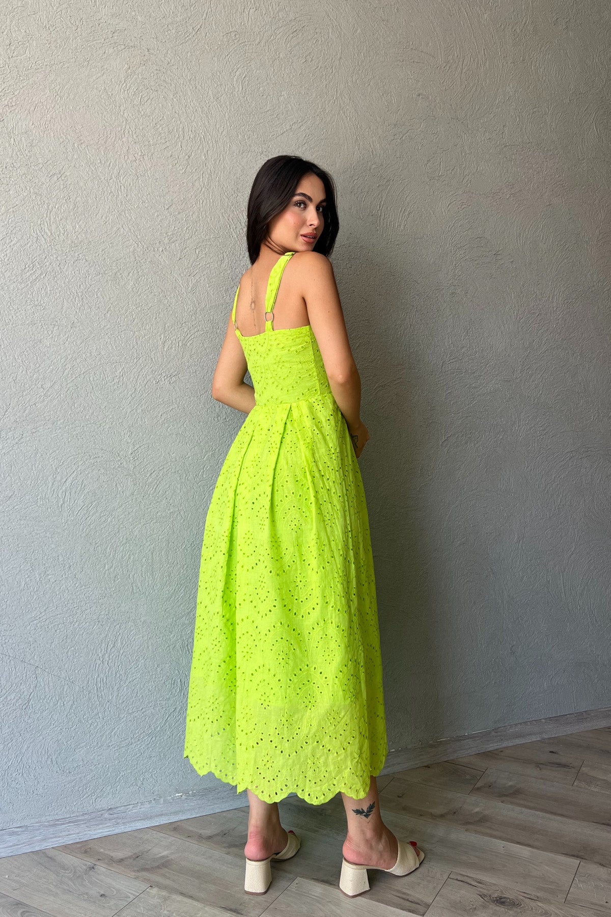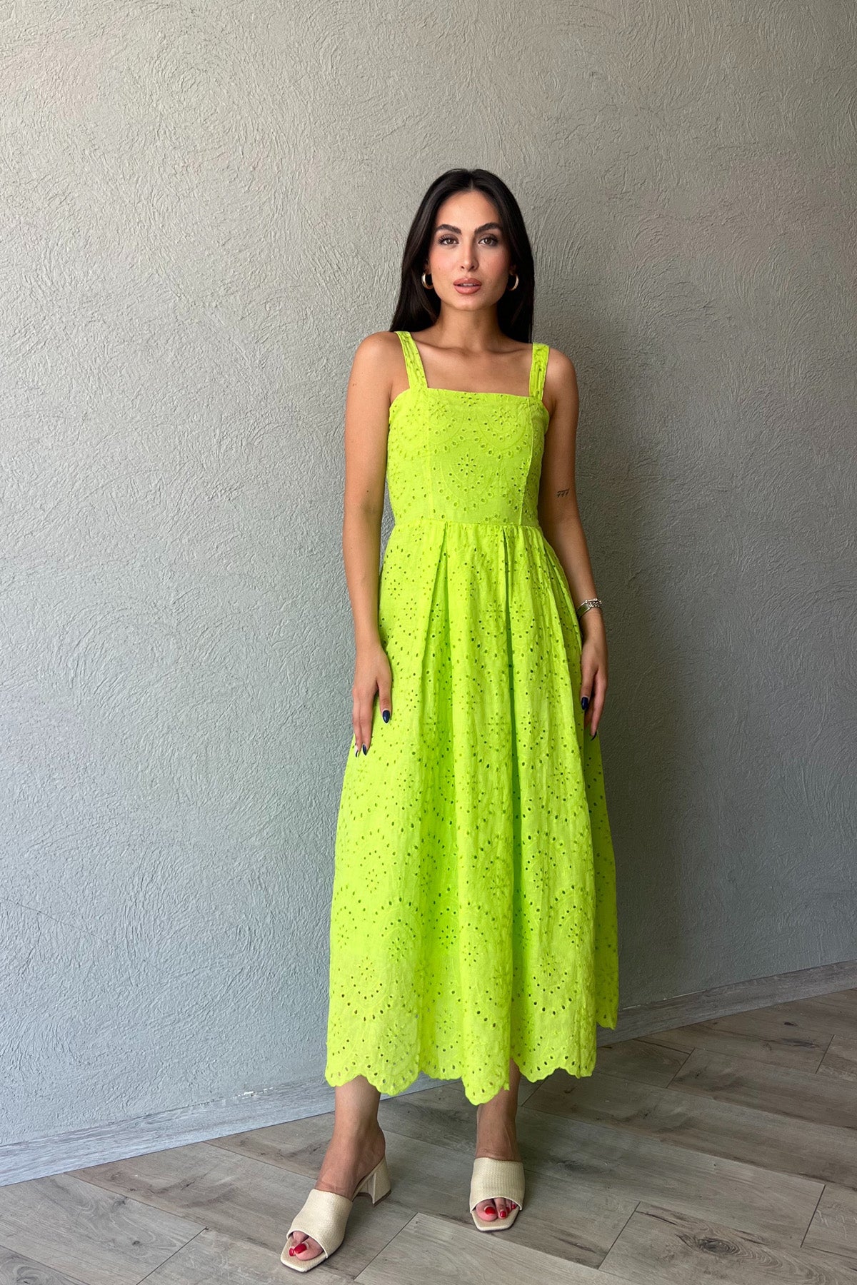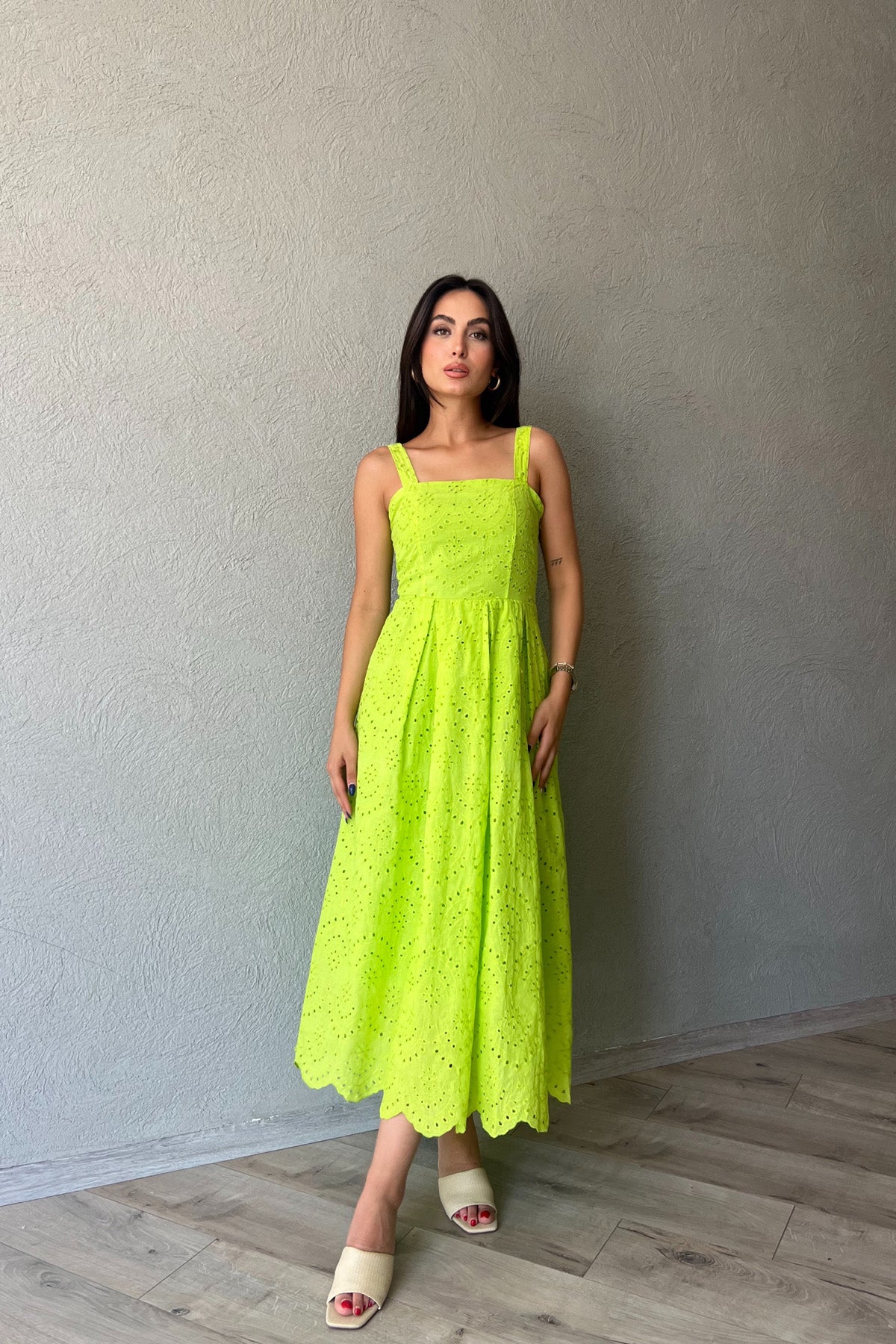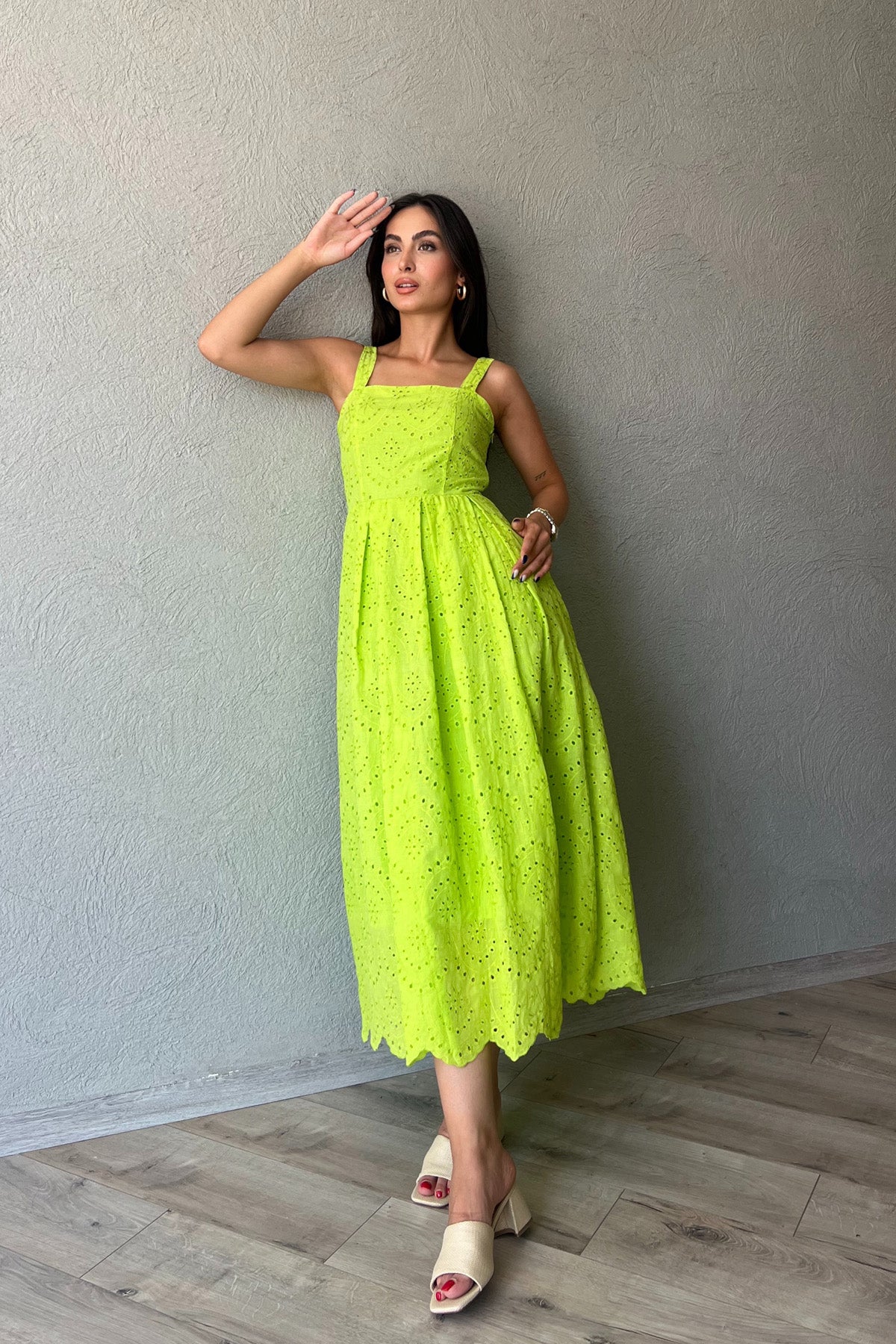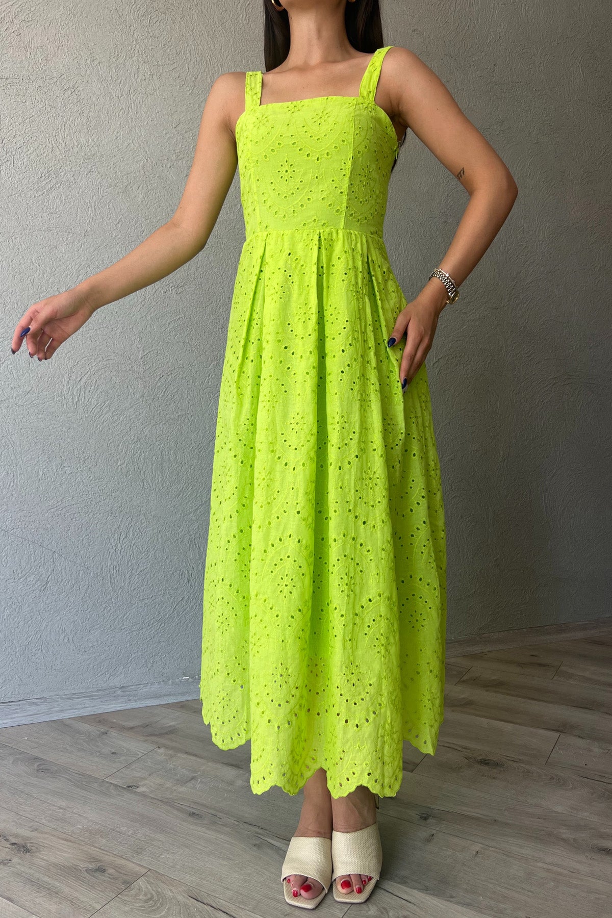 Yağ Yeşil Askı Aparat Detaylı Brode Elbise SY-2036-Yağ Yeşil