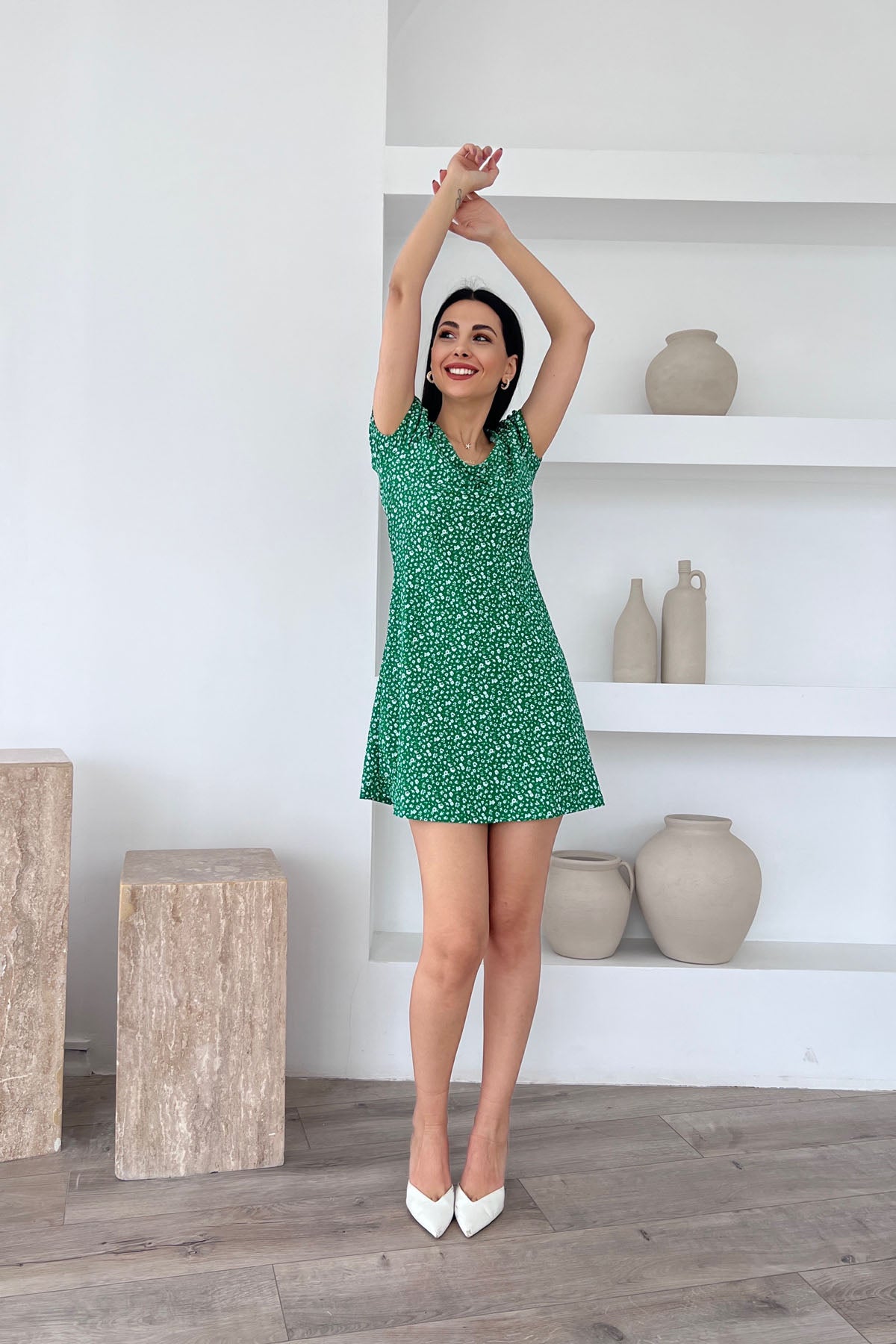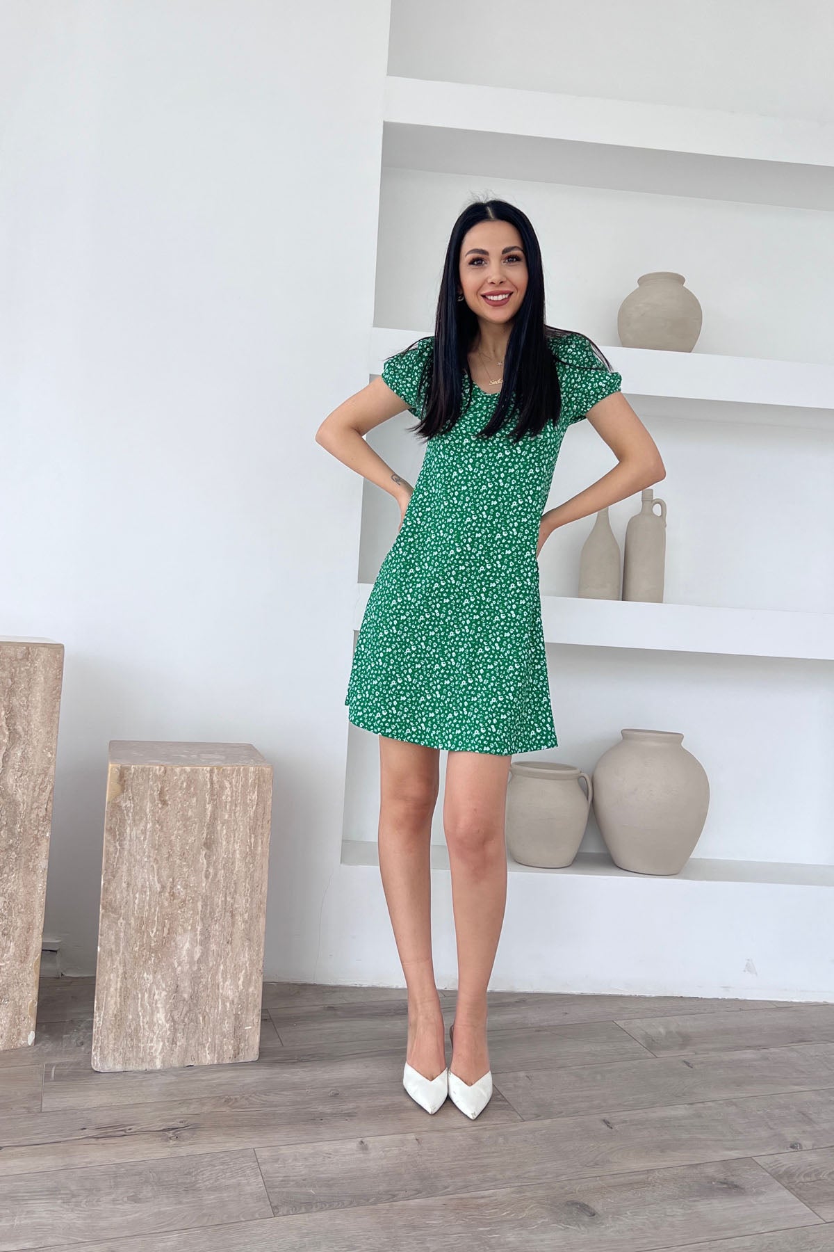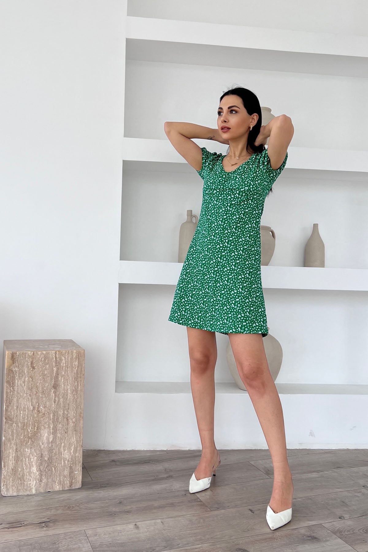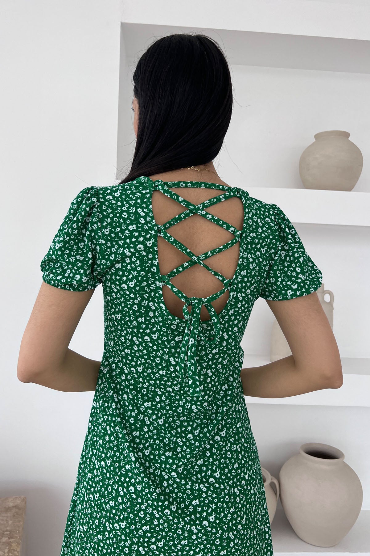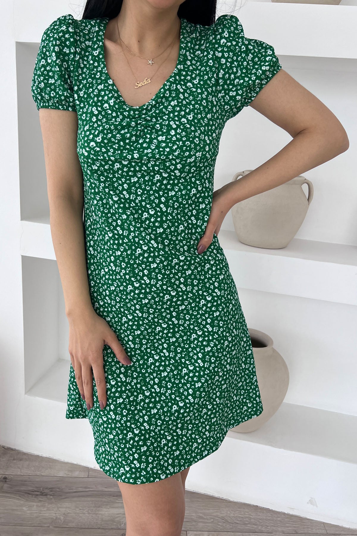 Yeşil Bağlama Detay Çiçekli Çıtır Elbise SY-0489-Yeşil