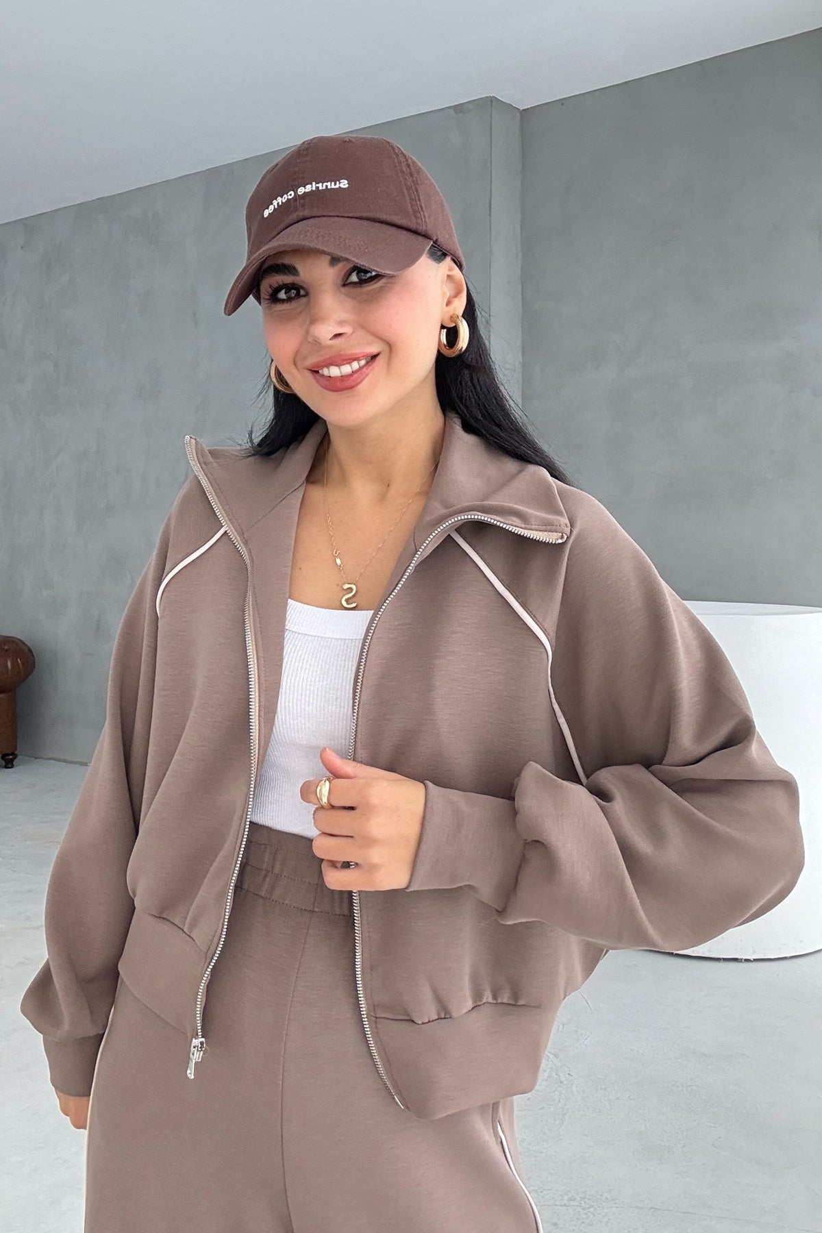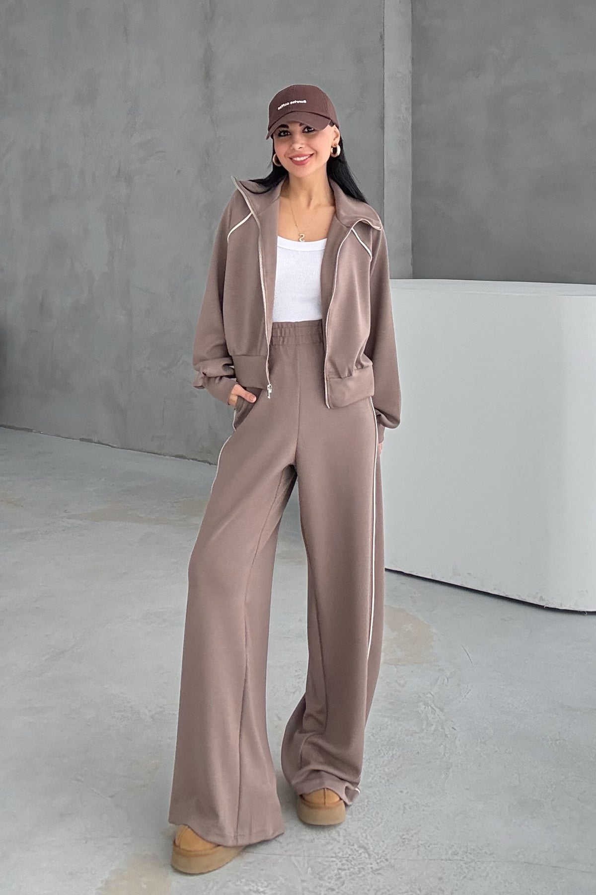 Ürün Detayları Bol Paça Fermuarlı Modal Eşofman Takım- Vizon