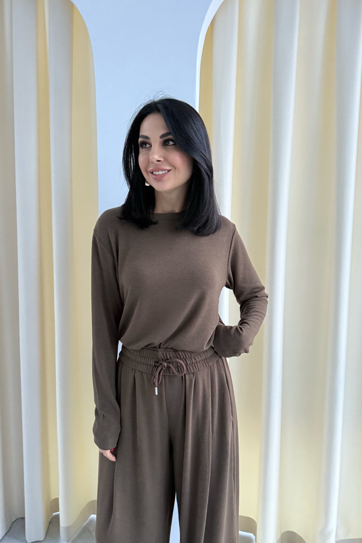 Kahverengi Rahat Kesim Pile Detaylı Eşofman Alt Ve üst Takım SY-3435-Kahverengi