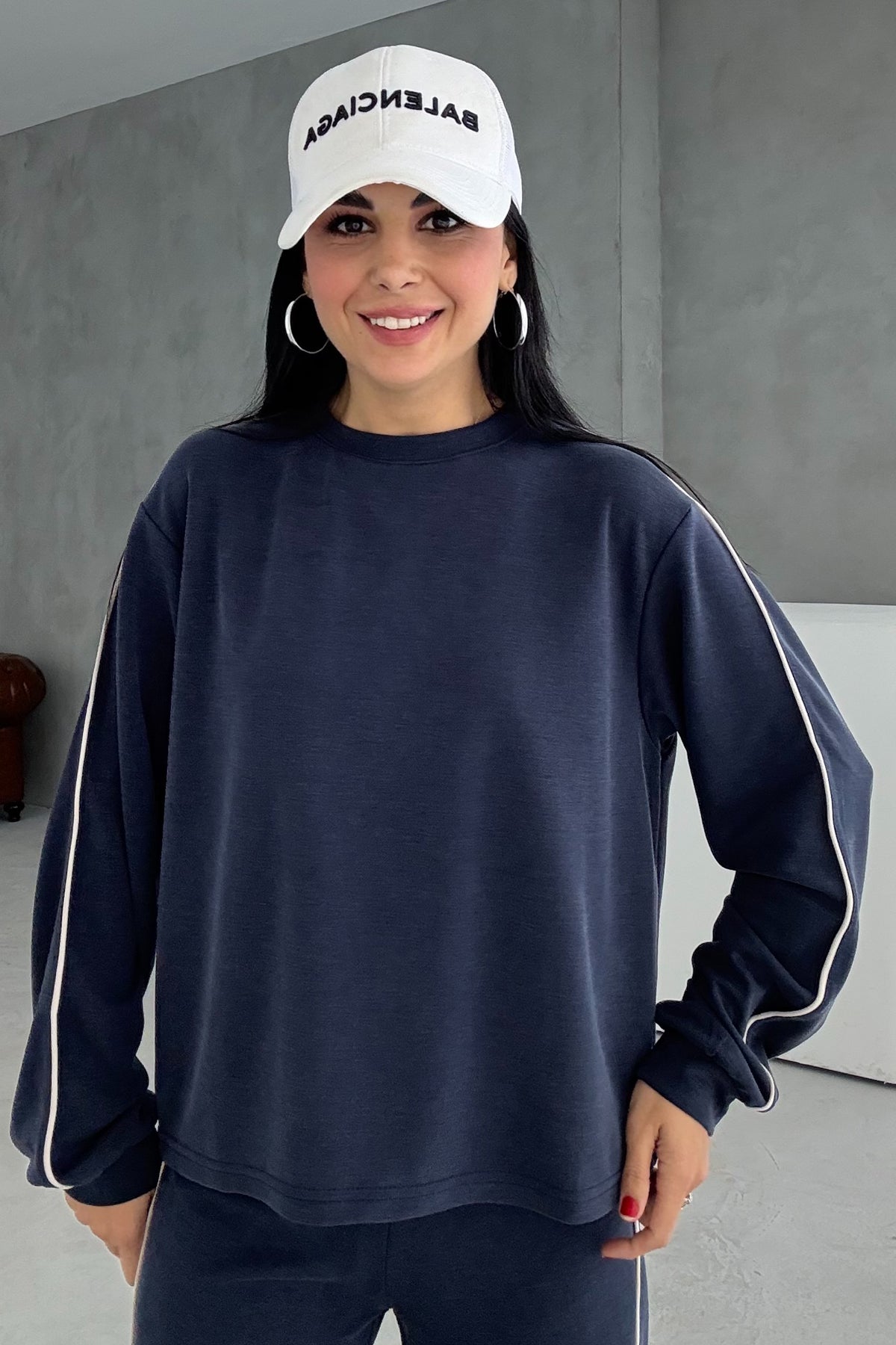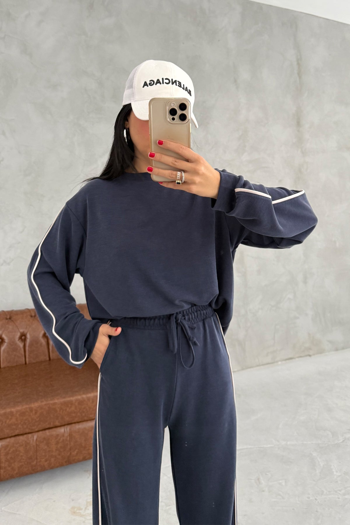 Orjinal Marka Bisiklet Yaka Çizgili Eşofman Takımı - Koyu Mavi SY-3421-Koyu Mavi