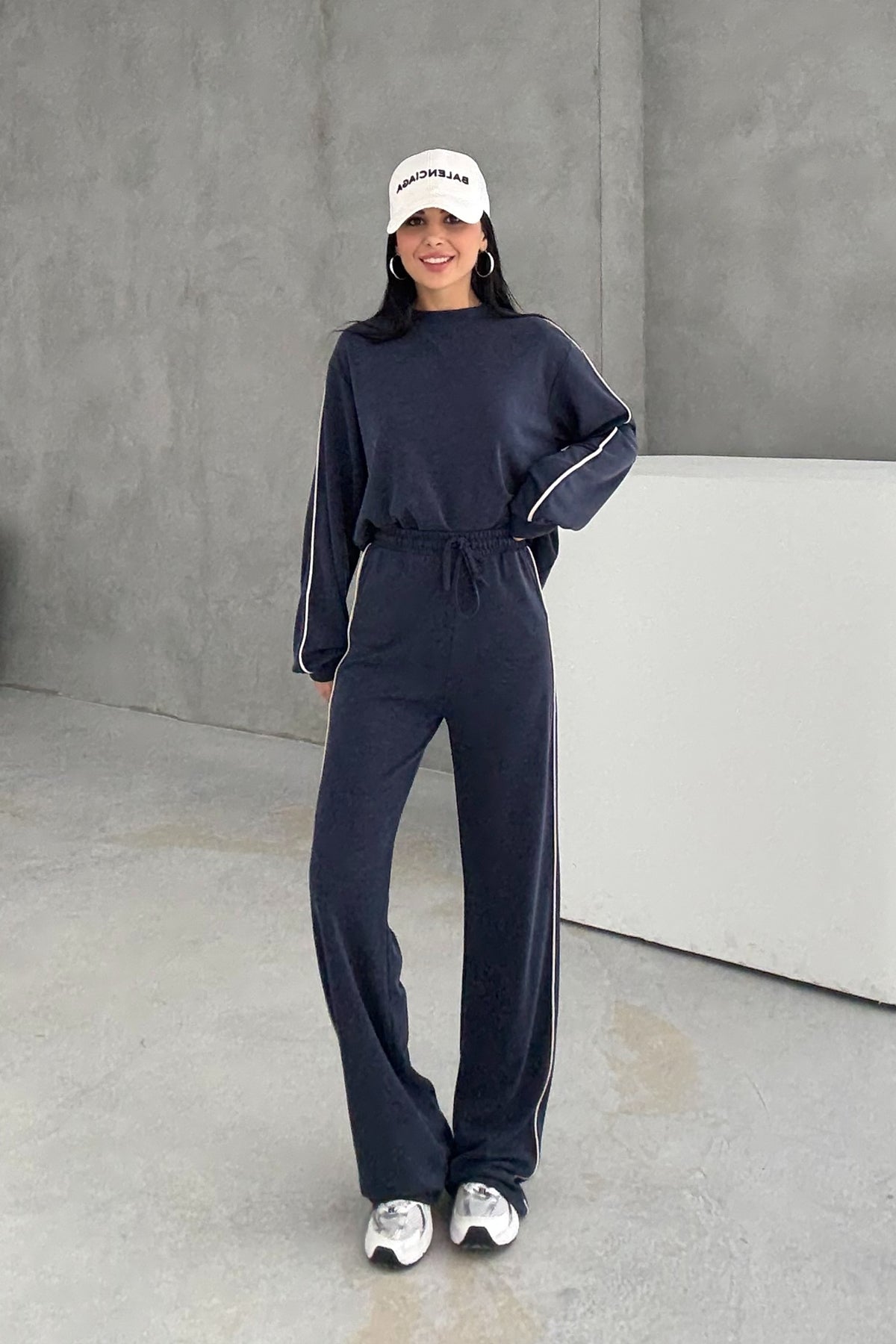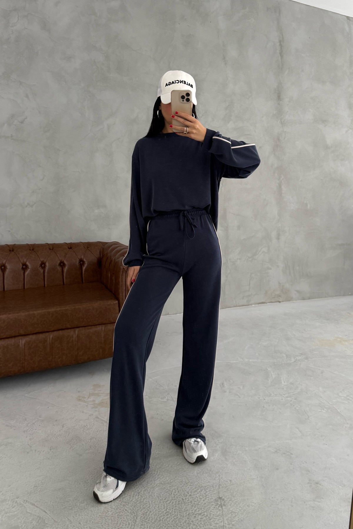 Ürün Detayları ;Orjinal Marka Bisiklet Yaka Çizgili Eşofman Takımı - Koyu Mavi